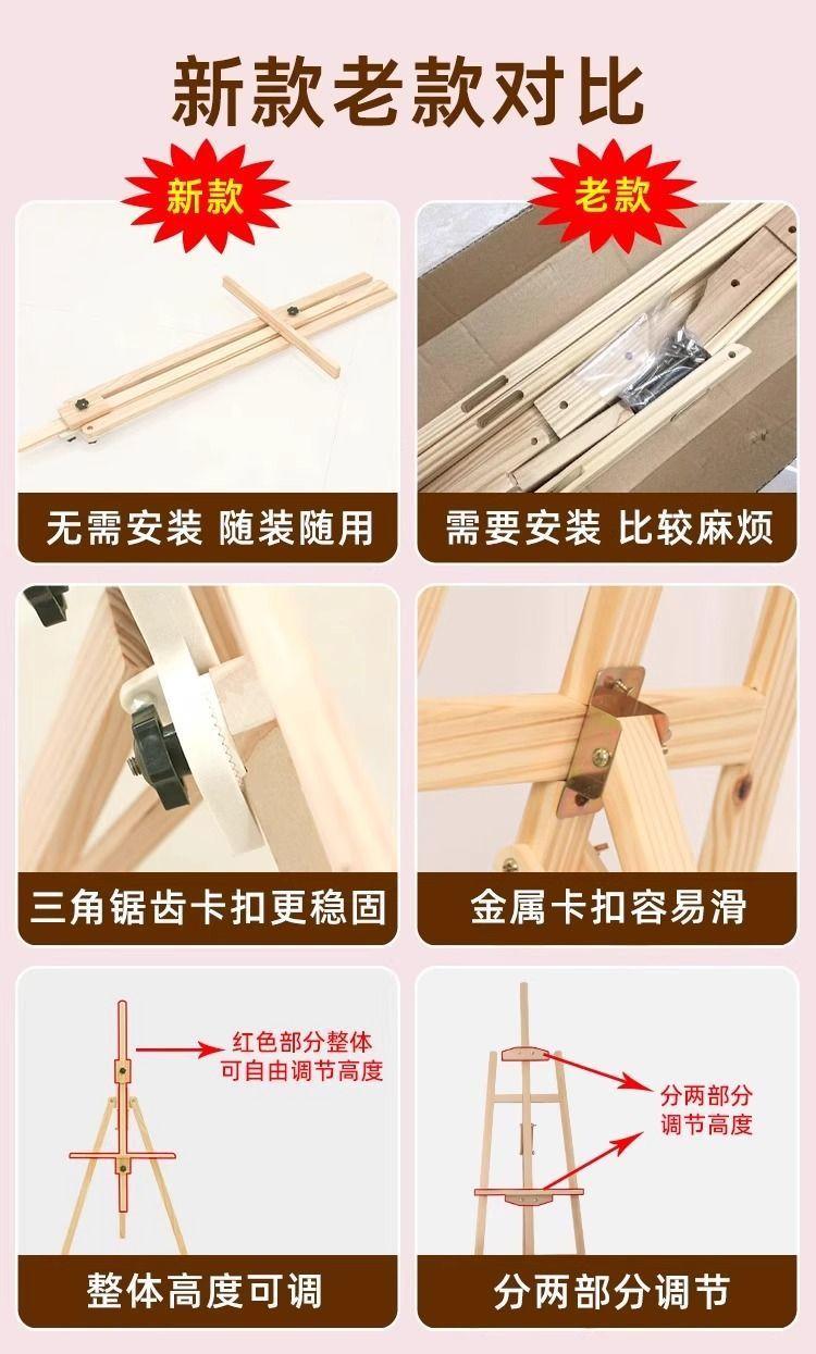 Caballete de madera sin instalación Caballete de madera Pizarra de dibujo 4K Soporte para bocetos Trípode Estudiante de arte Caballete plegable