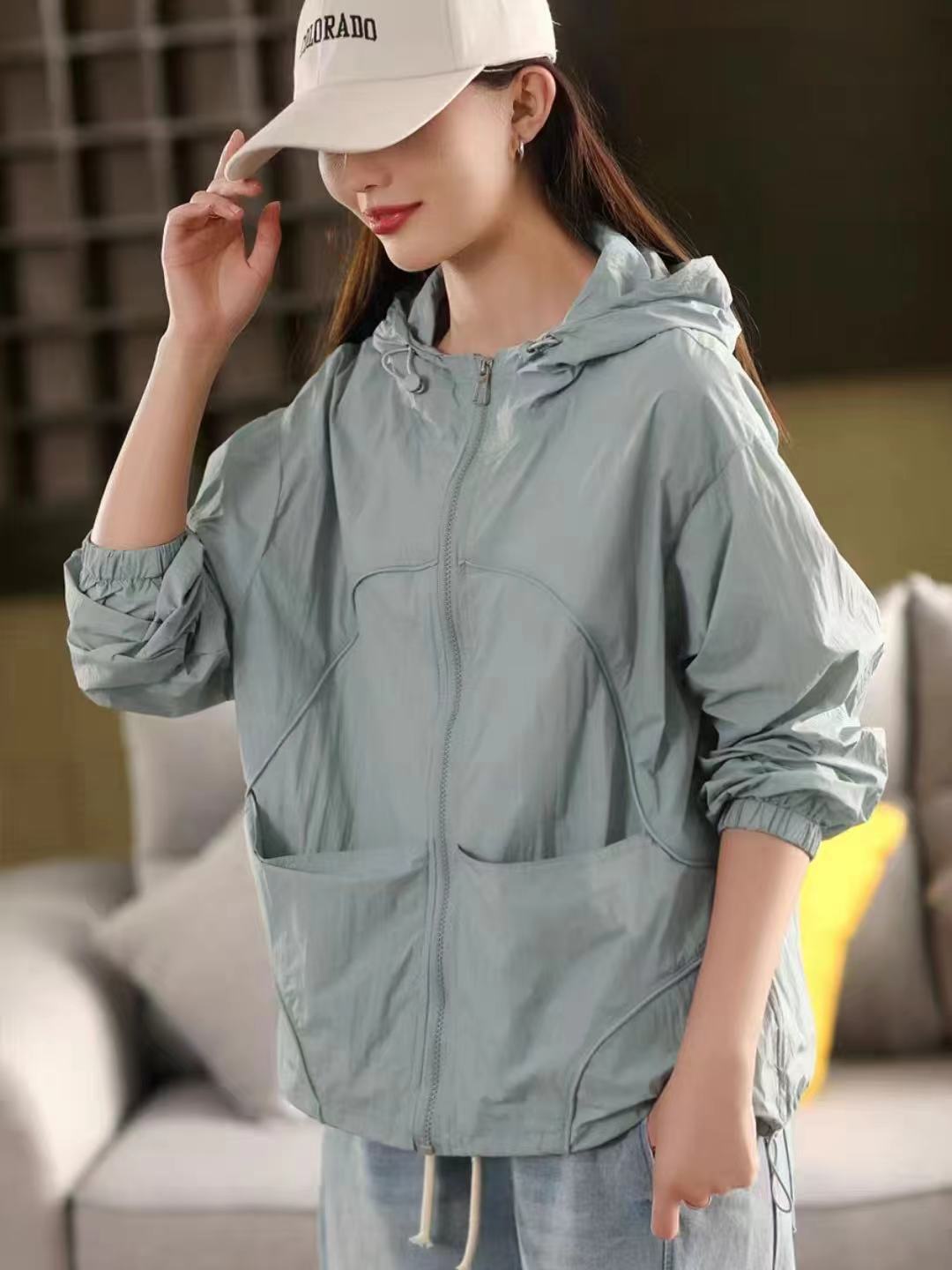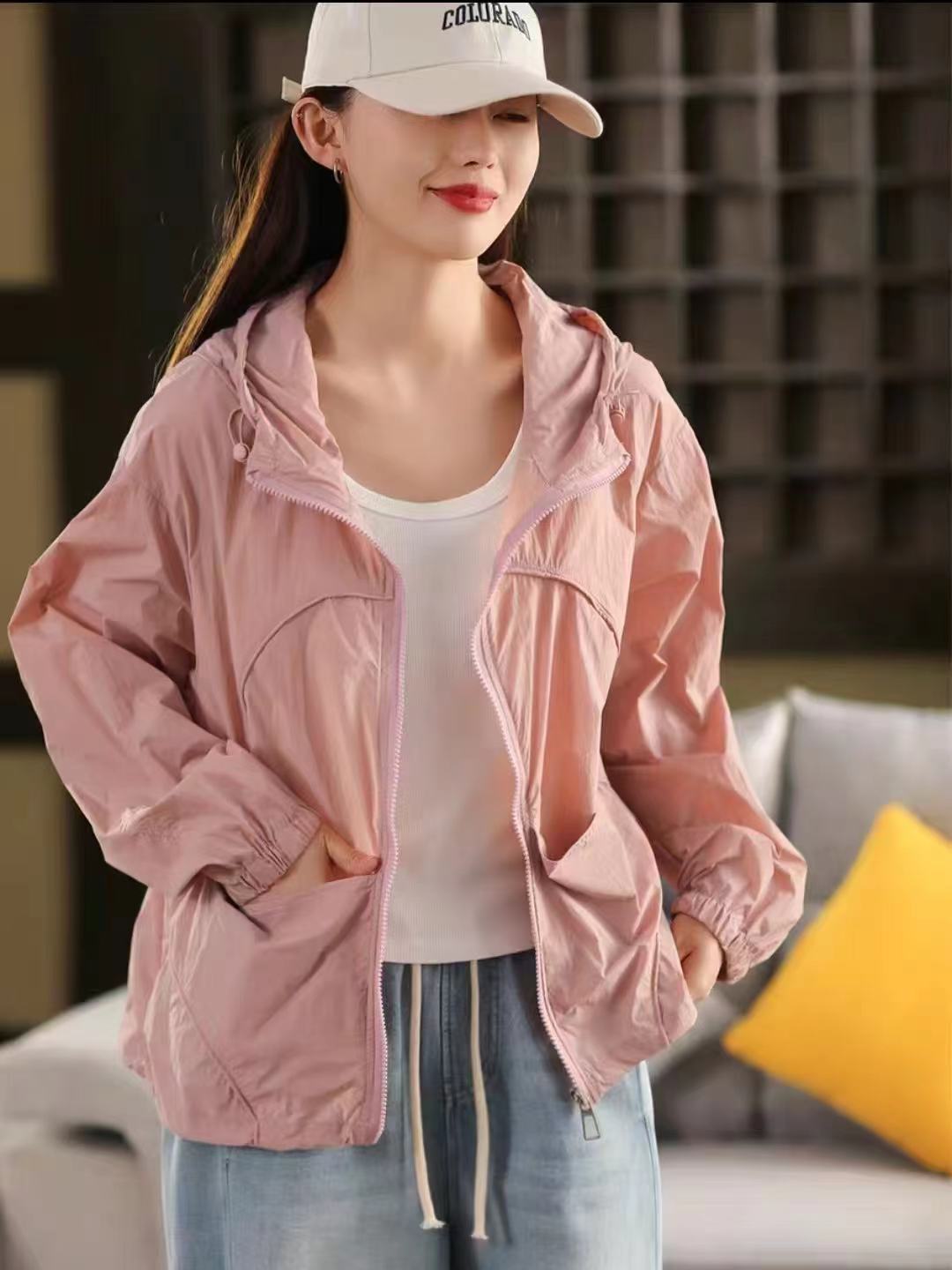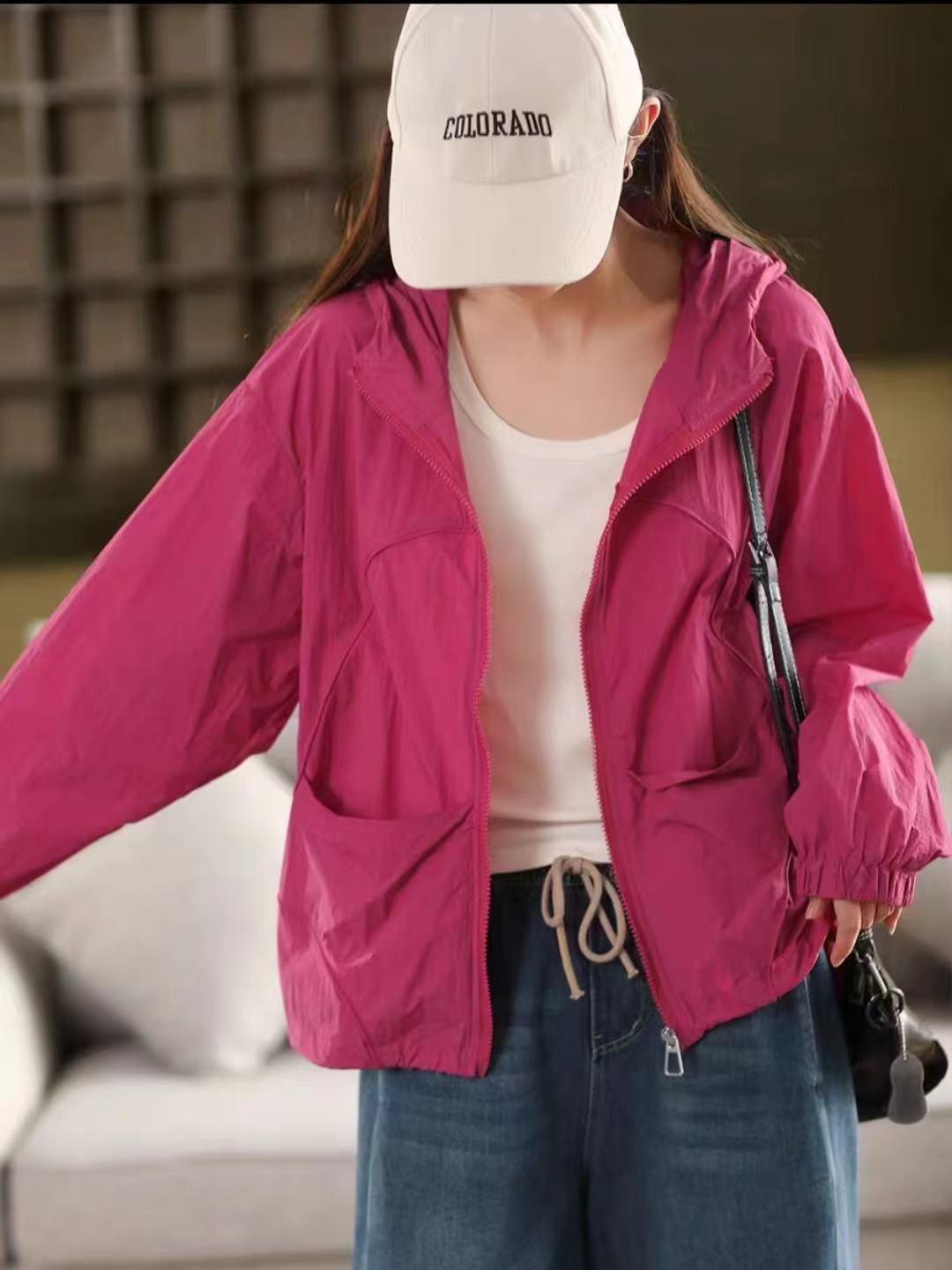 2025 Verano Sudaderas Ligeras Chaqueta Corta Ropa de Protección Solar para Mujer Manga Larga Nueva Chaqueta Estilo Coreano Top Casual Suelto
