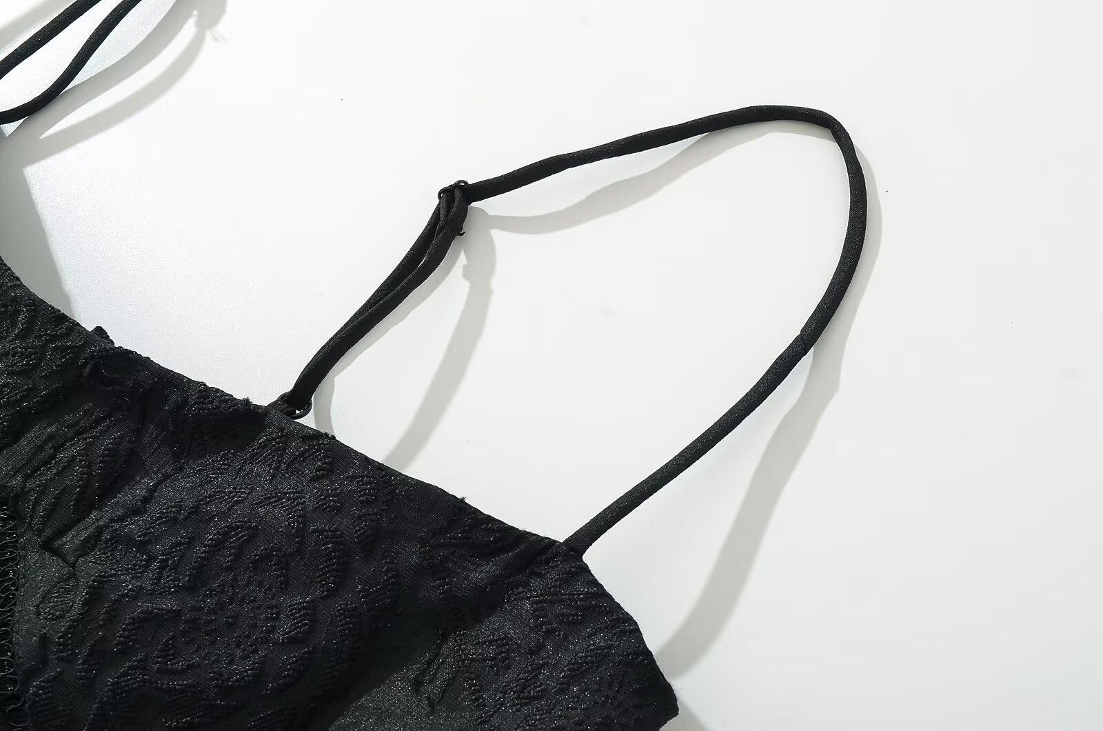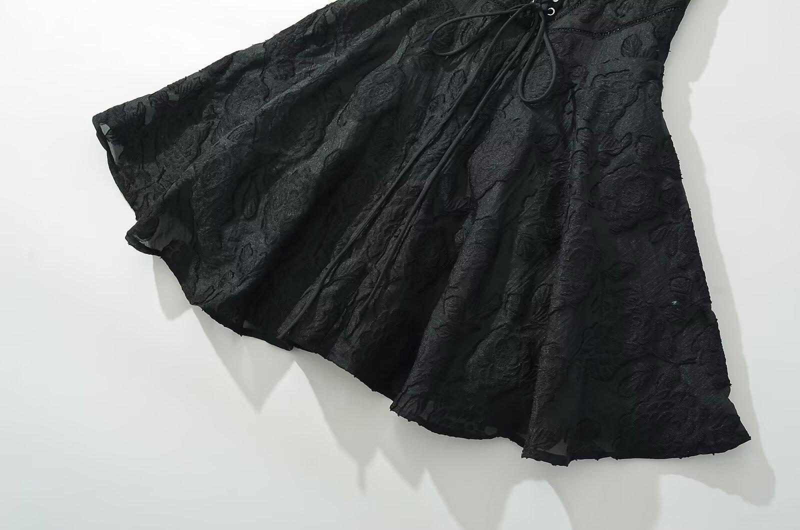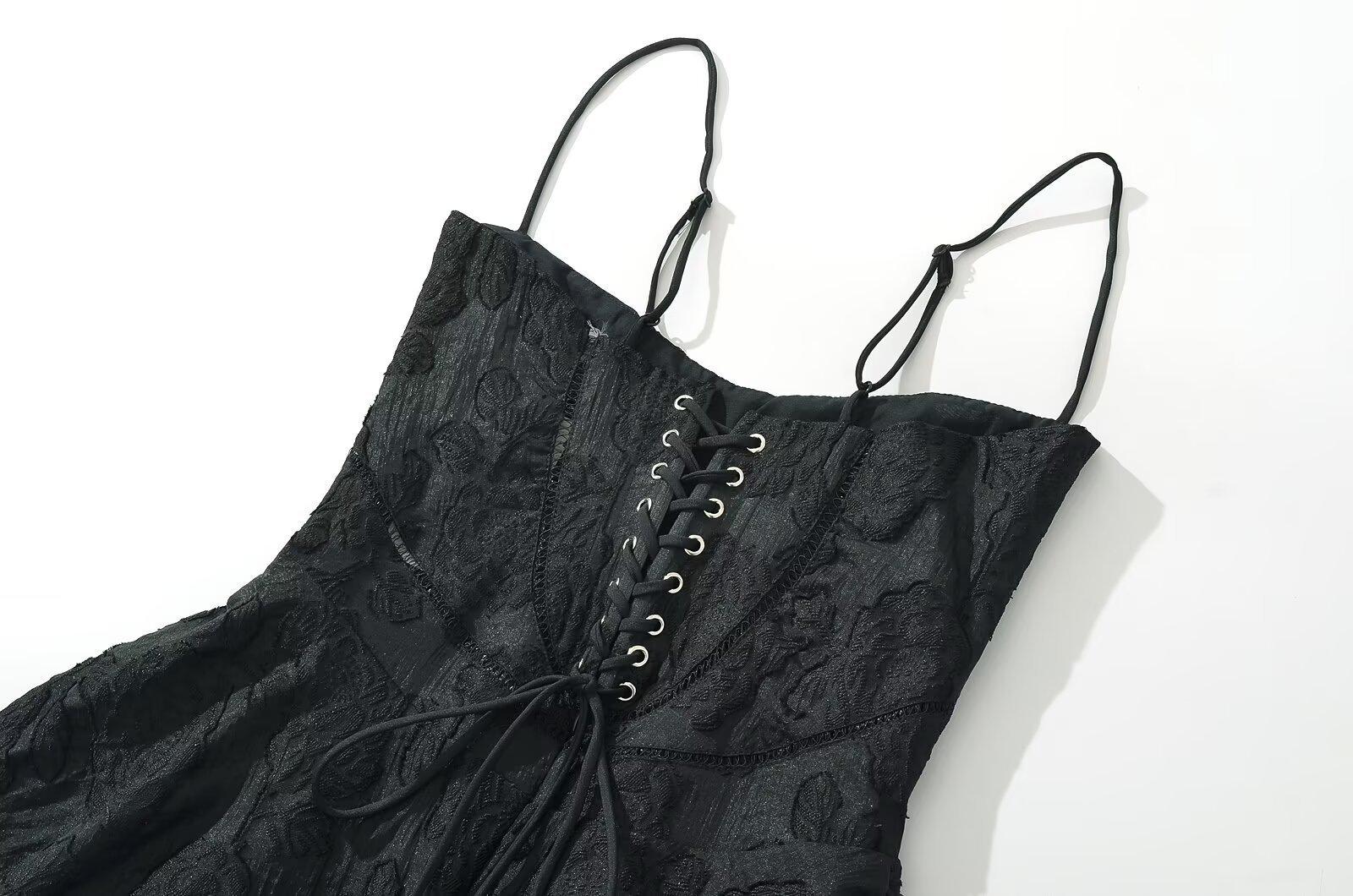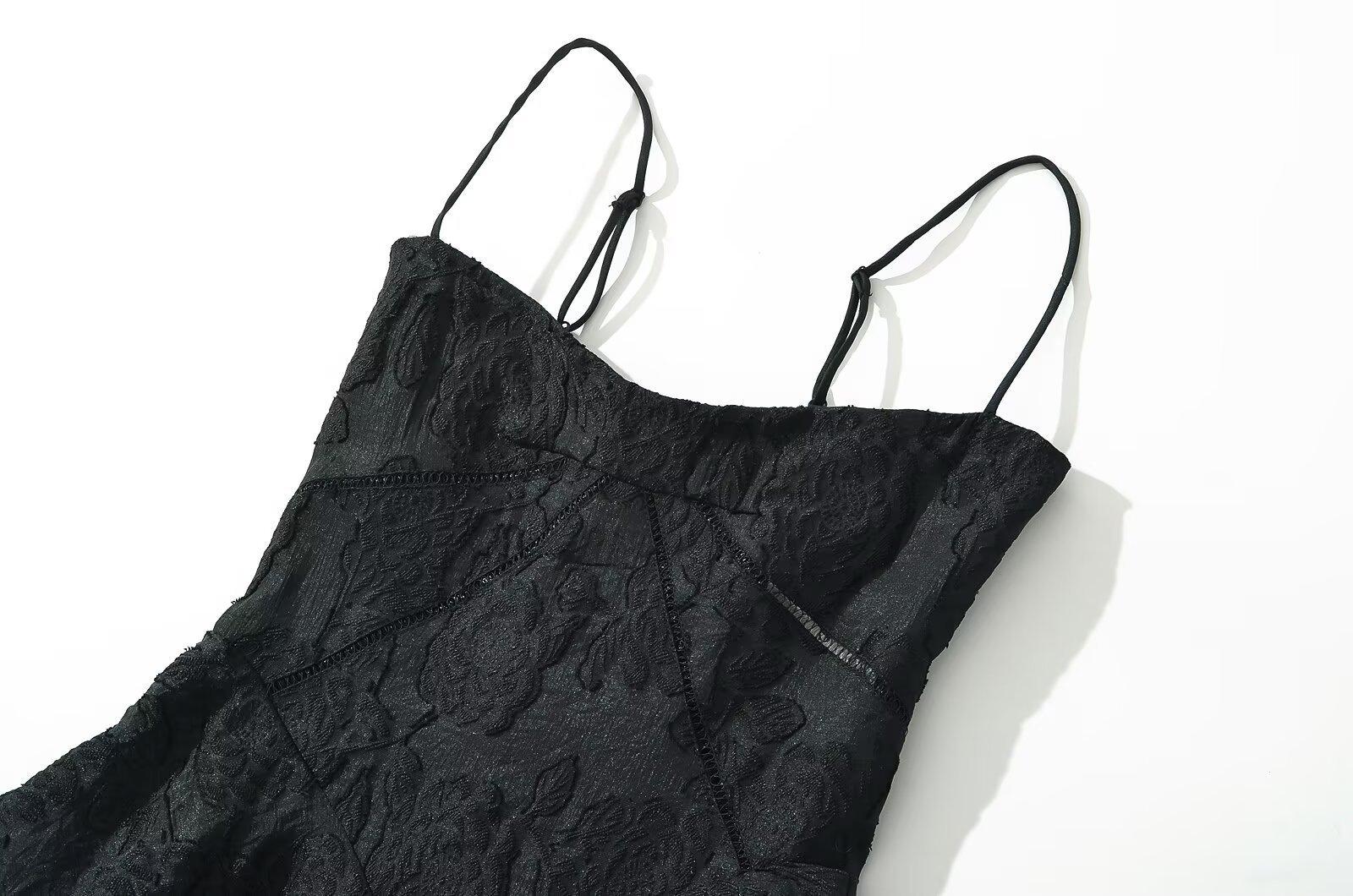 Estilo Lujuria Pura Chica Caliente Cintura Sexy Estilo Descubierto Falda Corta Moda Femenina Cintura Alta Jacquard Empalme Vestido con Tirantes