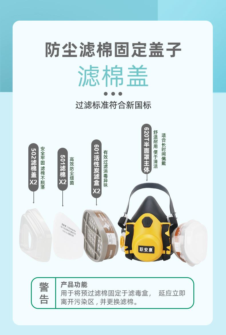 Mascarilla de goma para seguridad laboral pintura decoración pulido 502 cubierta de filtro de algodón necesita ser usada junto con la mascarilla