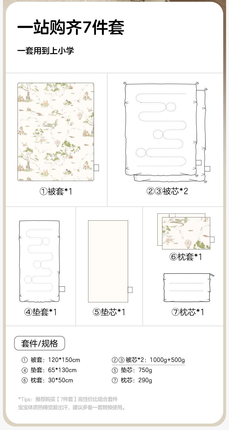 Hot sale! four seasons seven-piece set [three-piece set + quilt core (1.0kg + 0.5kg ) + cushion core + pillow core...]