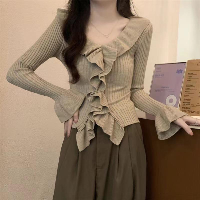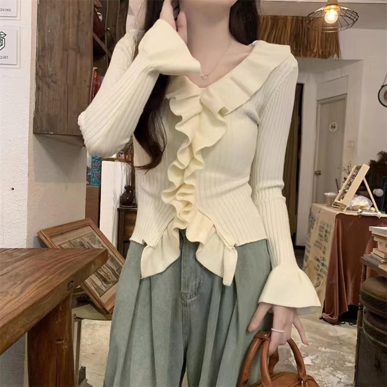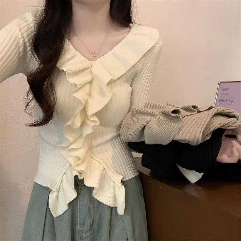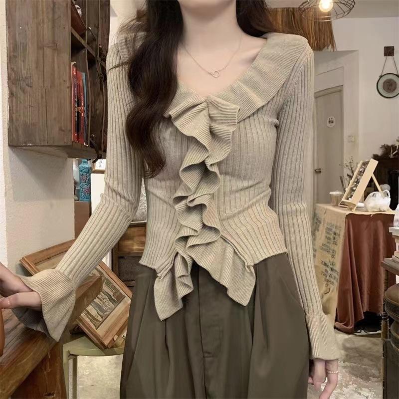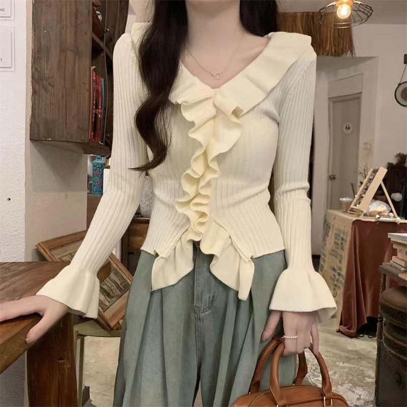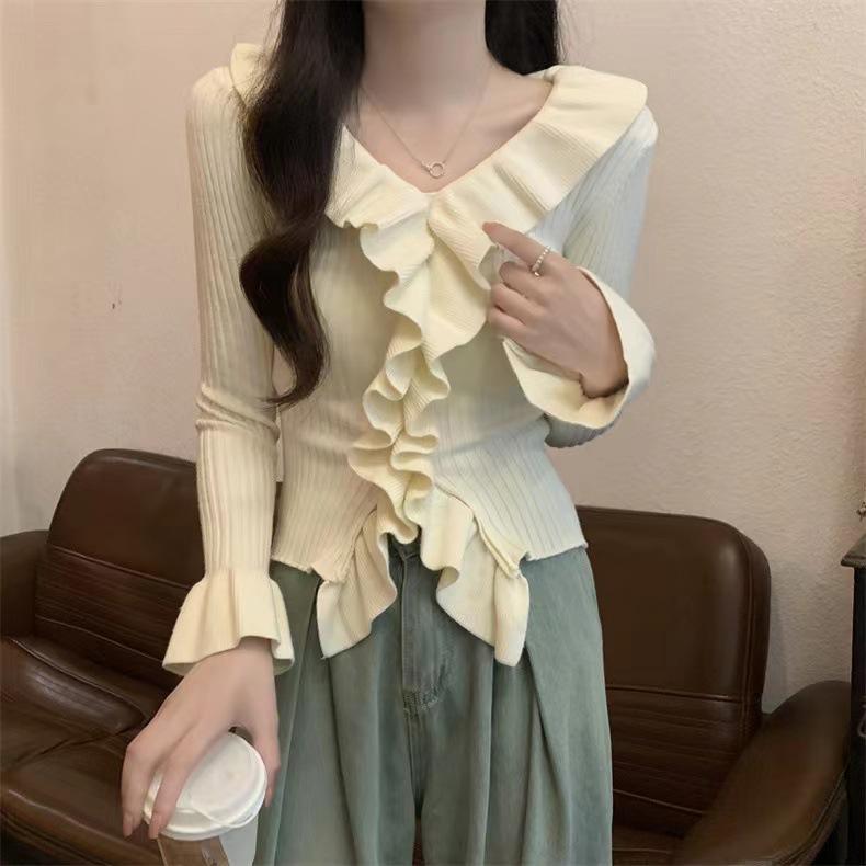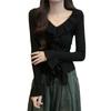 Camisa Retro Estilo Francés Chica Hot Color Sólido Diseño para Mujer Nicho con Volantes Chica Hot Deseo Puro Top Corto Ajustado