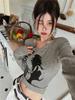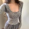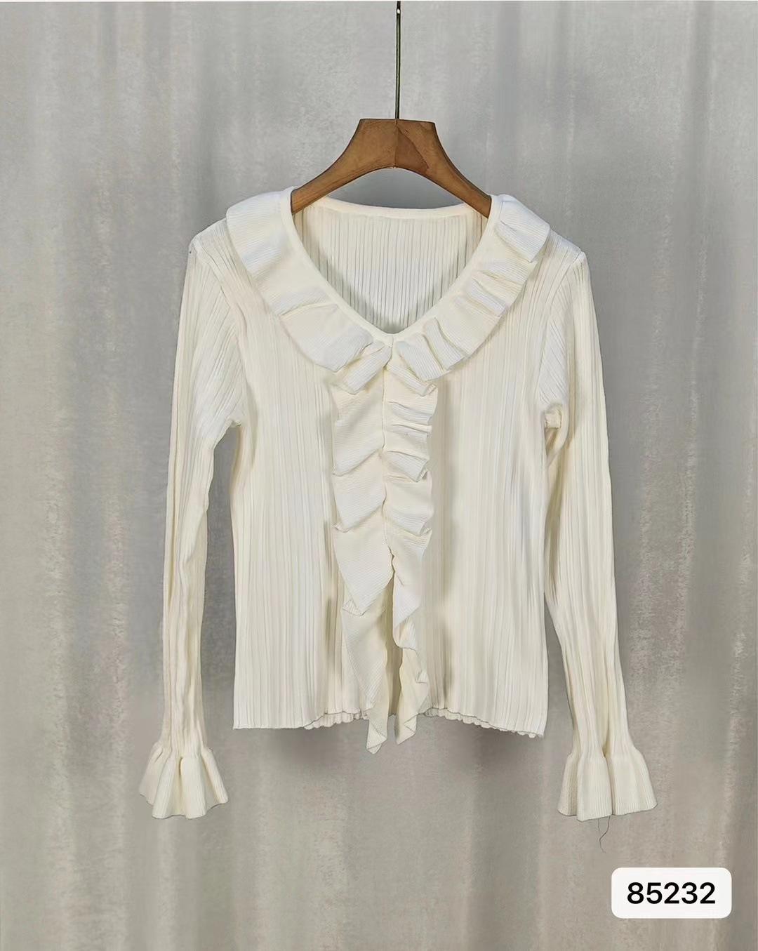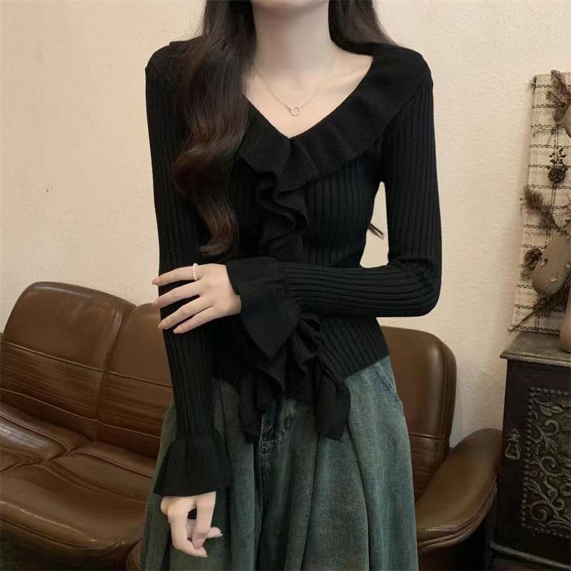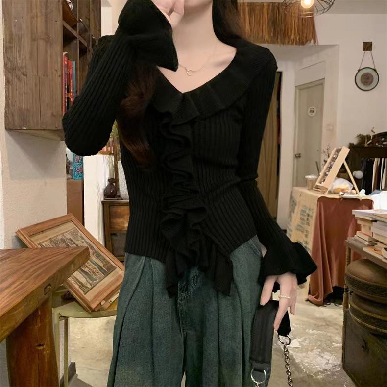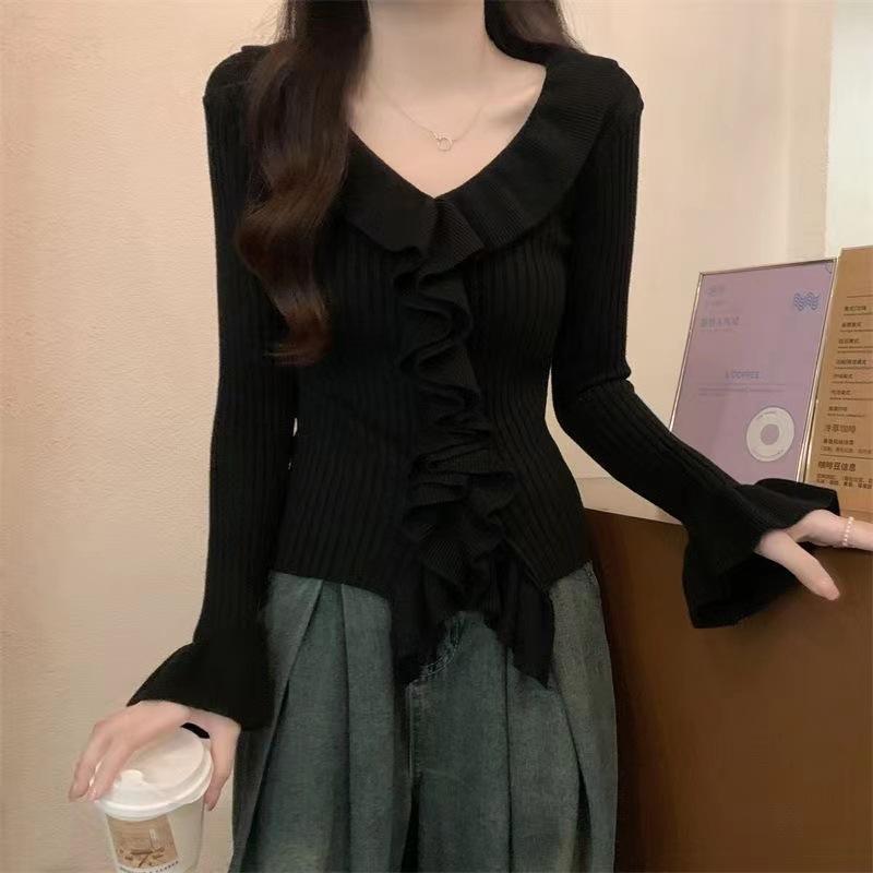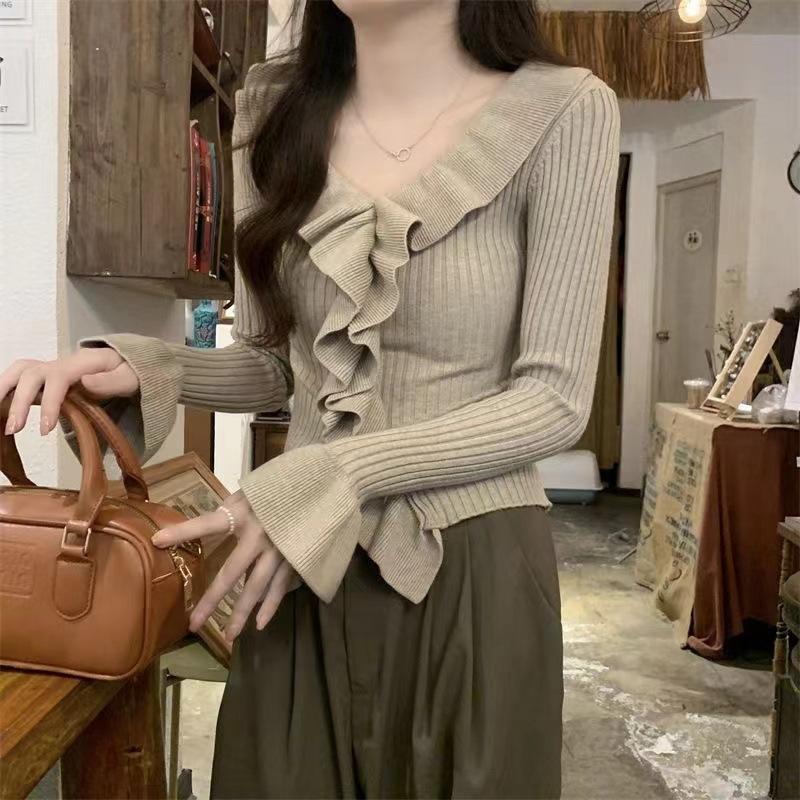Camisa Retro Estilo Francés Chica Hot Color Sólido Diseño para Mujer Nicho con Volantes Chica Hot Deseo Puro Top Corto Ajustado