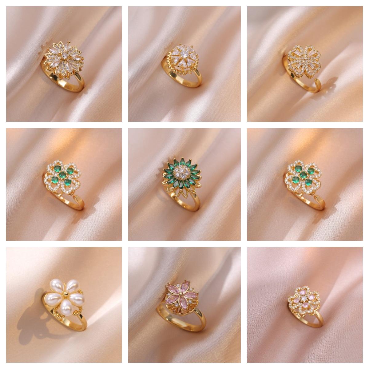 Anillos para Mujer, Anillo Geométrico de Diamante Completo Versátil Nicho Simple Elegante de Circonita Giratoria Micro-Incrustada Transfronterizo de Moda
