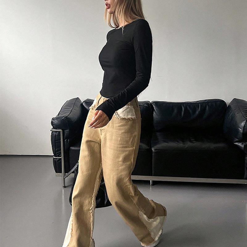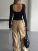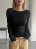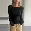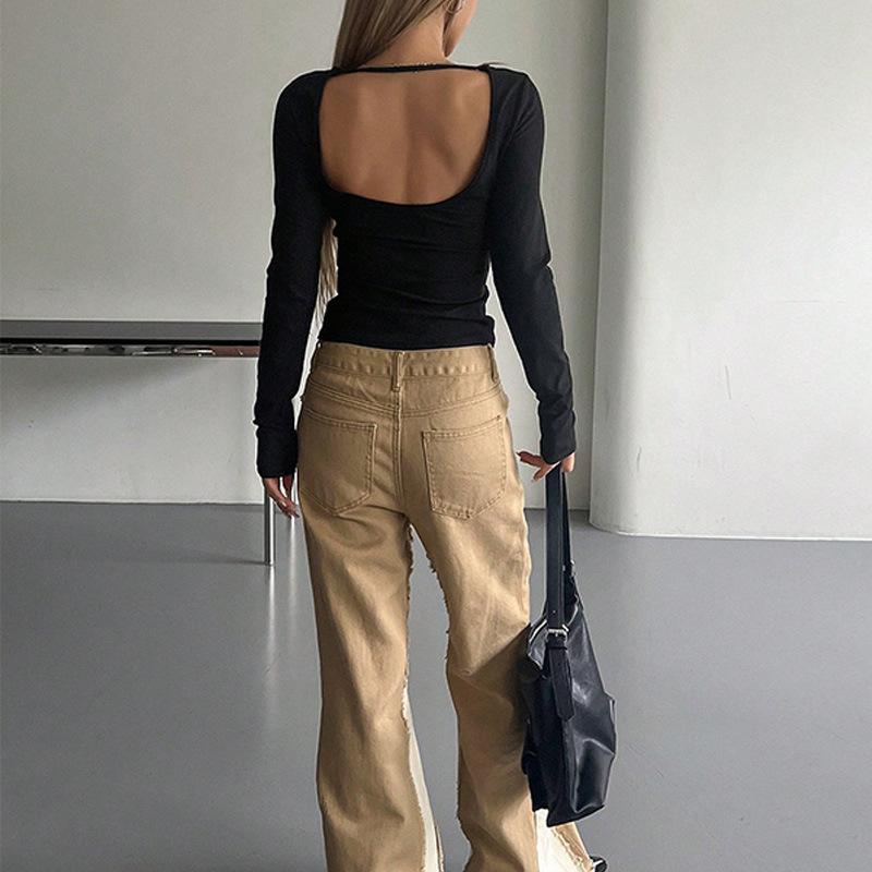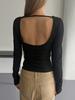 2025 Otoño Nuevo Europeo y Americano Moda Sexy Americana Slim Versátil Sin Espalda Manga Larga Fondo Color Puro Top Camiseta