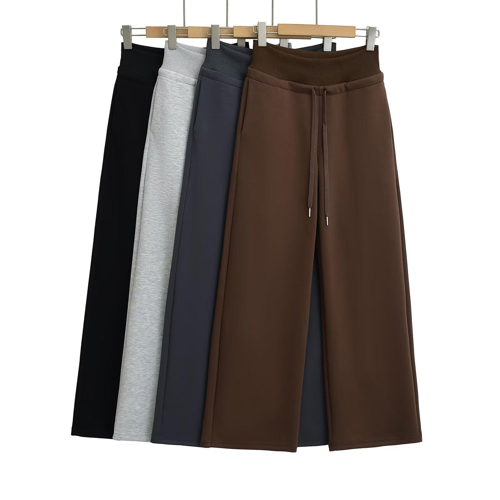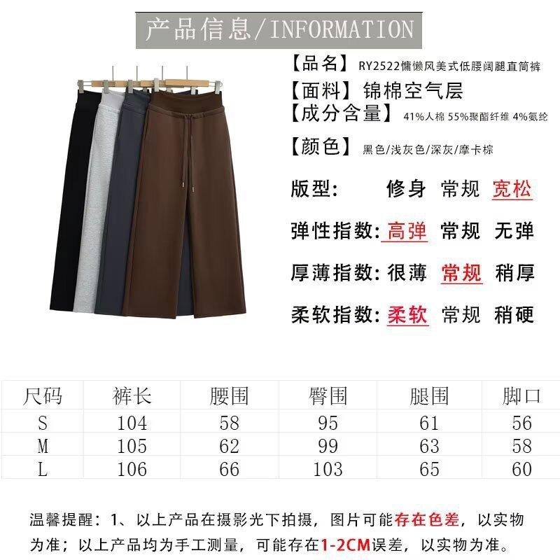 Pantalones rectos de pierna ancha y tiro bajo estilo holgazán americano para mujer 2025 primavera versátiles simples deportivos y de ocio hasta el suelo