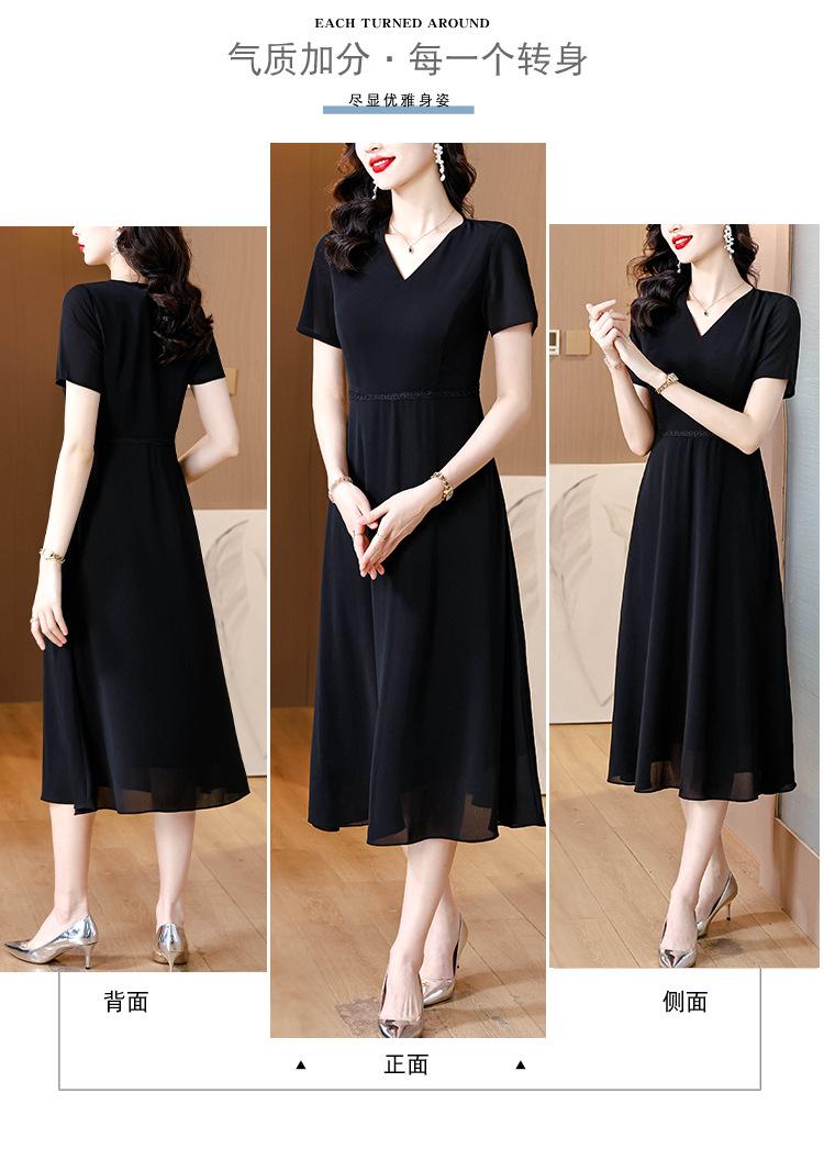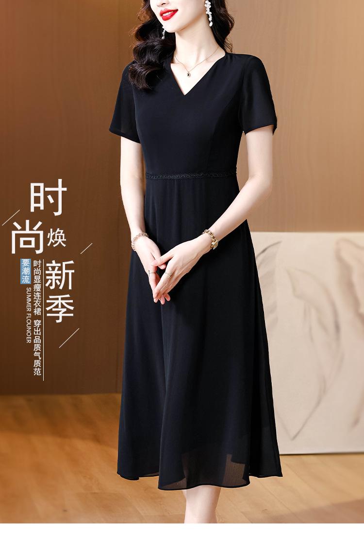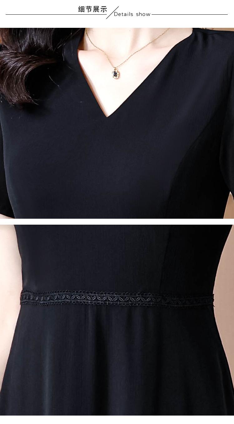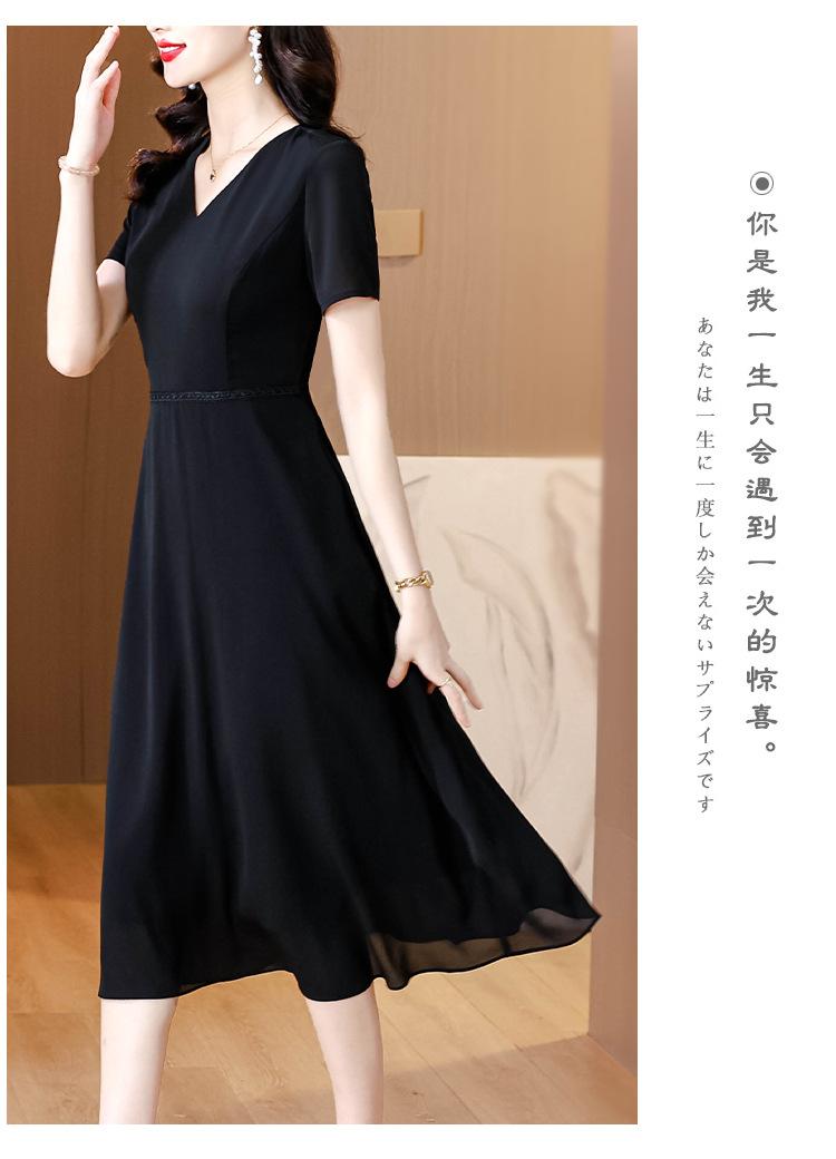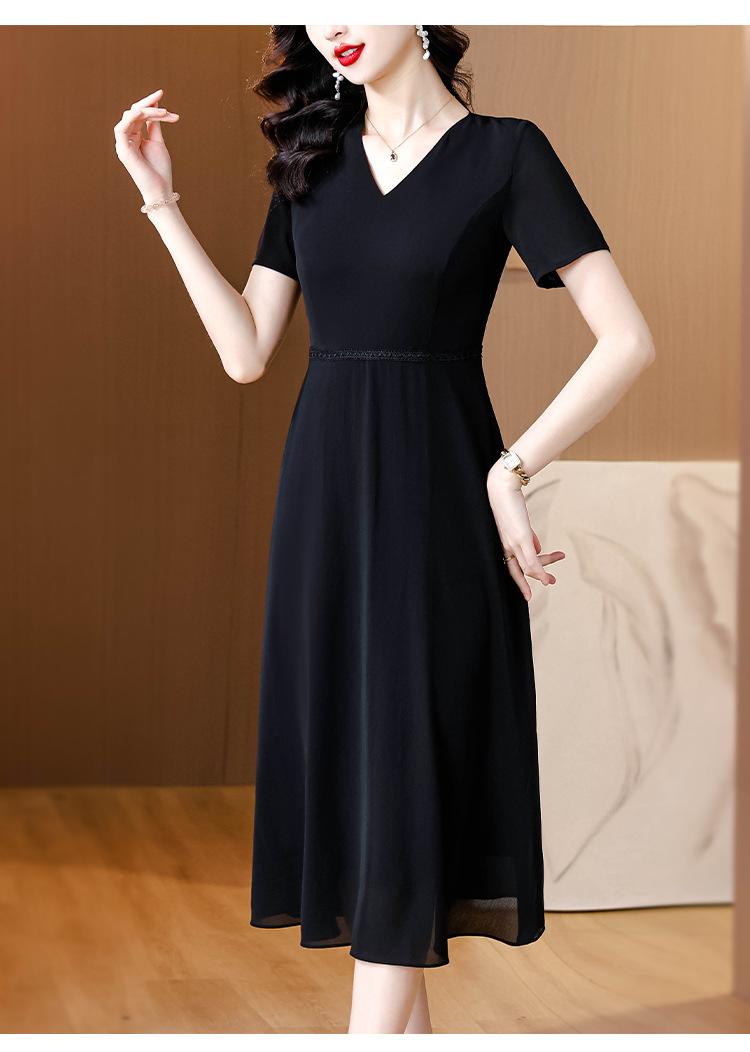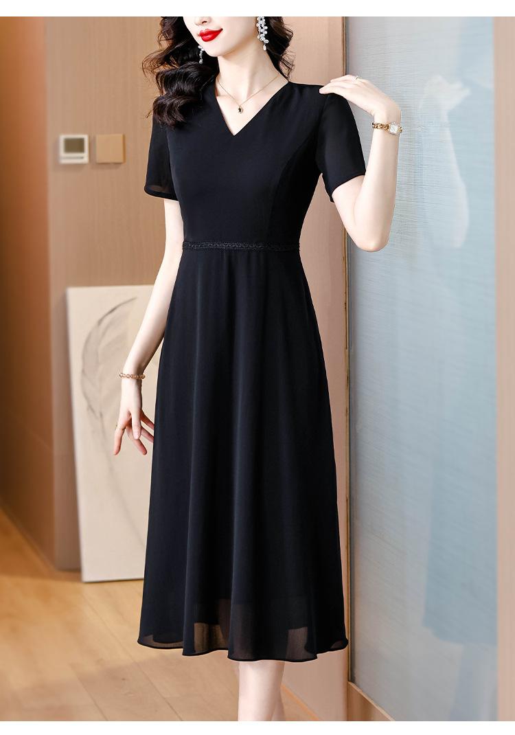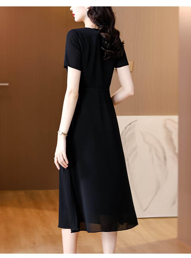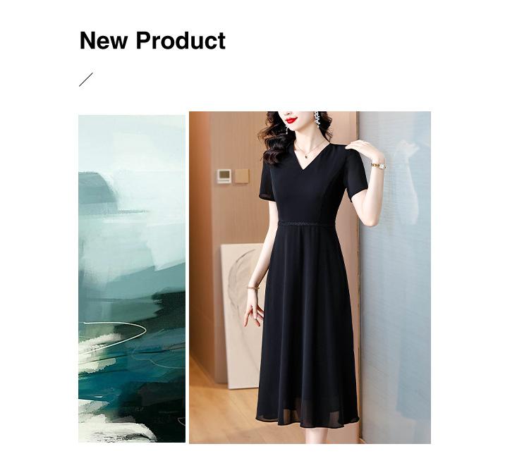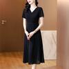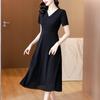 Alta calidad Cintura Elegante para Mujeres de Mediana Edad Nueva Moda Ajustado Cuello en V Falda Amplia Combinable Ajustado Vestido de Manga Corta