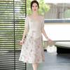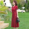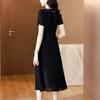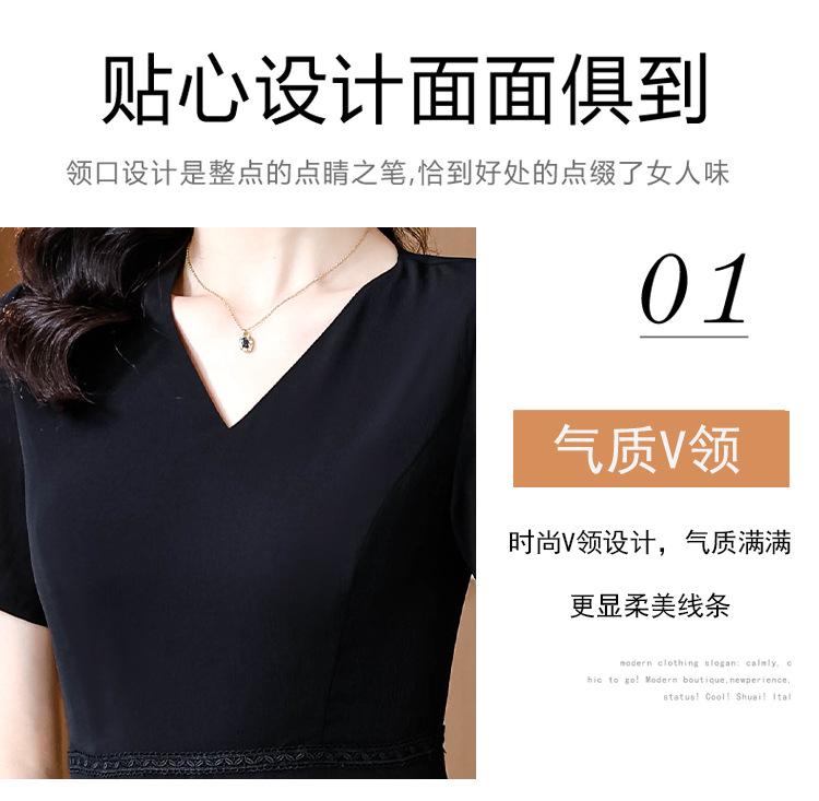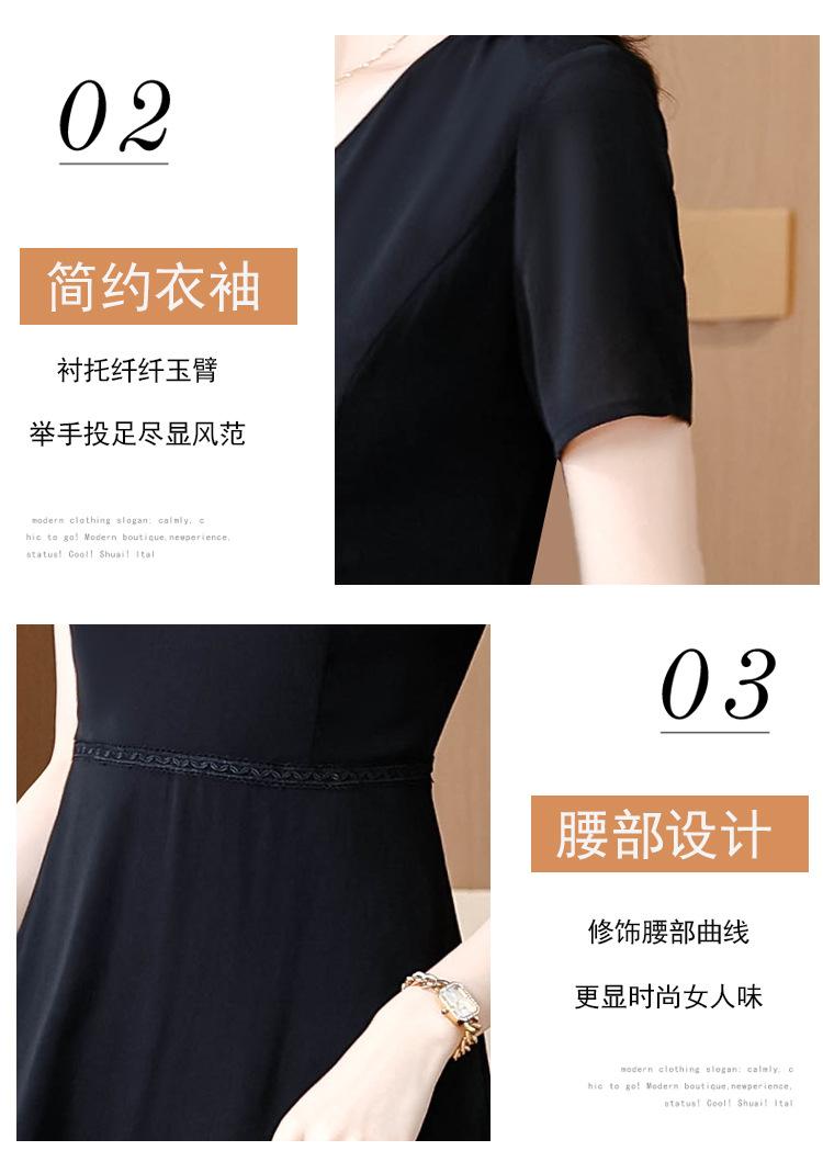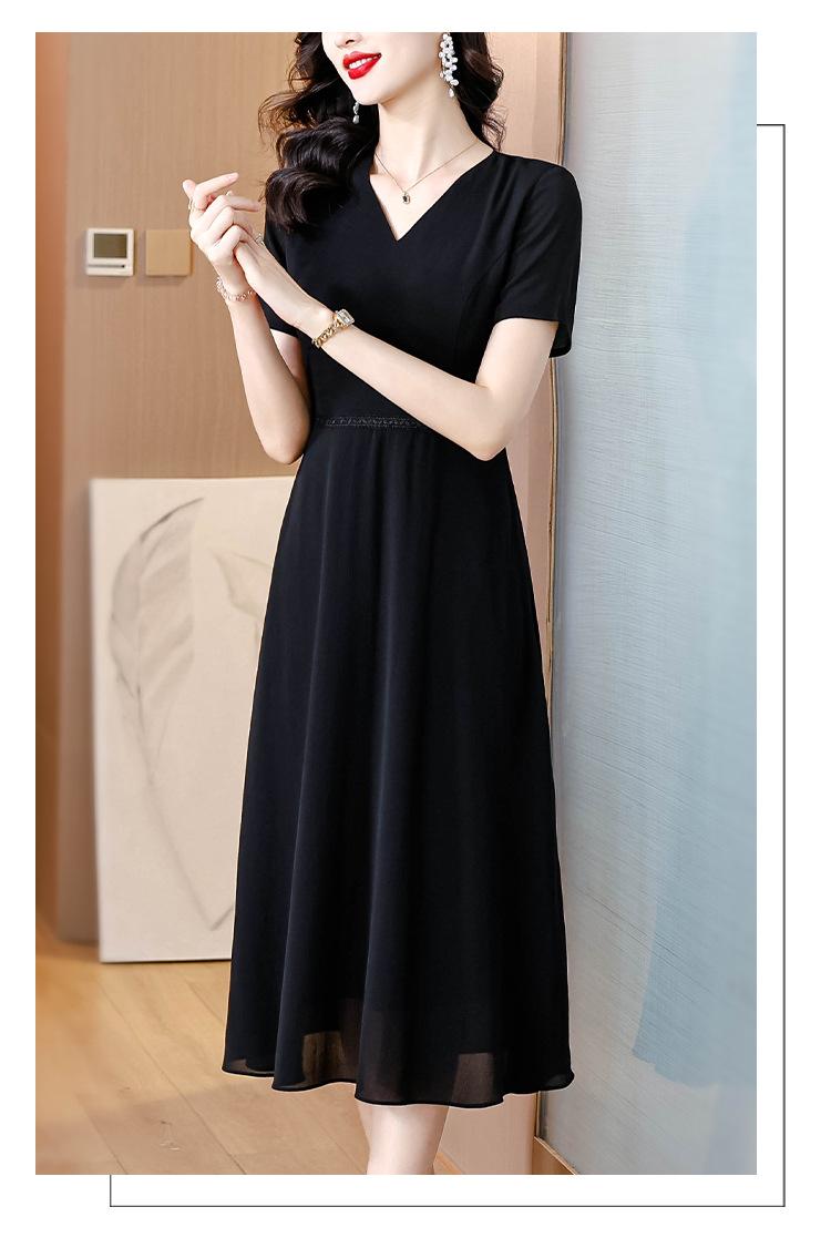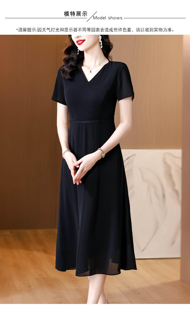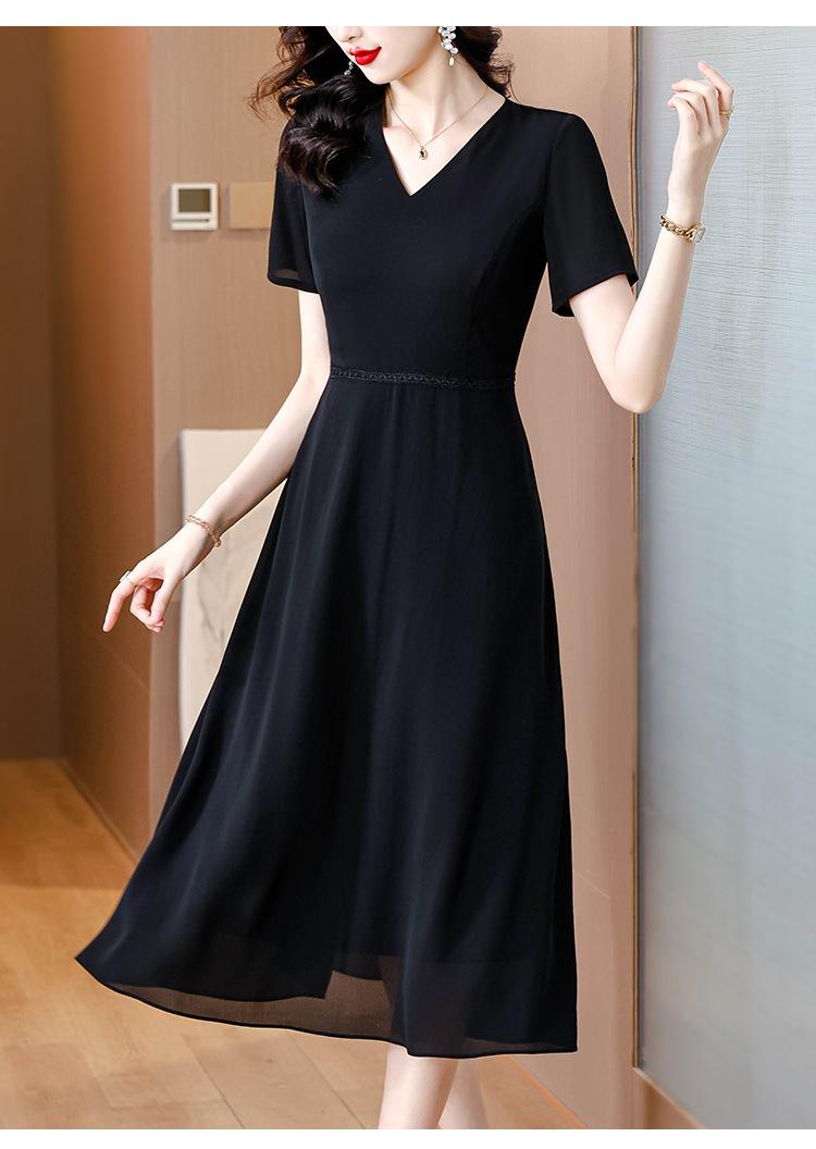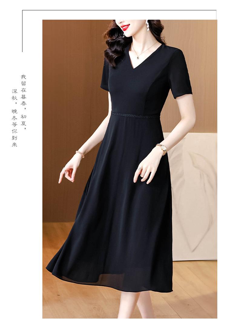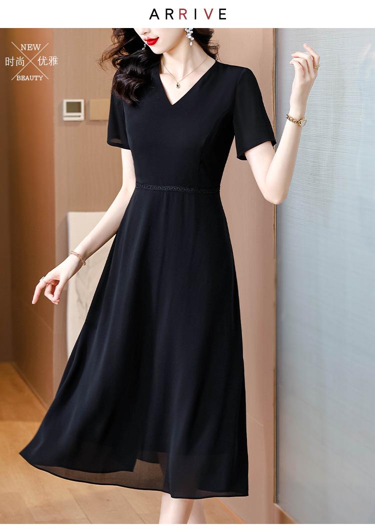 Alta calidad Cintura Elegante para Mujeres de Mediana Edad Nueva Moda Ajustado Cuello en V Falda Amplia Combinable Ajustado Vestido de Manga Corta