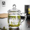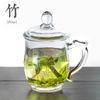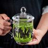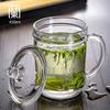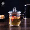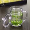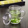 Taza para beber doméstica de vidrio resistente a altas temperaturas con asa, taza de gran capacidad con tapa, taza de té transparente para hombre, taza para agua No
