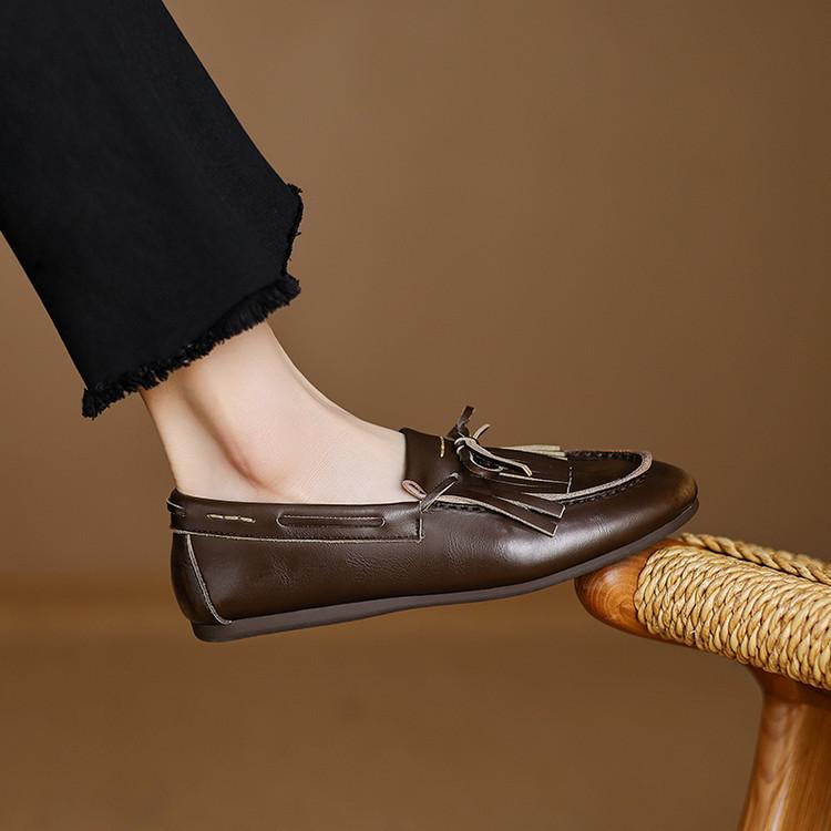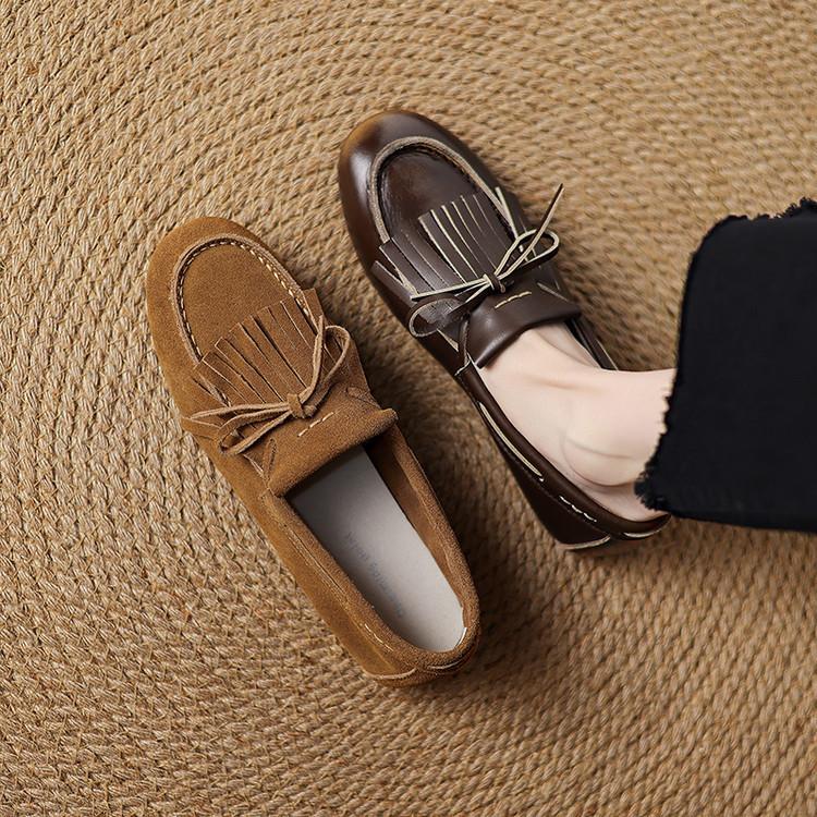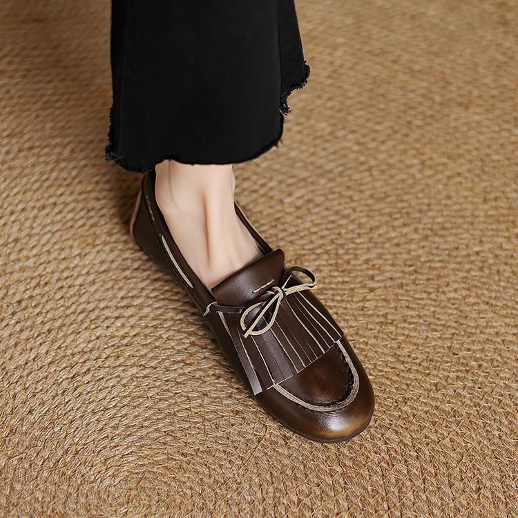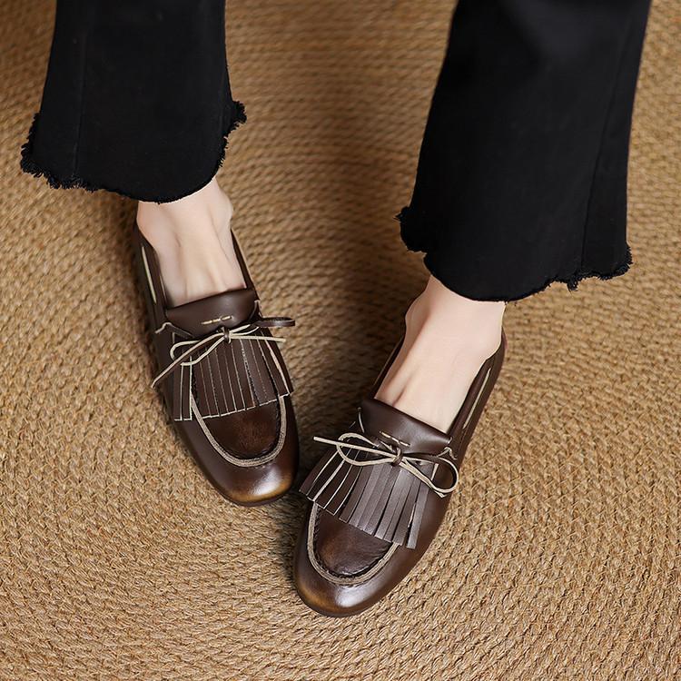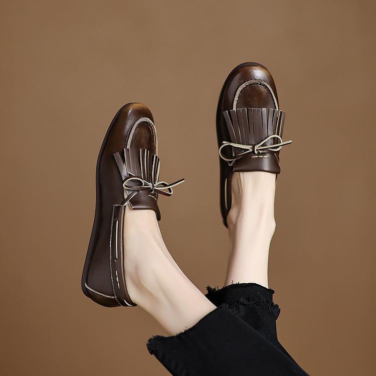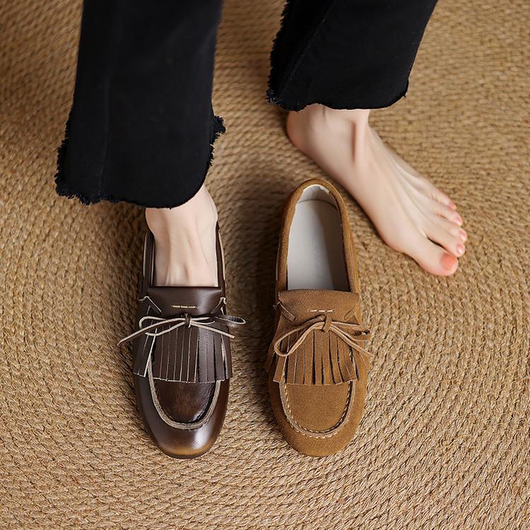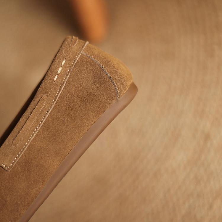 Nuevos Zapatos de Cuero Pequeños de Suela Blanda para Mujer para las Cuatro Estaciones, Zapatos de Moda de Cuero Genuino de Corte Bajo sin Cordones, Zapatos de Piel de Oveja de Color Puro de Boca Baja para Mujer