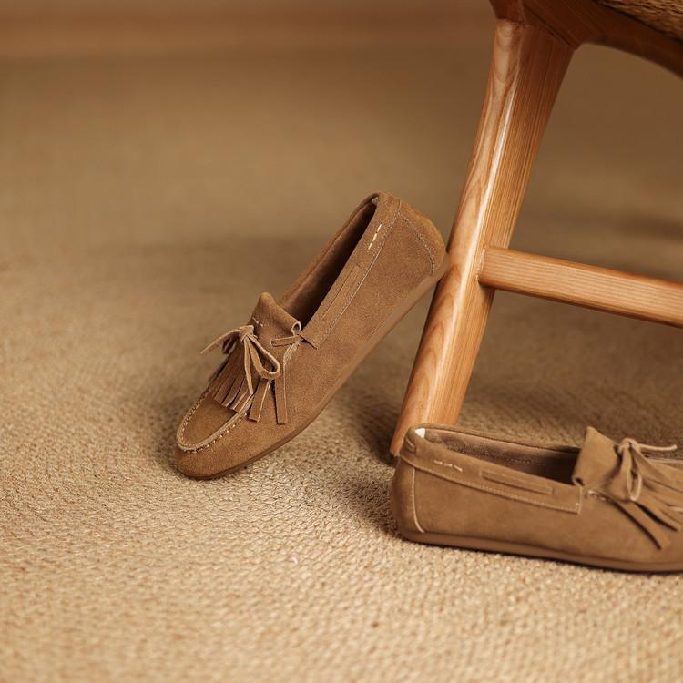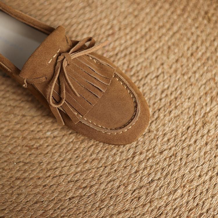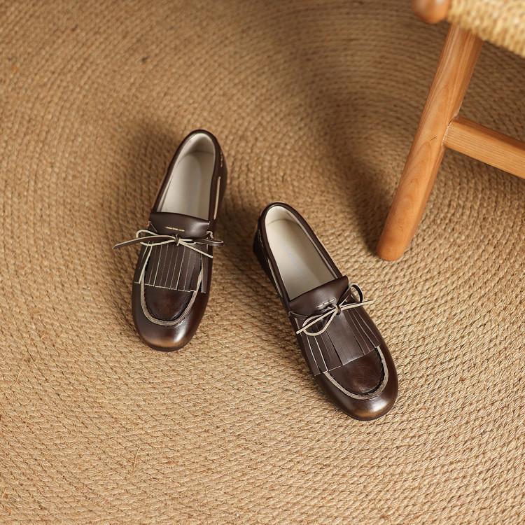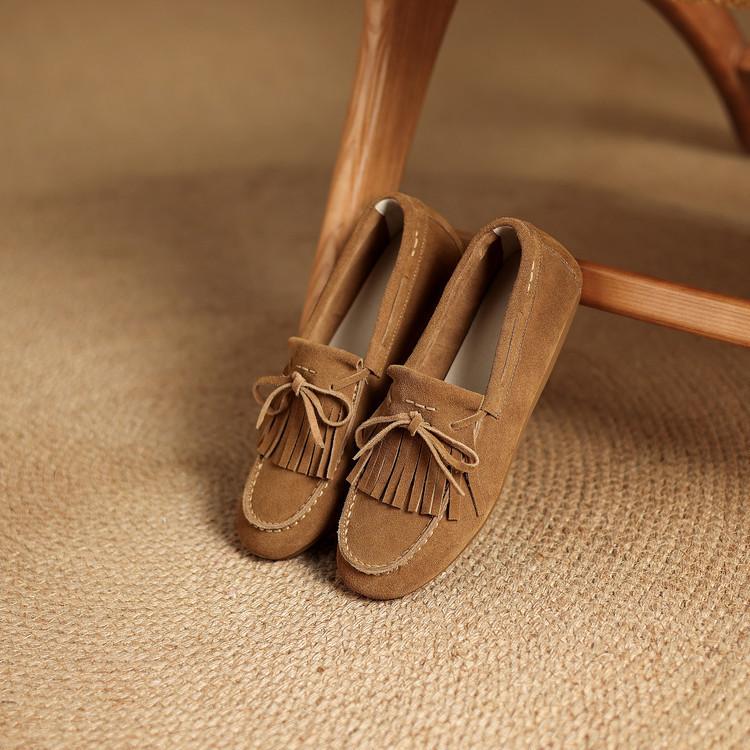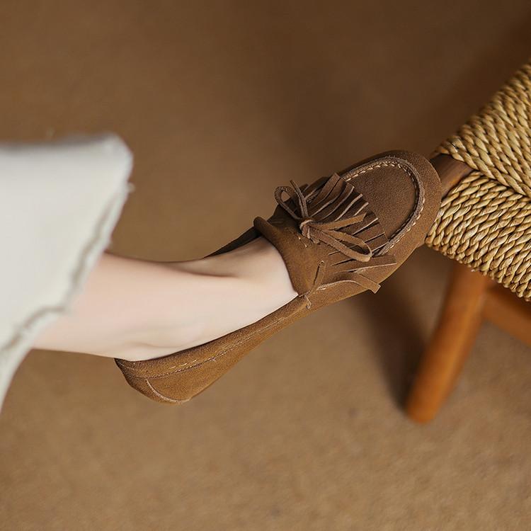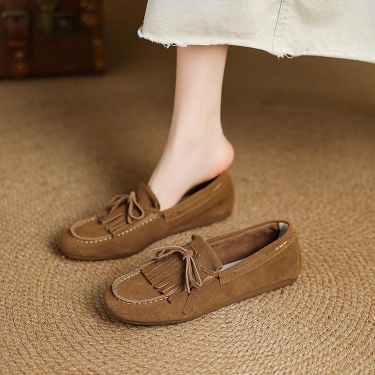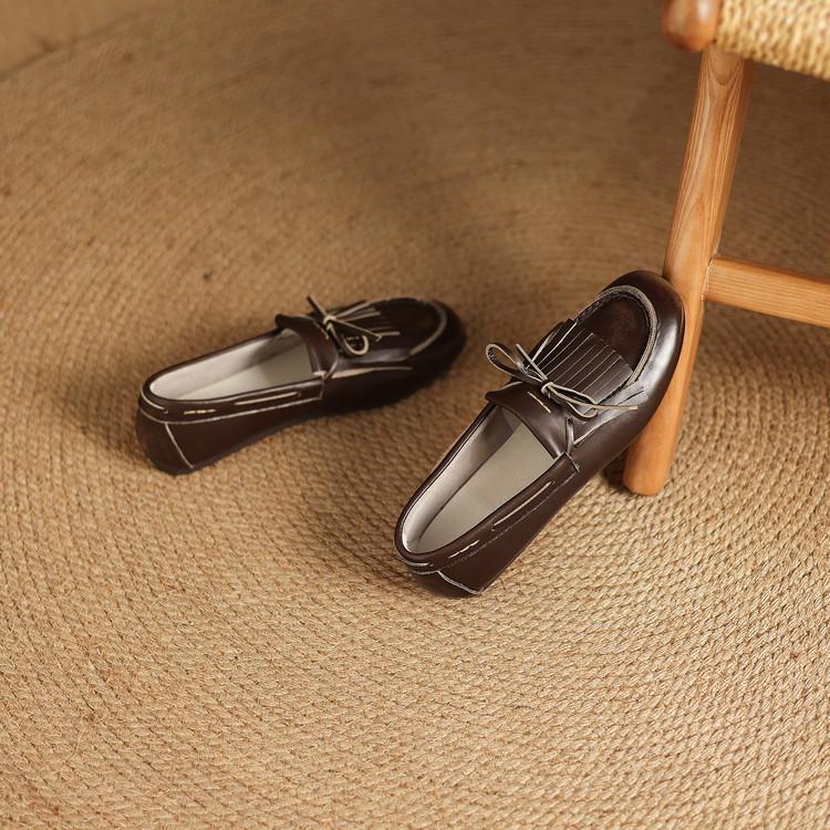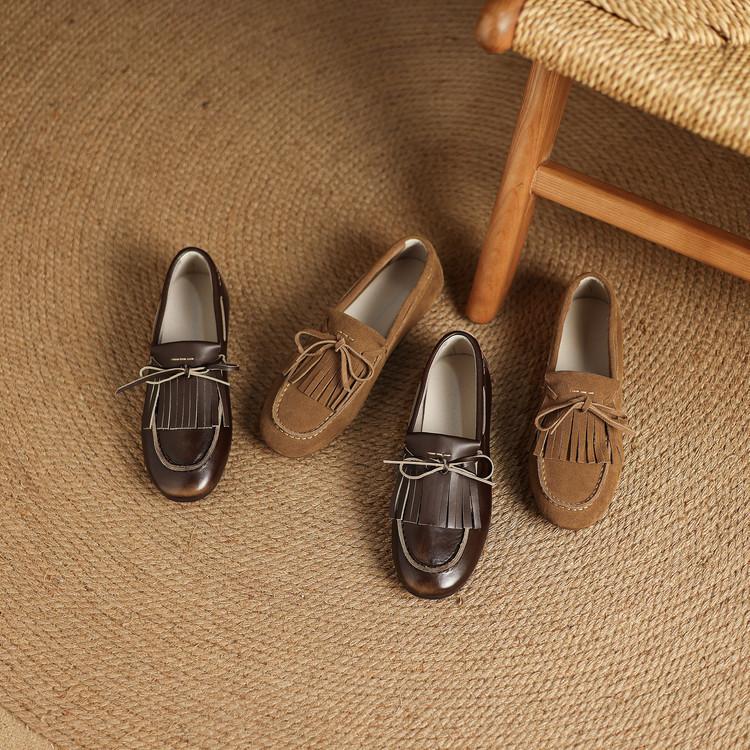 Nuevos Zapatos de Cuero Pequeños de Suela Blanda para Mujer para las Cuatro Estaciones, Zapatos de Moda de Cuero Genuino de Corte Bajo sin Cordones, Zapatos de Piel de Oveja de Color Puro de Boca Baja para Mujer