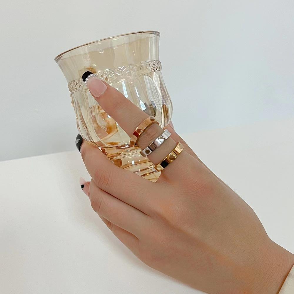 Anillos de pareja minimalistas de acero de titanio estilo coreano, anillos de color que no se desvanecen, anillos de nicho únicos de boca cerrada estilo Ins para mujer al por mayor