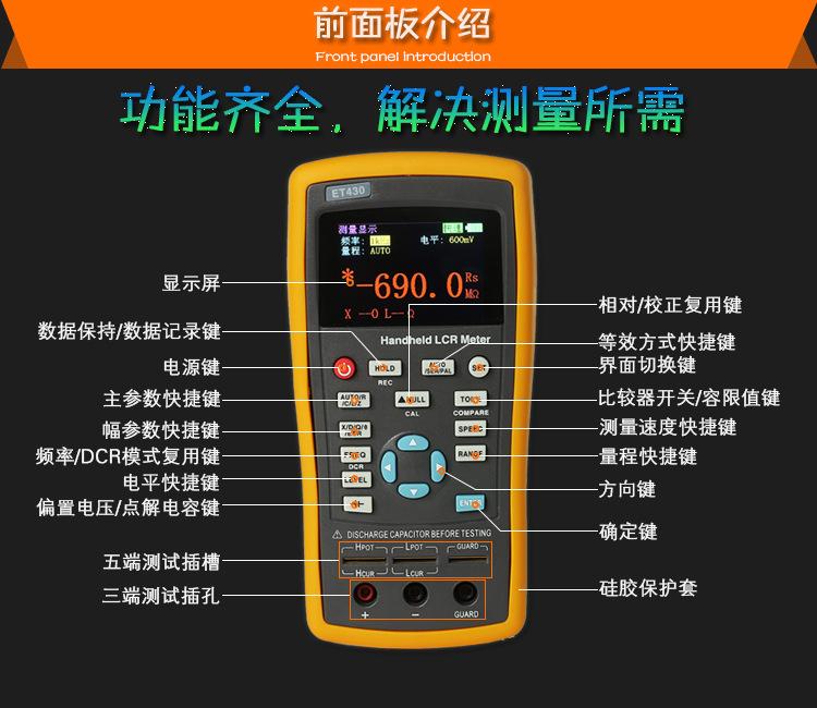 Puente digital LCR portátil Hangzhou Zhongchuang ET430 de alta precisión, medidor de capacitancia, inductancia y resistencia ET433