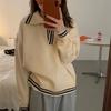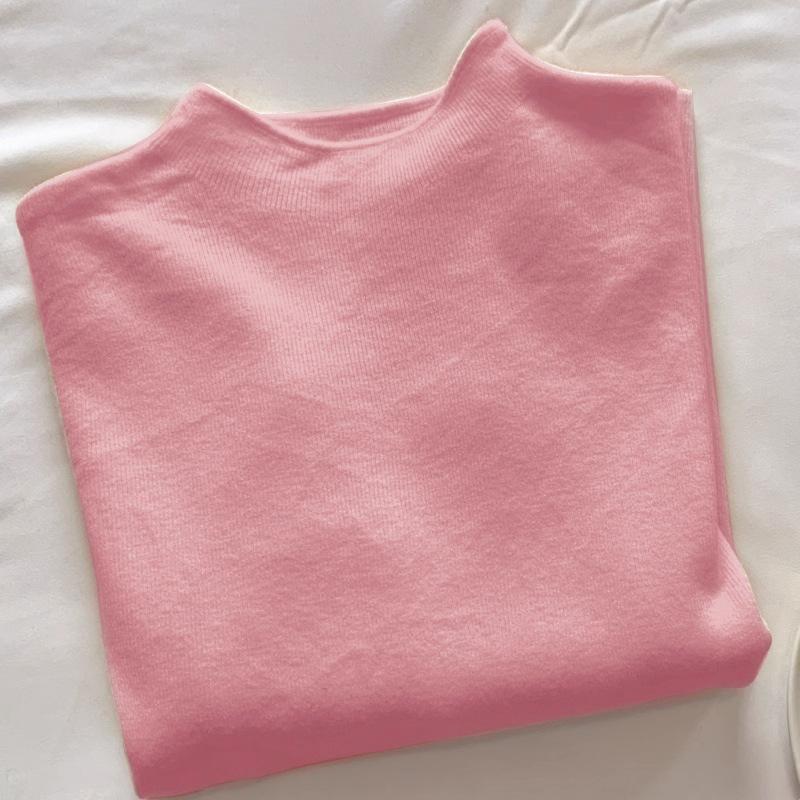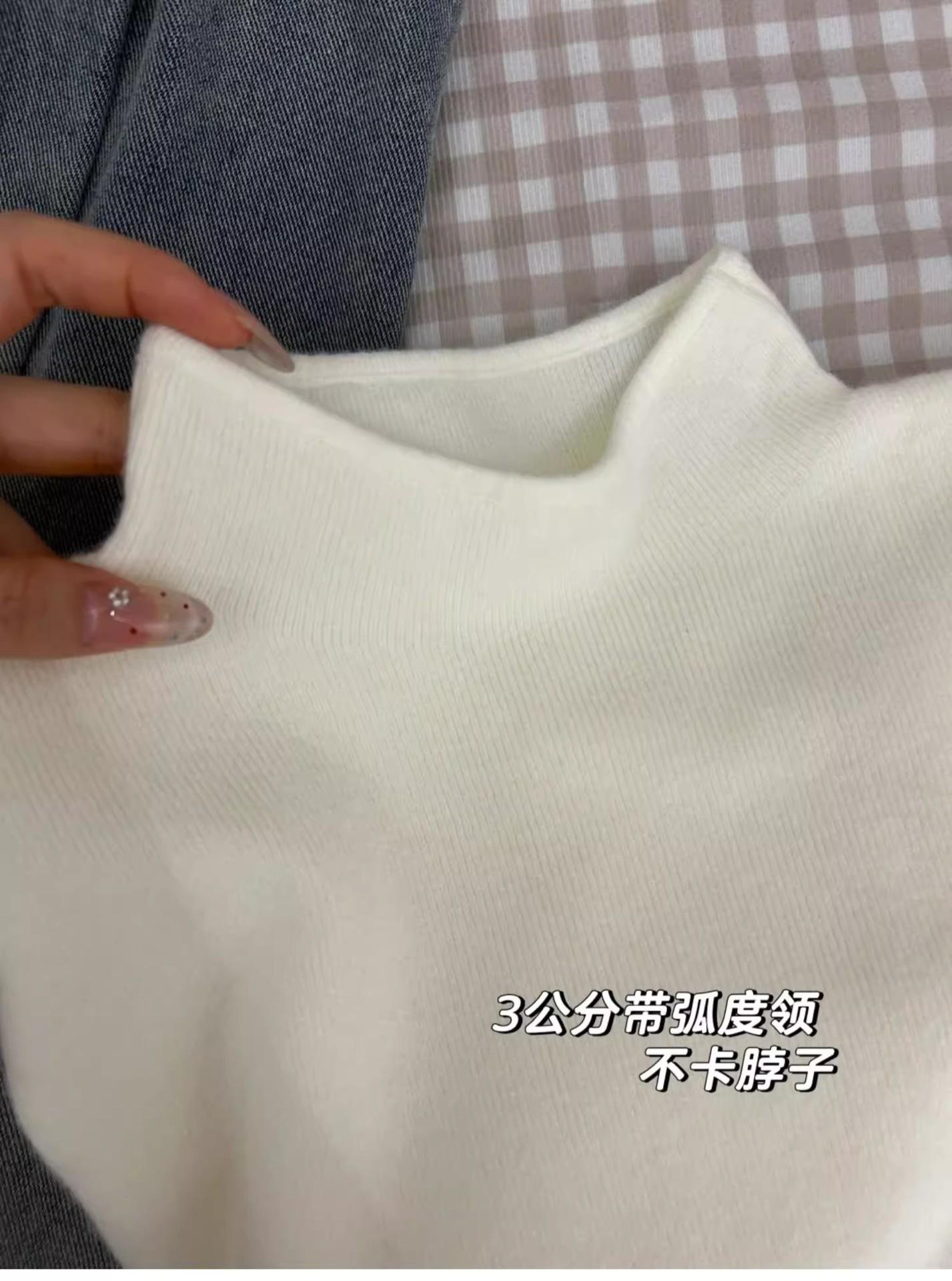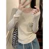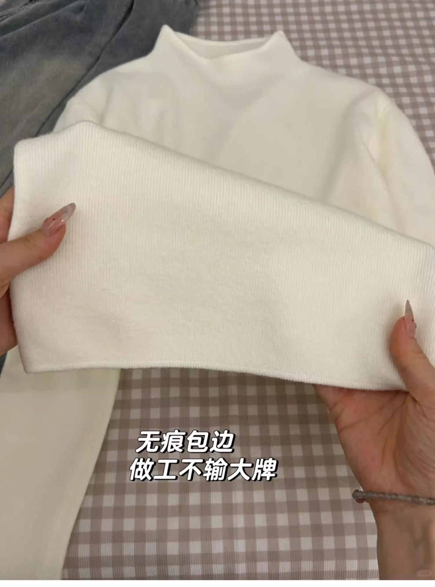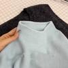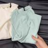 Camiseta básica de punto suave y cerosa tipo leche con cuello mao pequeño de manga larga para mujer Invierno 2025 Suéter Otoño Estilo coreano Top sencillo Ropa interior