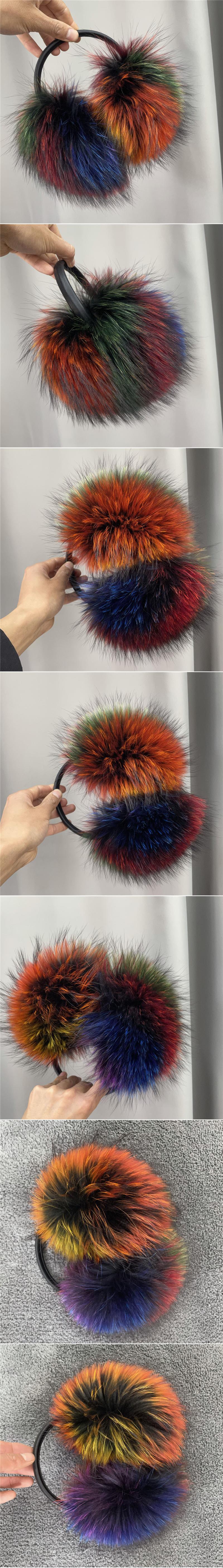 Orejeras de Piel de Zorro de Siete Colores, Orejeras Cálidas, Soporte de Piel de Oveja, Orejeras de Piel de Mapache, Orejeras de Invierno