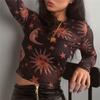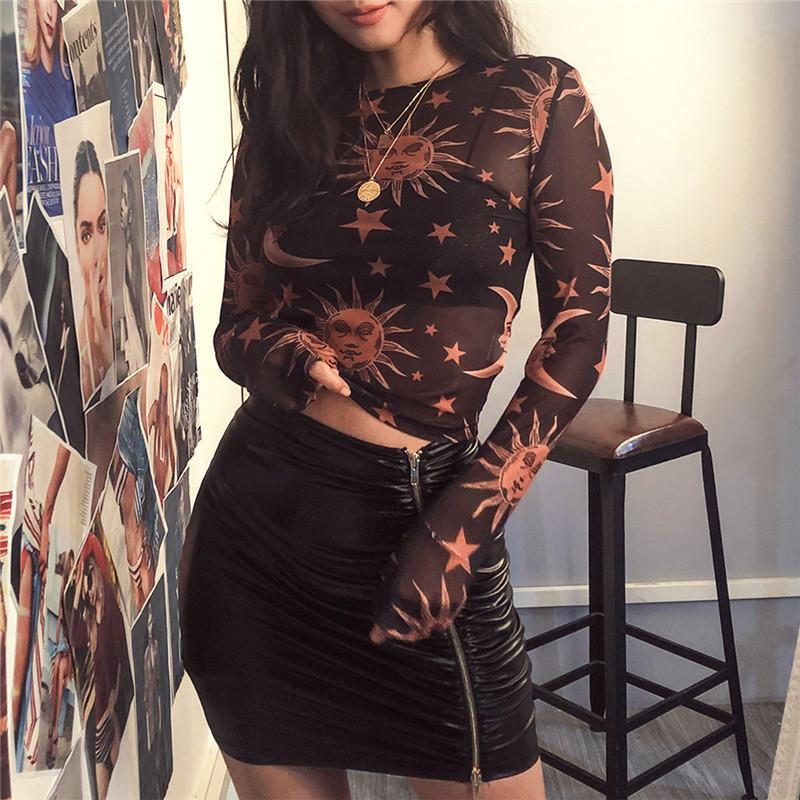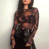 Estilo europeo y americano transfronterizo nuevo 2024 AliExpress primavera comercio exterior Amazon manga larga malla transparencia cuello redondo camiseta básica