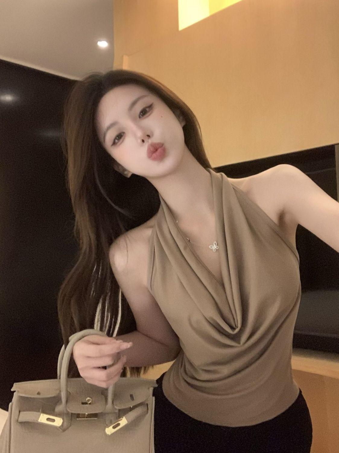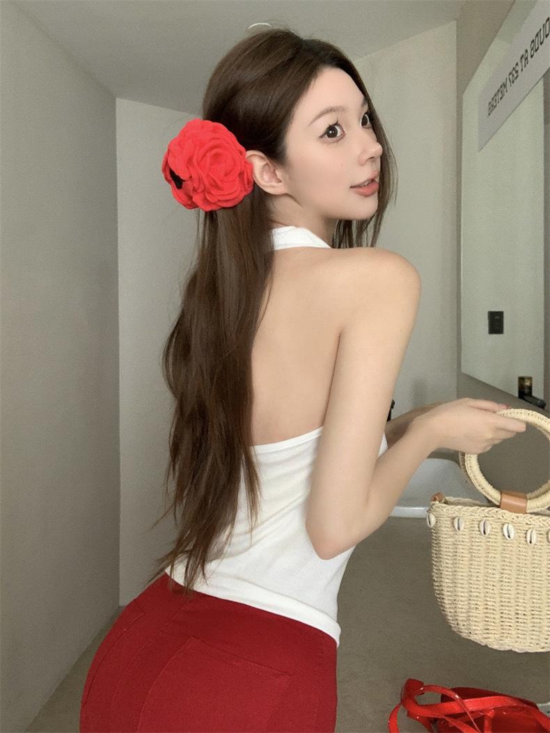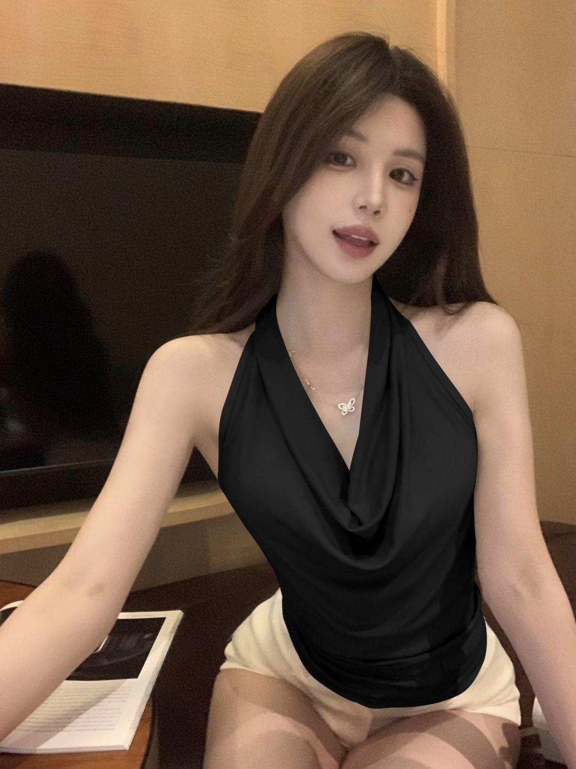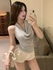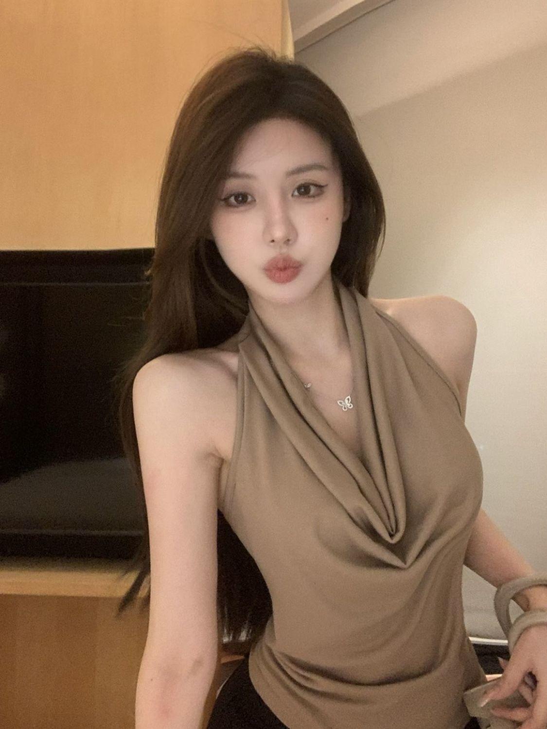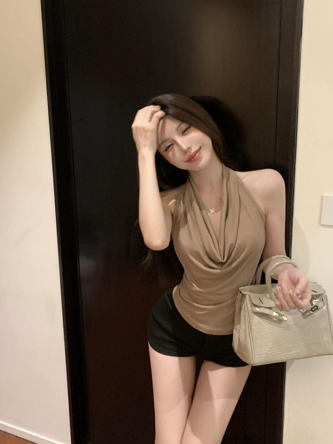 Verano Deseo Puro Chica Caliente Ins Sin Mangas Espalda Descubierta Cuello Oscilante Cuello Halter Camisola Nuevo Diseño Top Básico Camiseta de Mujer