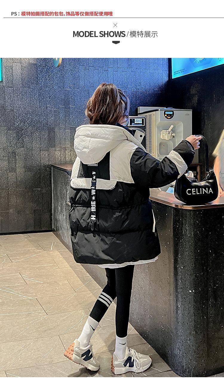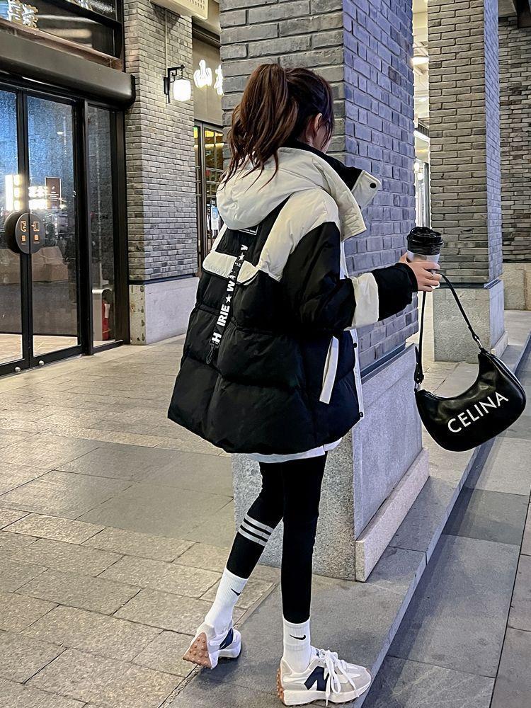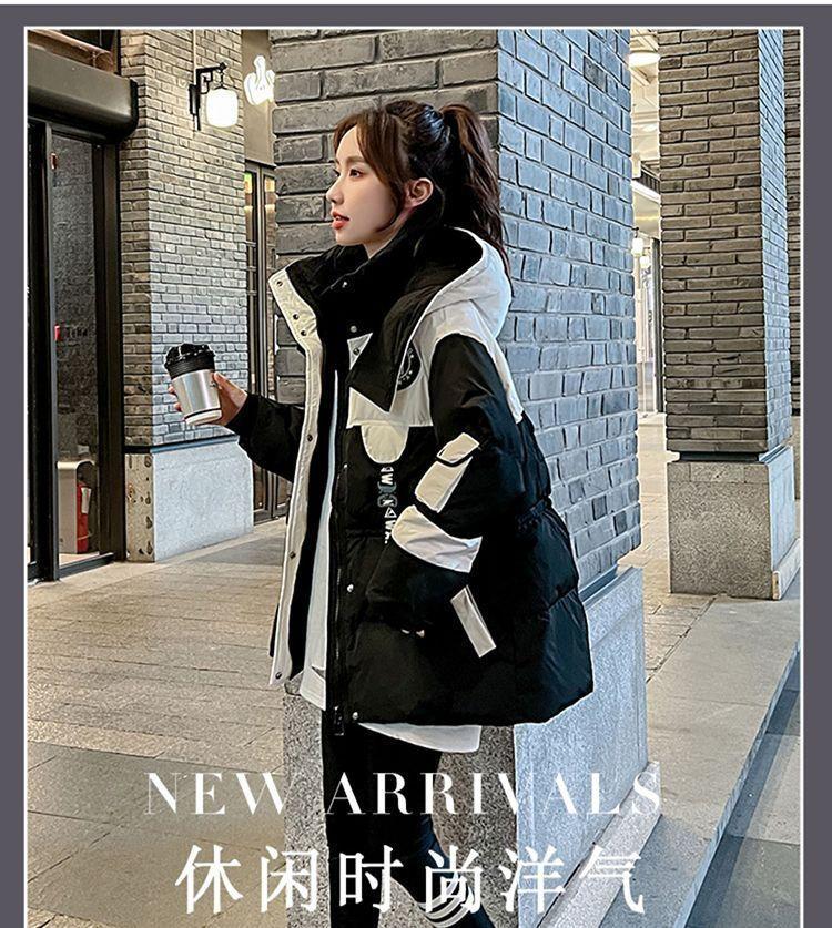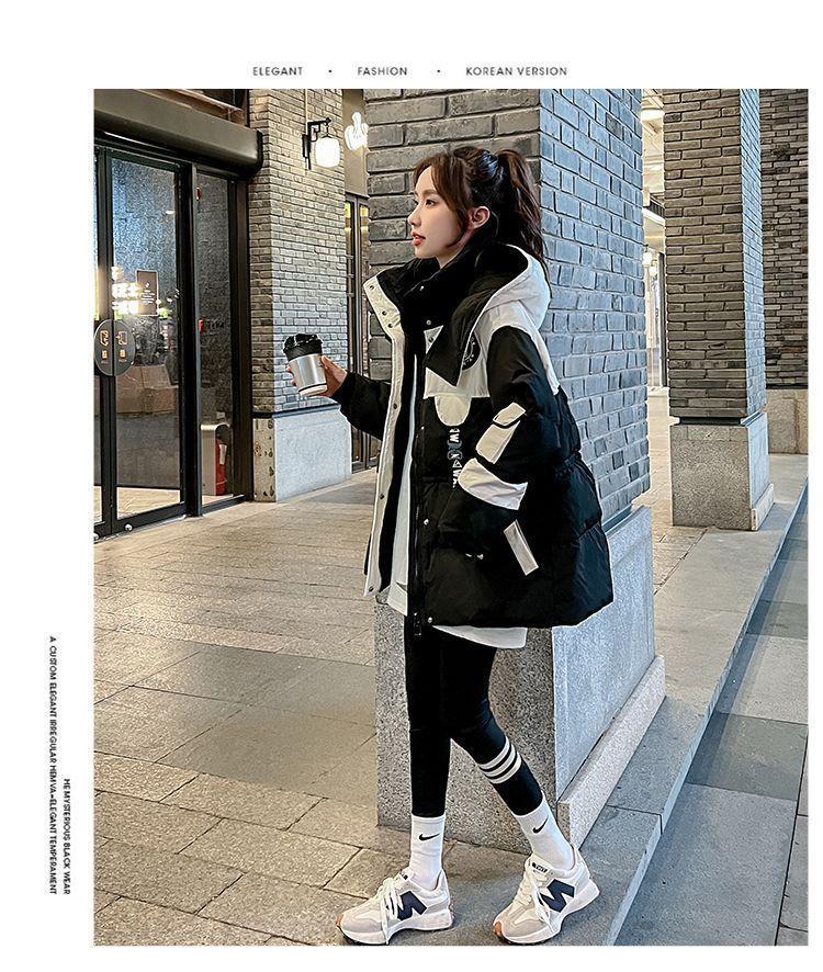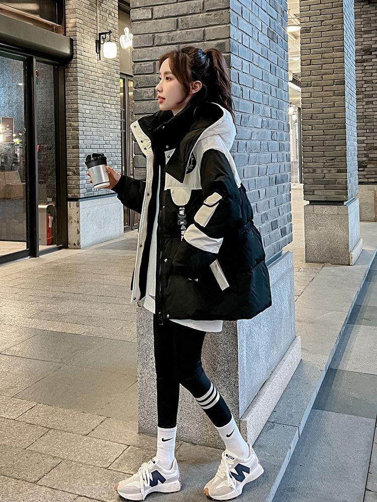 Chaqueta Parker Negra de Largo Medio Acolchada de Algodón para Mujer Invierno 2024 Nueva Llegada Holgada Ajustada con Capucha Abrigo Acolchado de Algodón Trendy