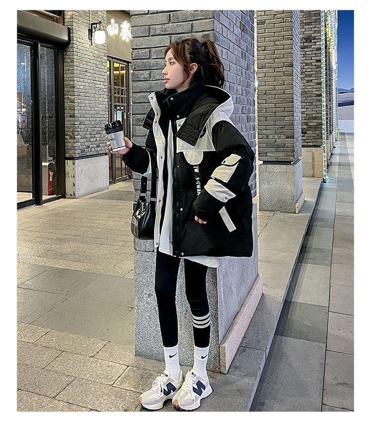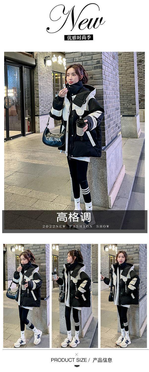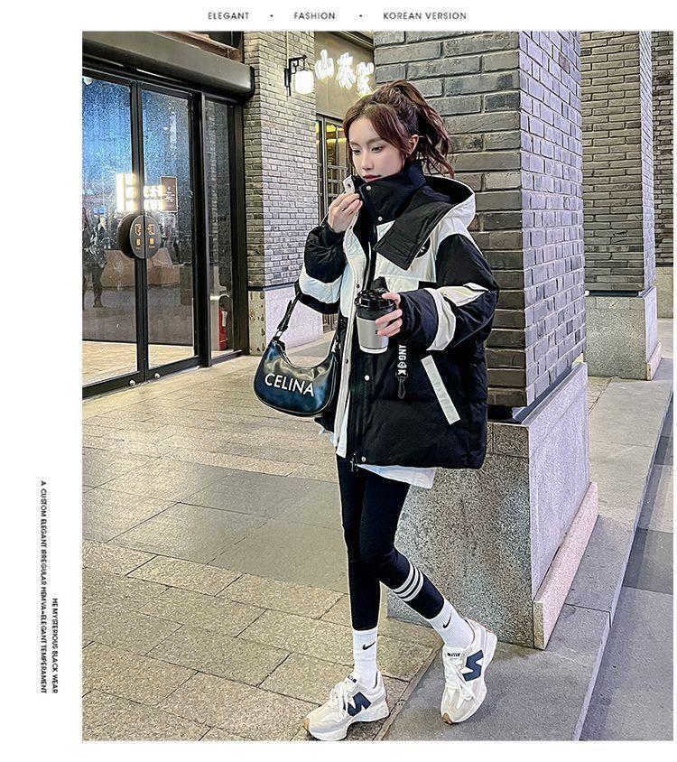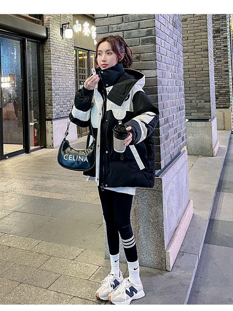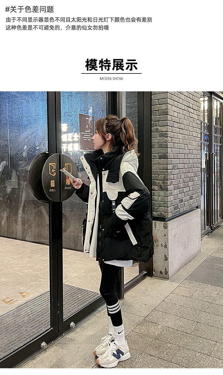 Chaqueta Parker Negra de Largo Medio Acolchada de Algodón para Mujer Invierno 2024 Nueva Llegada Holgada Ajustada con Capucha Abrigo Acolchado de Algodón Trendy