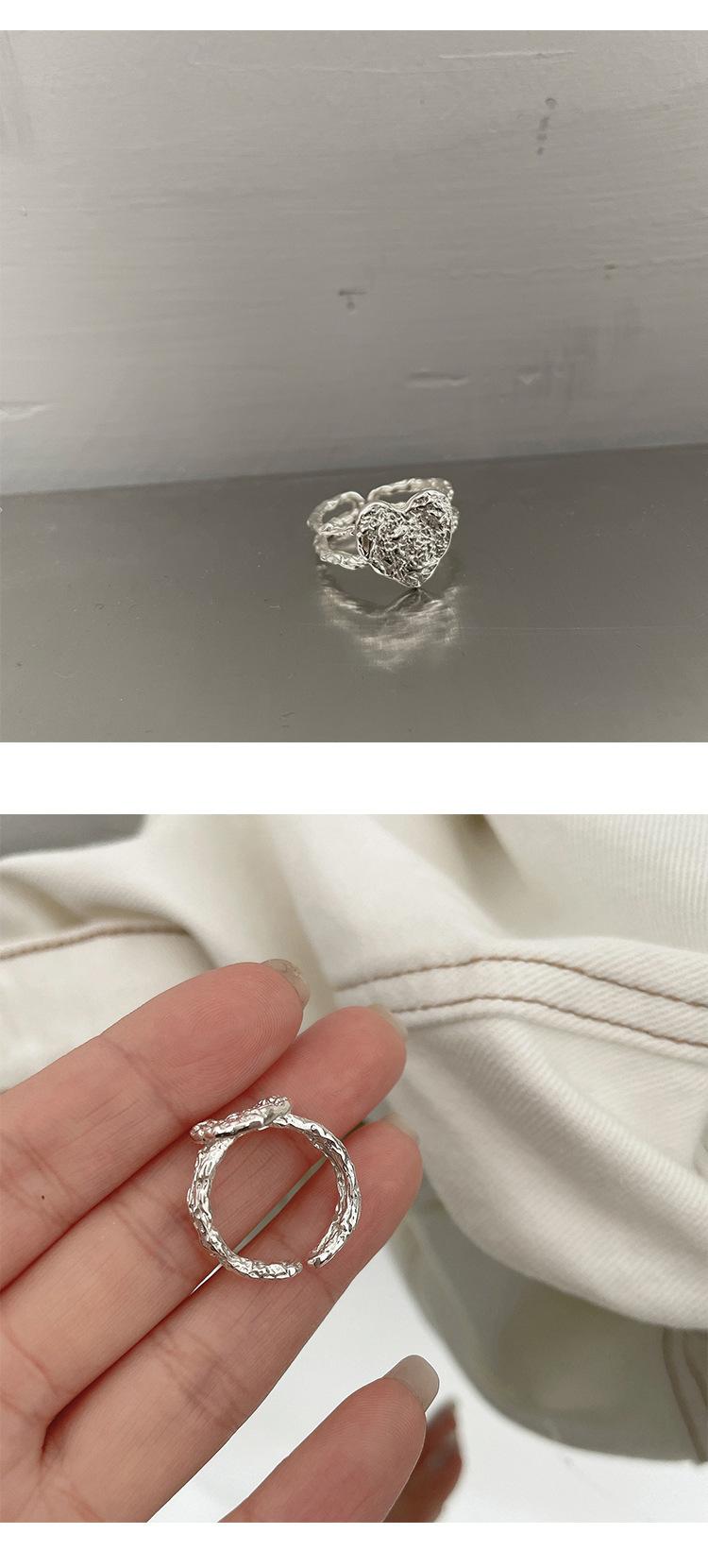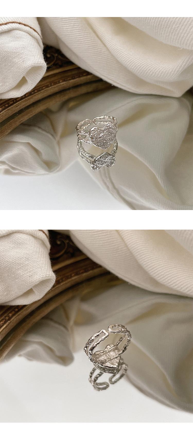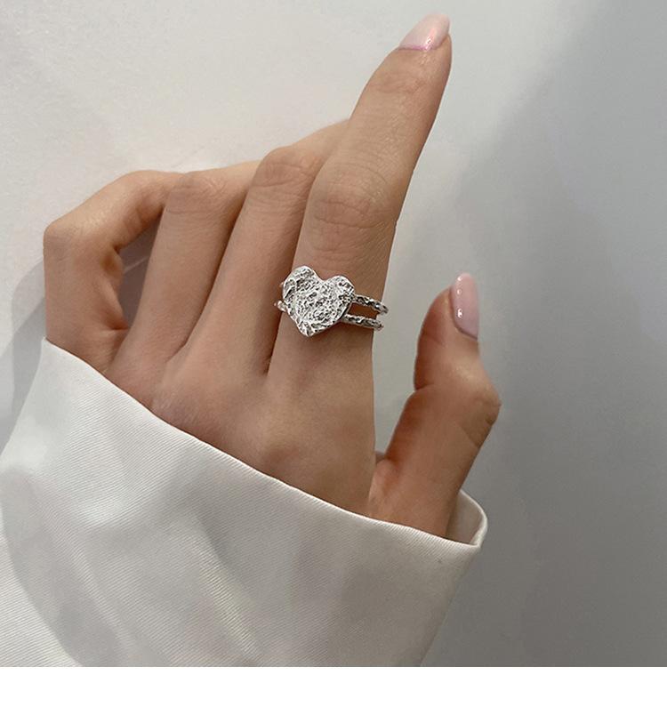 Anillo de Corazón de Hojalata de Aleación para Mujer Retro Elegante Cóncavo y Convexo Asimétrico Línea Corazón de Durazno Anillo Abierto Anillo para Dedo Índice