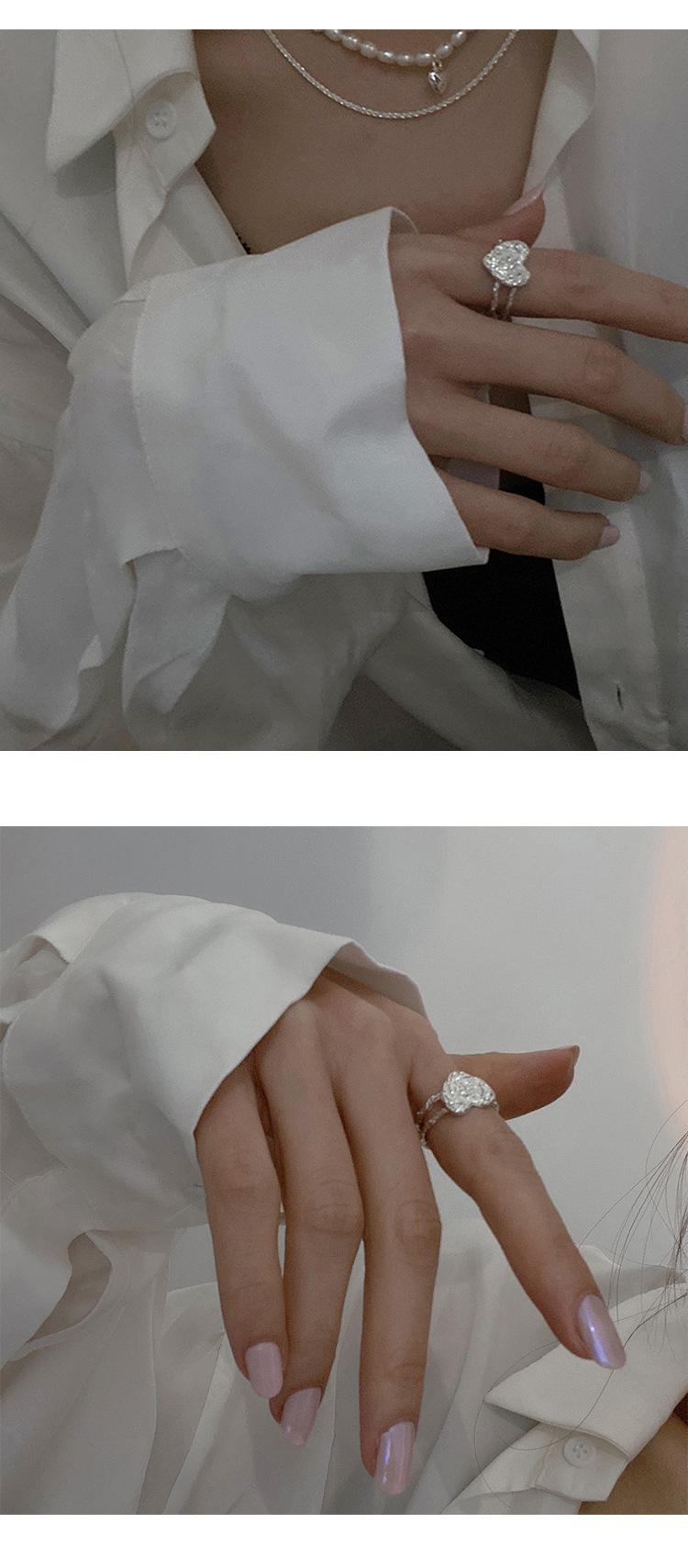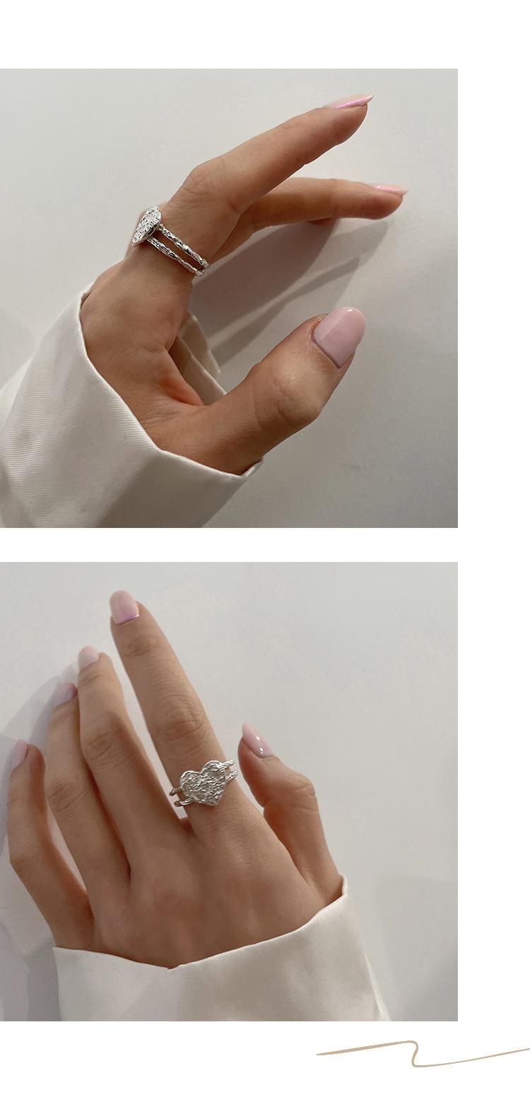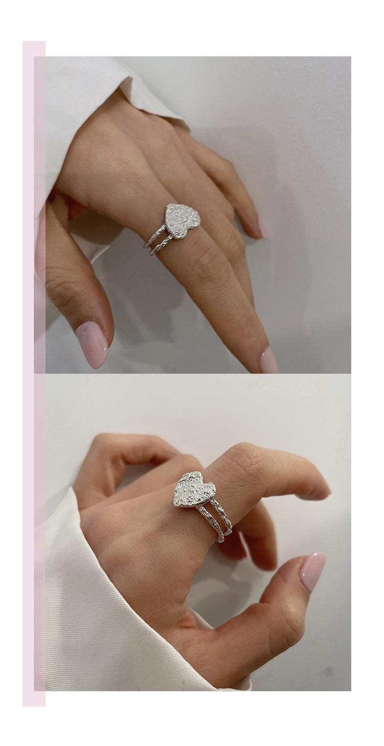 Anillo de Corazón de Hojalata de Aleación para Mujer Retro Elegante Cóncavo y Convexo Asimétrico Línea Corazón de Durazno Anillo Abierto Anillo para Dedo Índice