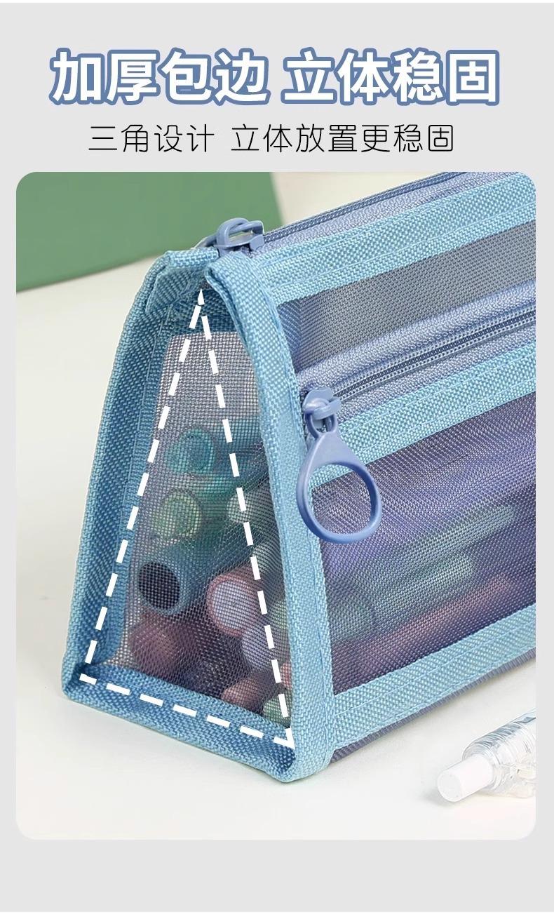 Pencil bag transparent mesh student exam special stationery bag kids pencil bag double layer stereo large capacity stationery box