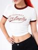 Camiseta de Manga Corta Estilo Americano Verano Nueva Cuello Redondo Corta Estampada Exponiendo Cintura Versátil Adelgazante Anudable Dulce Transfronteriza
