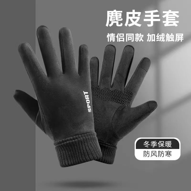 Guantes de gamuza para hombre y mujer invierno con forro polar cálidos a prueba de viento antideslizantes para exteriores pantalla táctil estudiante coreano lindo ciclismo conducir