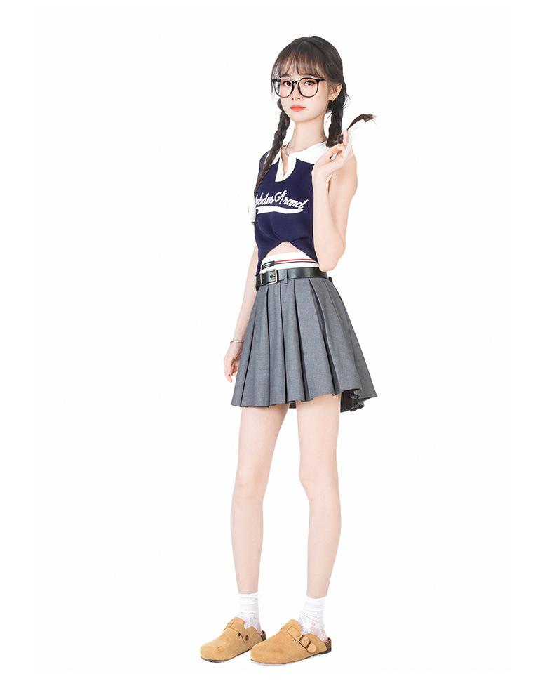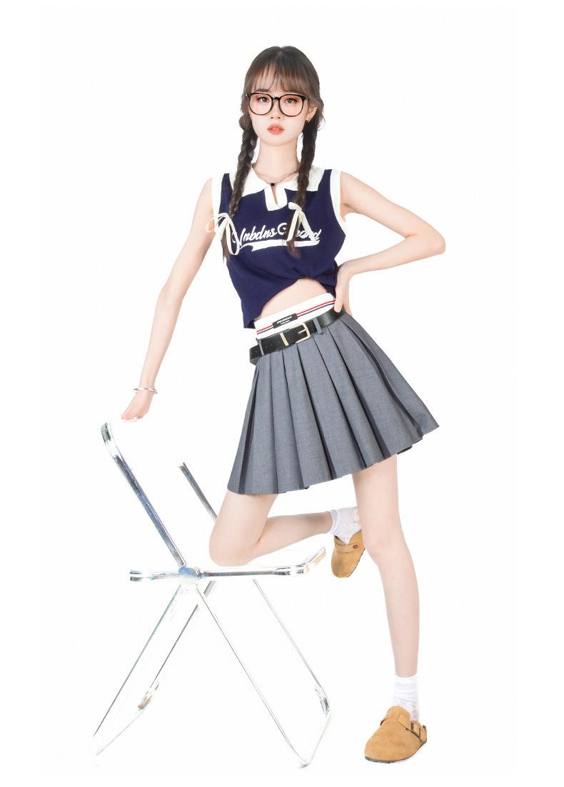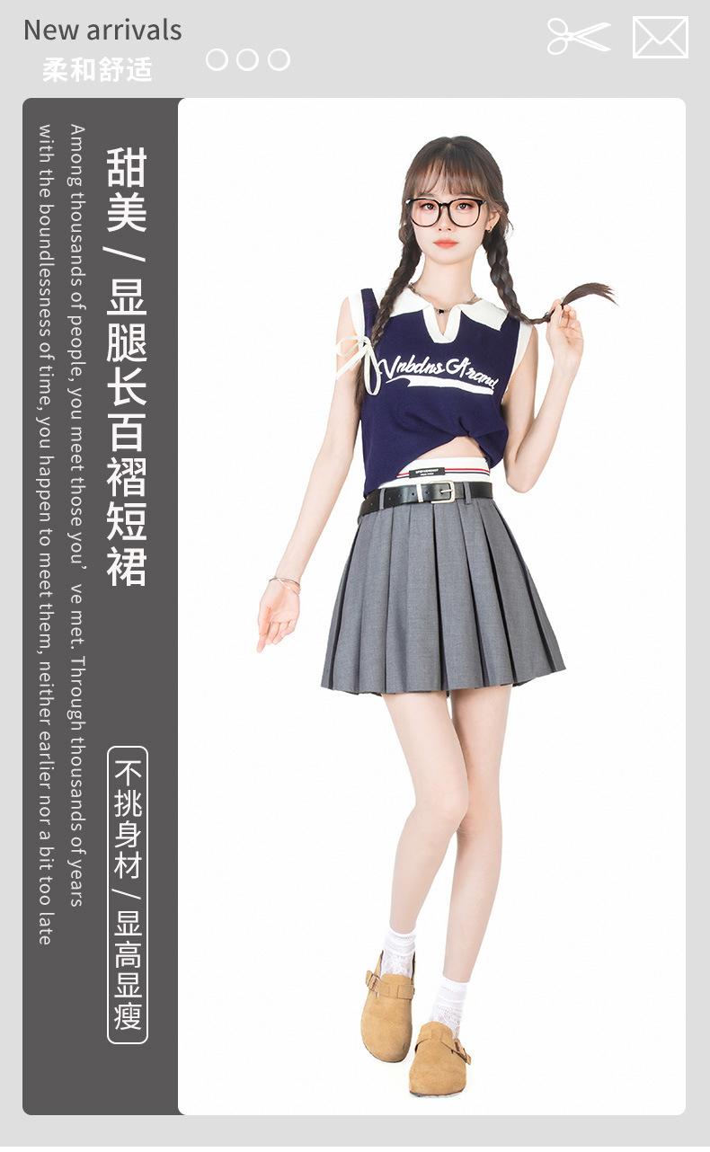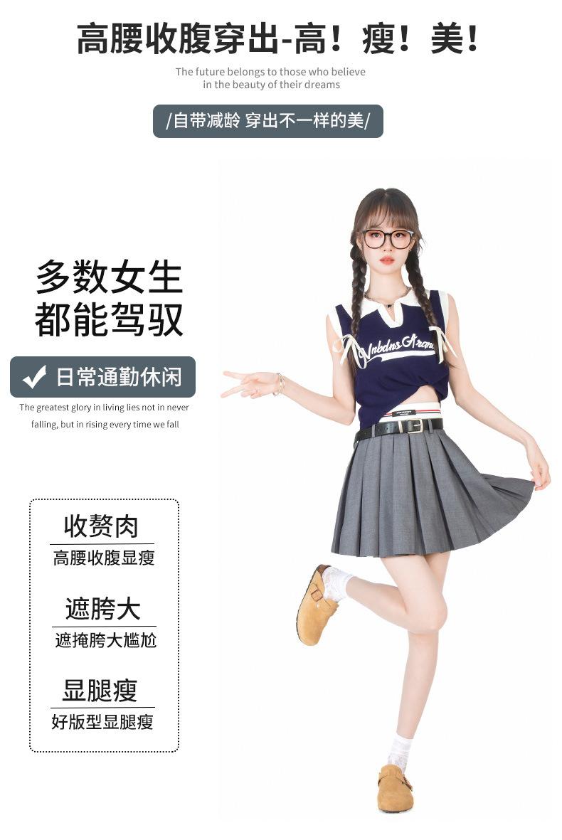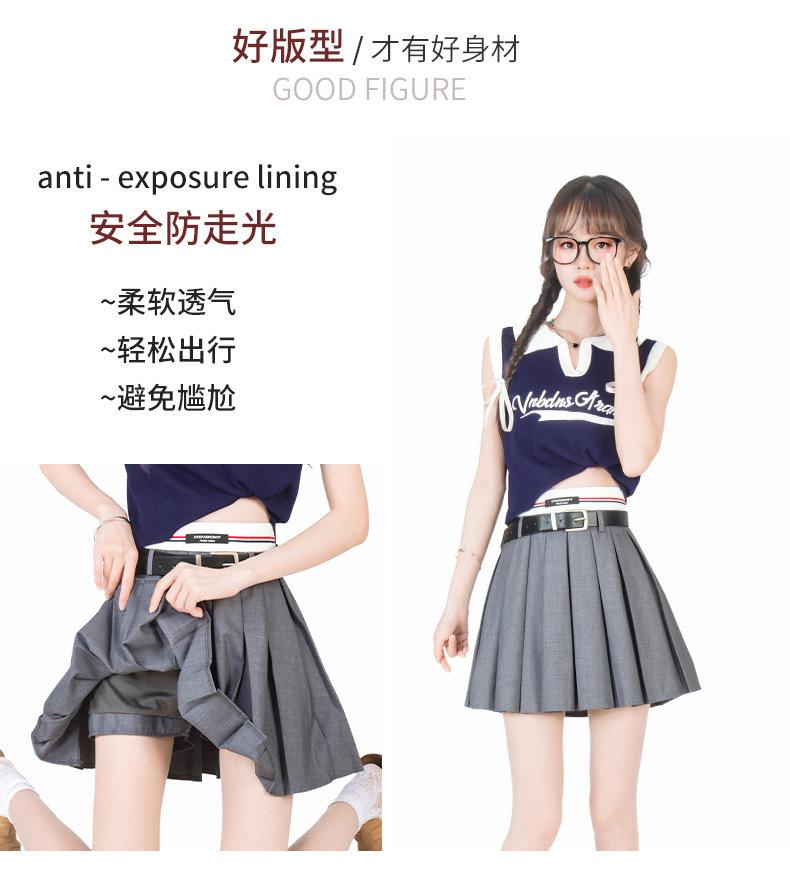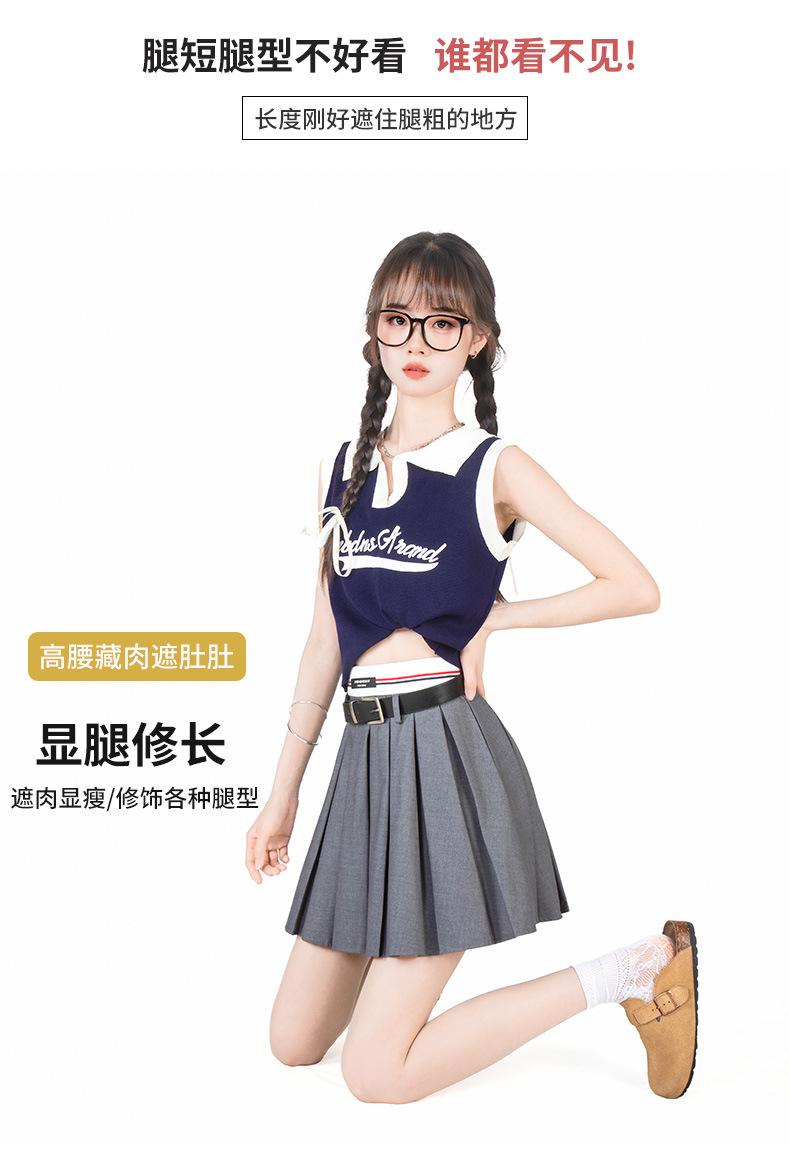 Falda Plisada de Moda con Empalme Estilo Americano Diseño Urbano Empalme de Color Contrastante Temperamento Media Falda Media Falda para Mujer