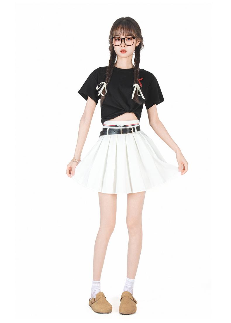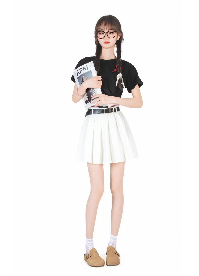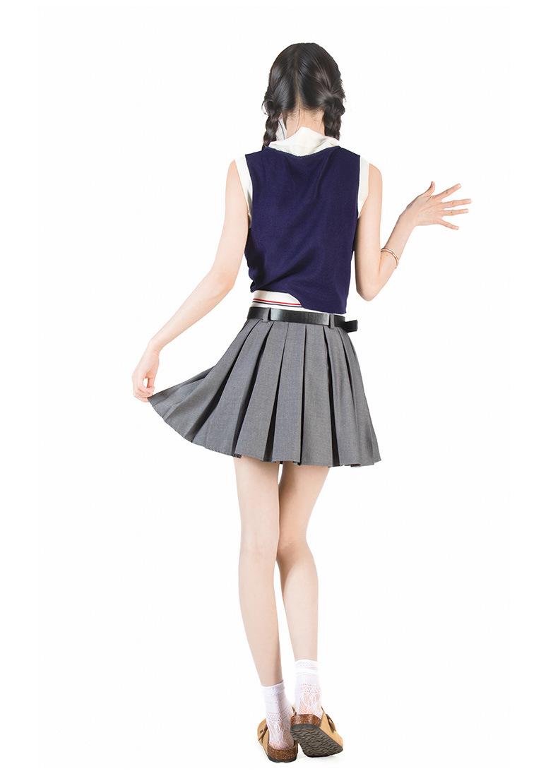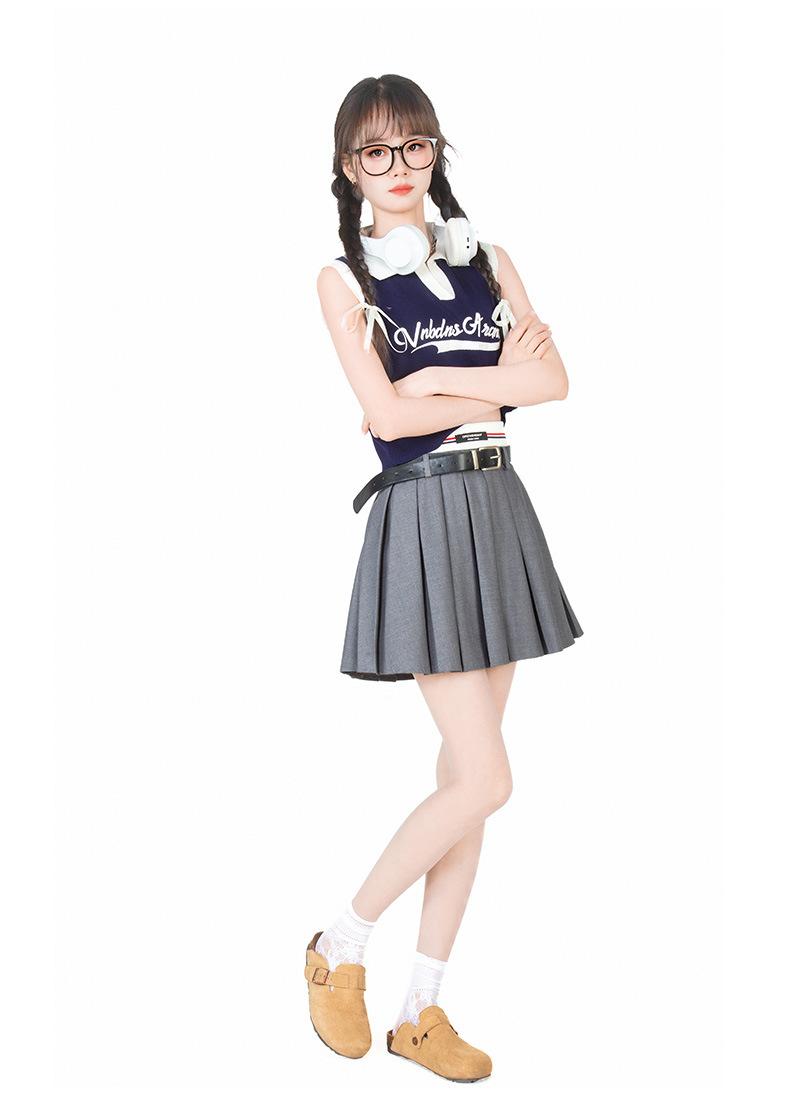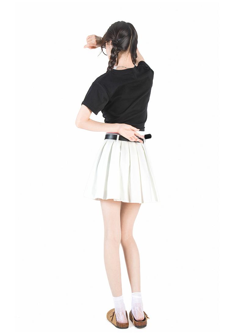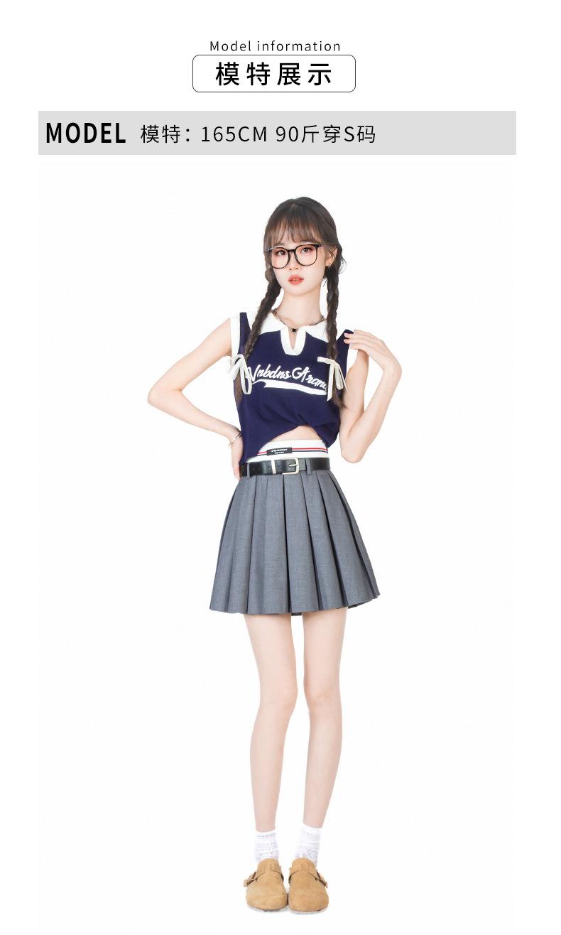 Falda Plisada de Moda con Empalme Estilo Americano Diseño Urbano Empalme de Color Contrastante Temperamento Media Falda Media Falda para Mujer