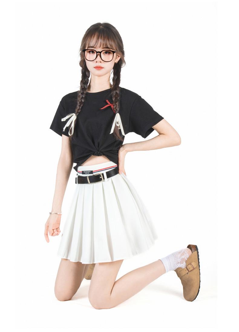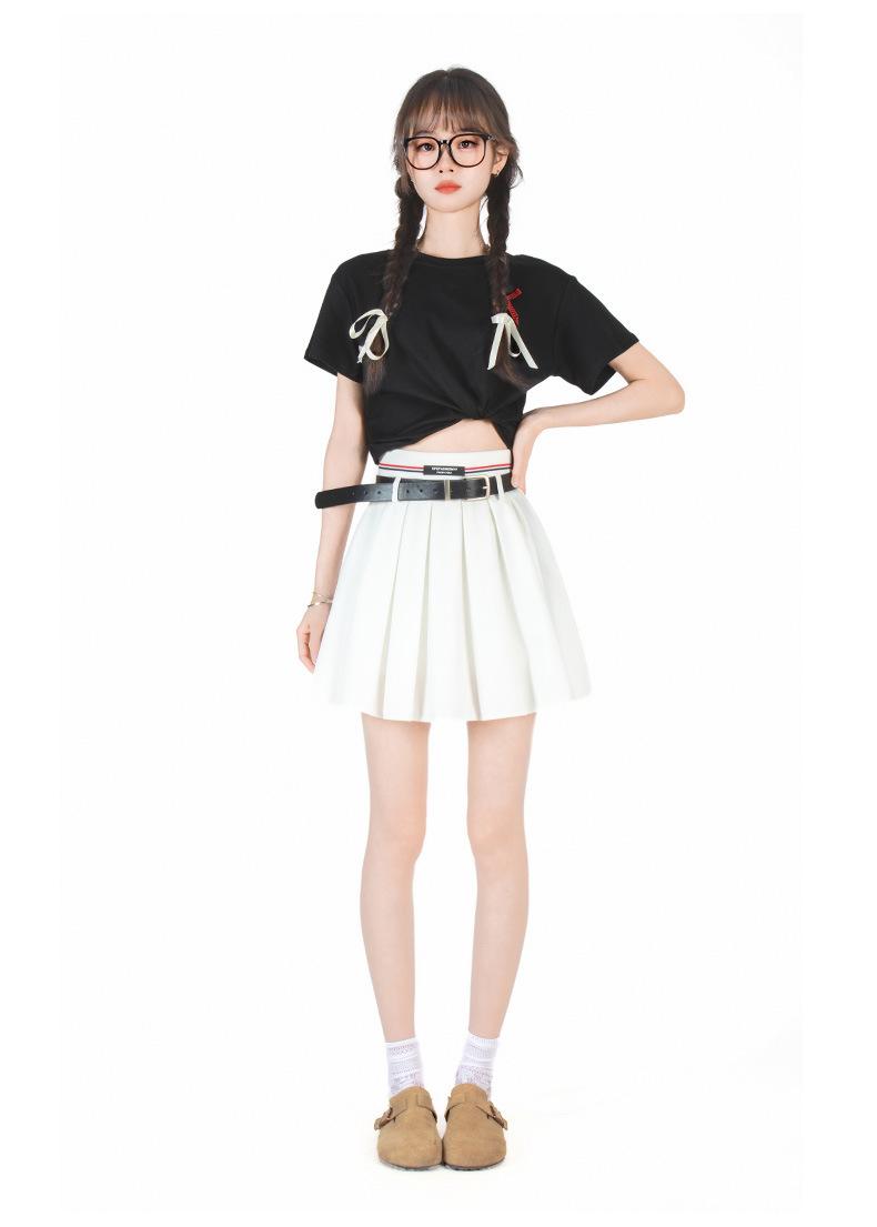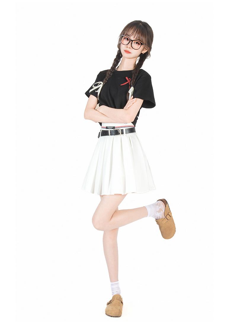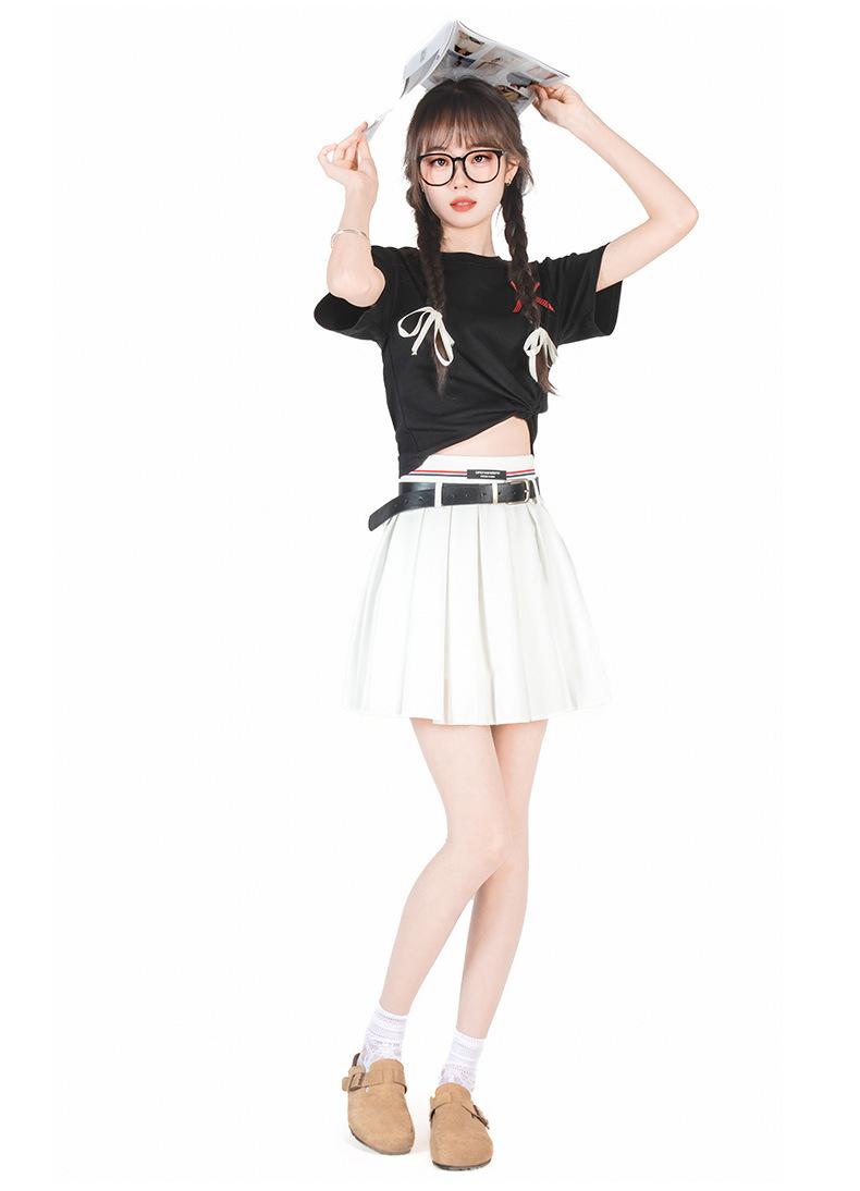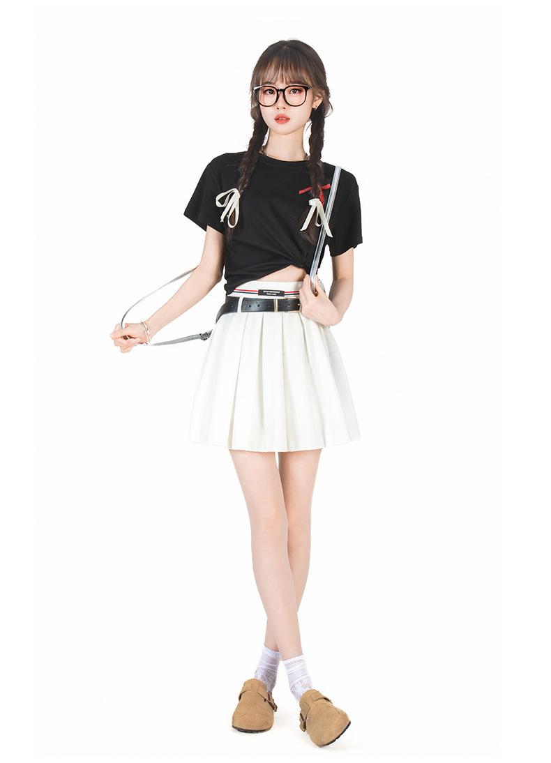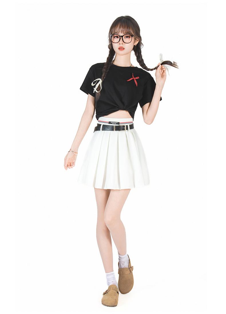 Falda Plisada de Moda con Empalme Estilo Americano Diseño Urbano Empalme de Color Contrastante Temperamento Media Falda Media Falda para Mujer