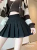 Falda Negra Nueva Otoño e Invierno 2024 Falda Plisada de Cintura Alta Falda Corta Estilo Universitario Lana Brillante Falda Línea A