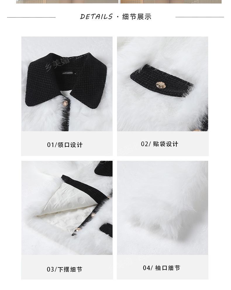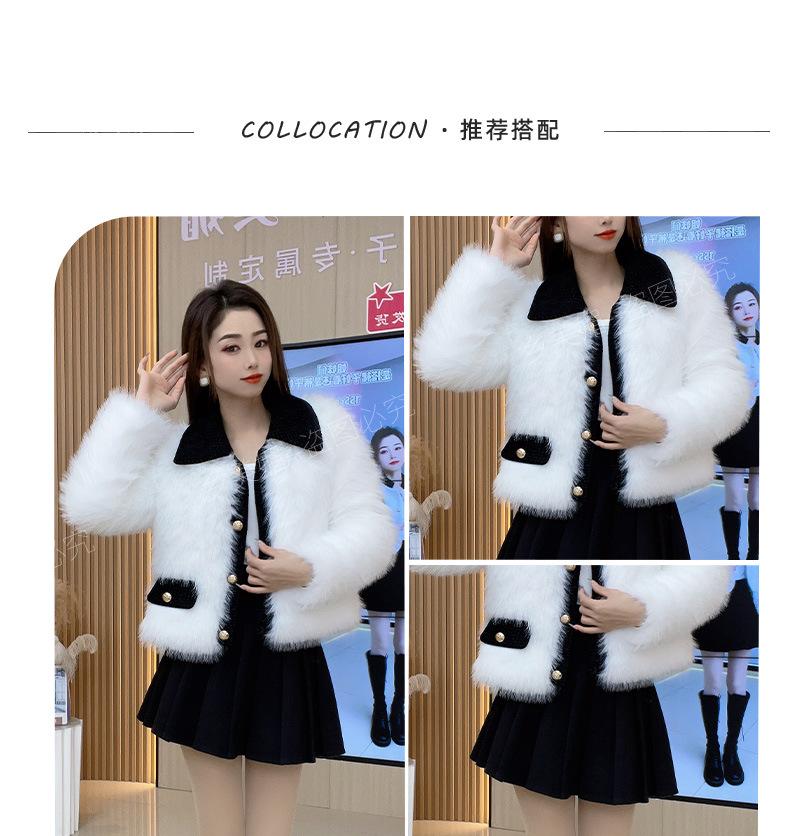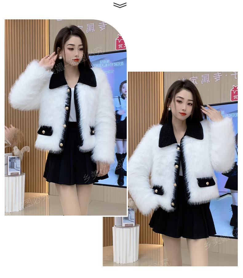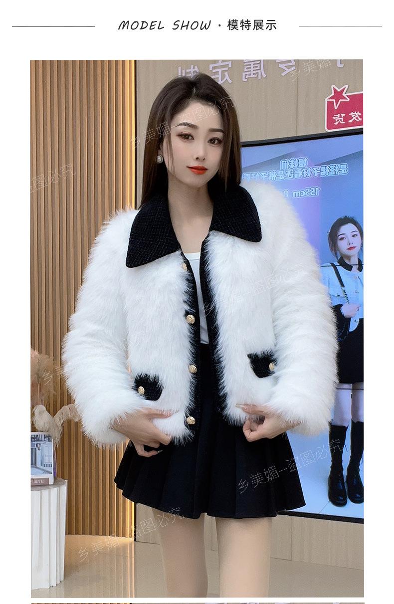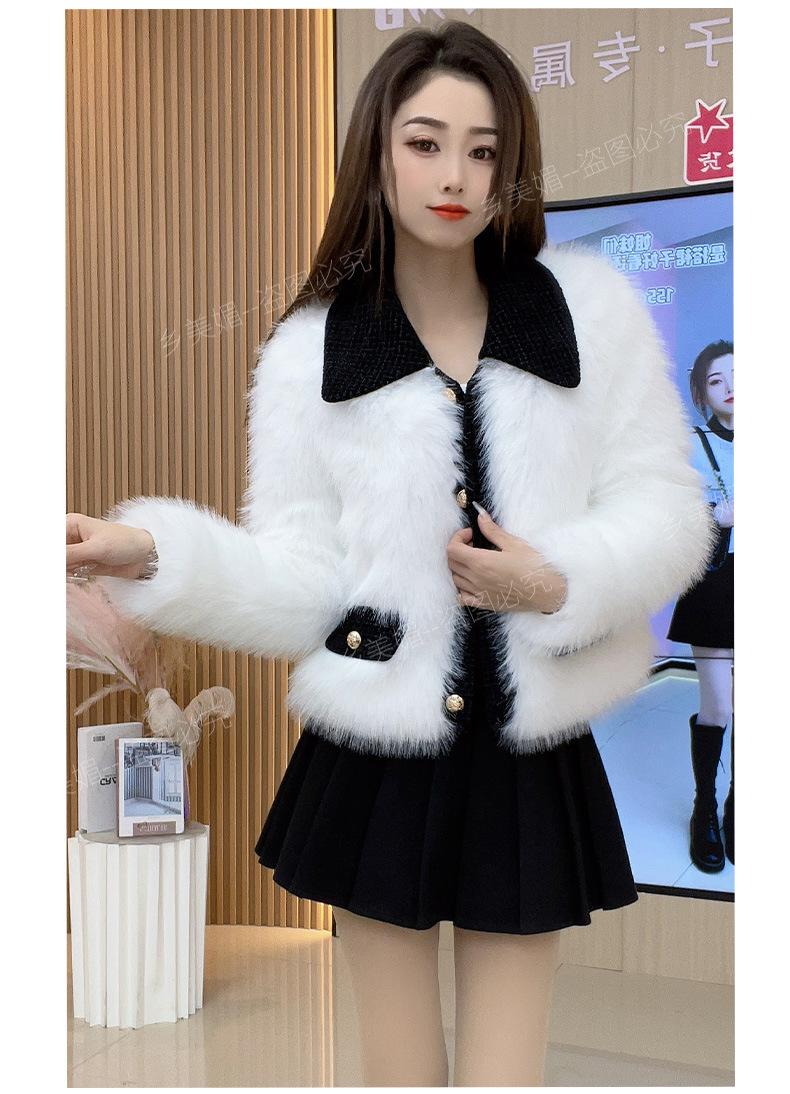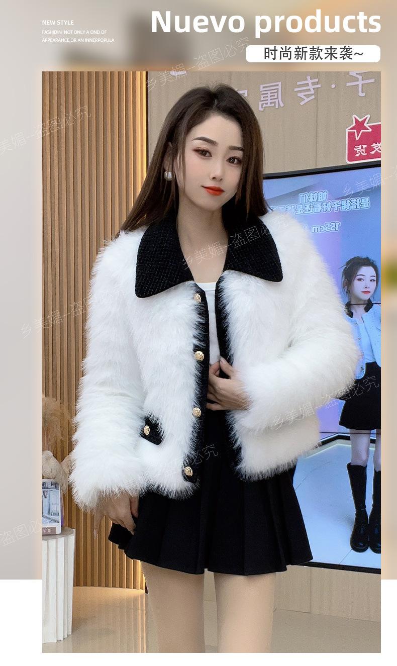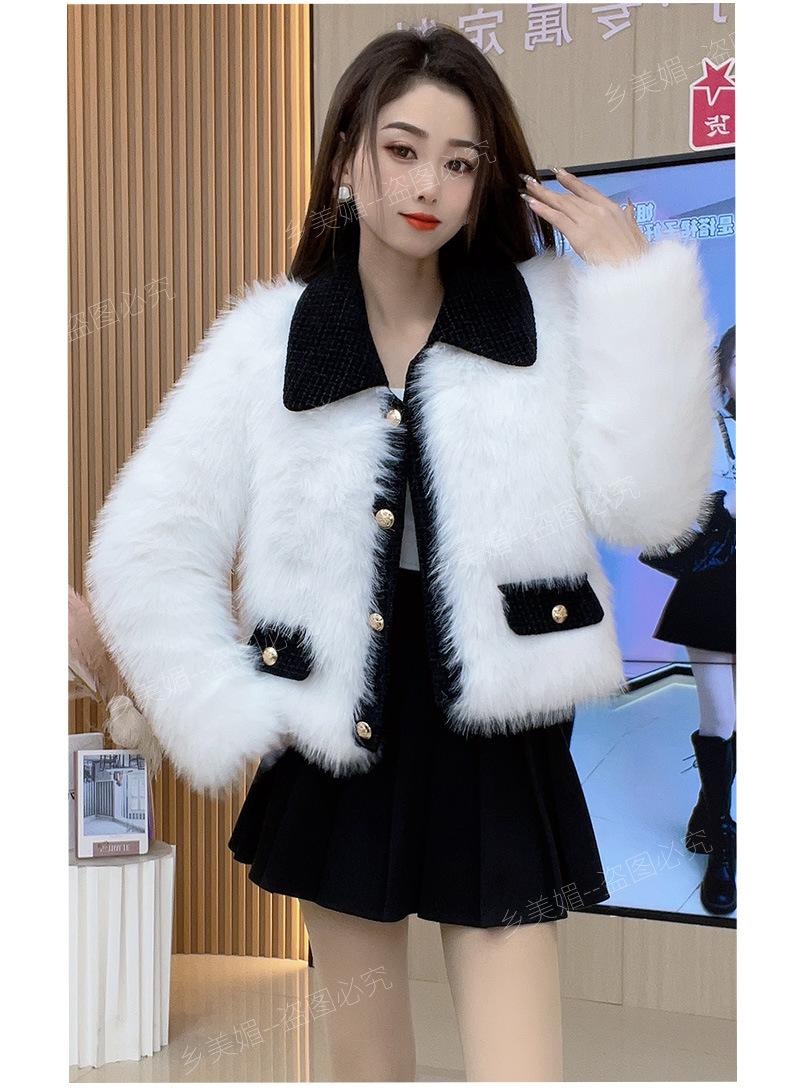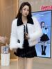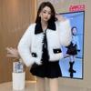 Abrigo corto blanco estilo Chanel de piel sintética integrada de cordero sintético engrosado de algodón para mujer