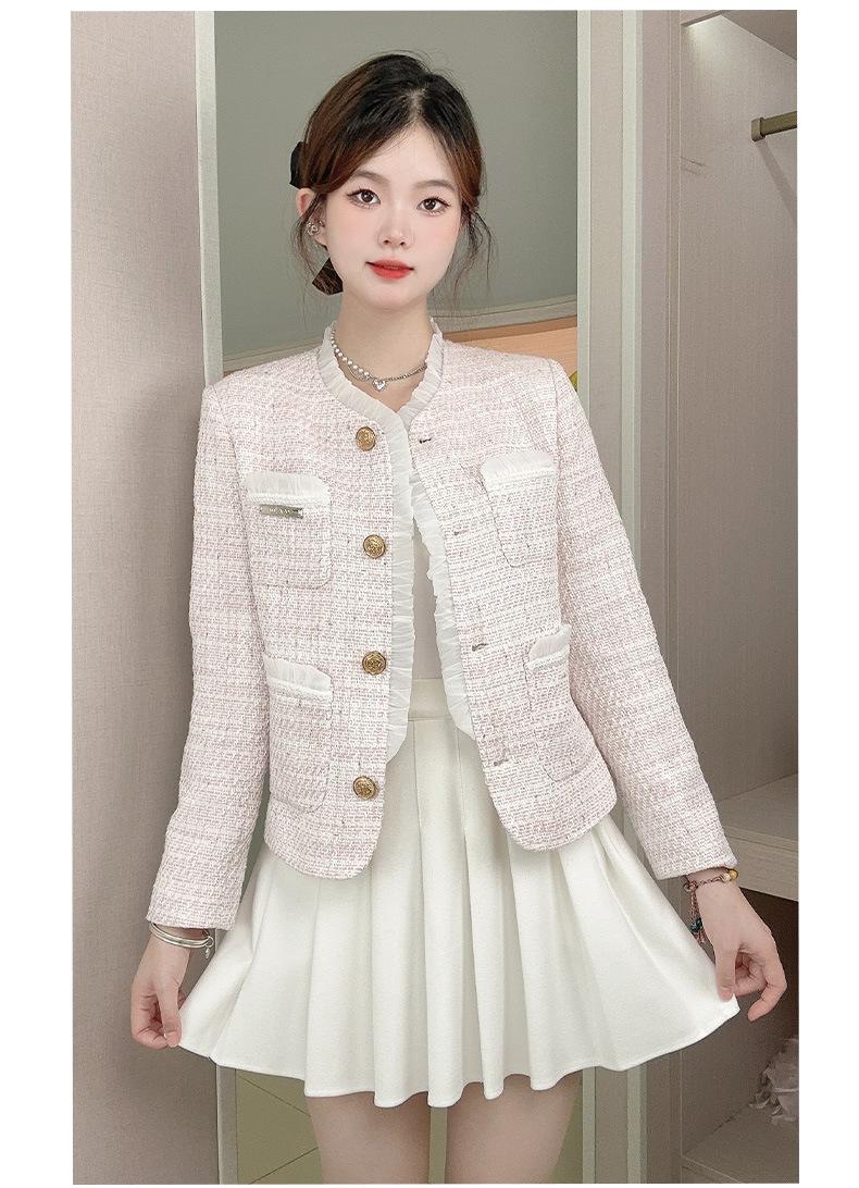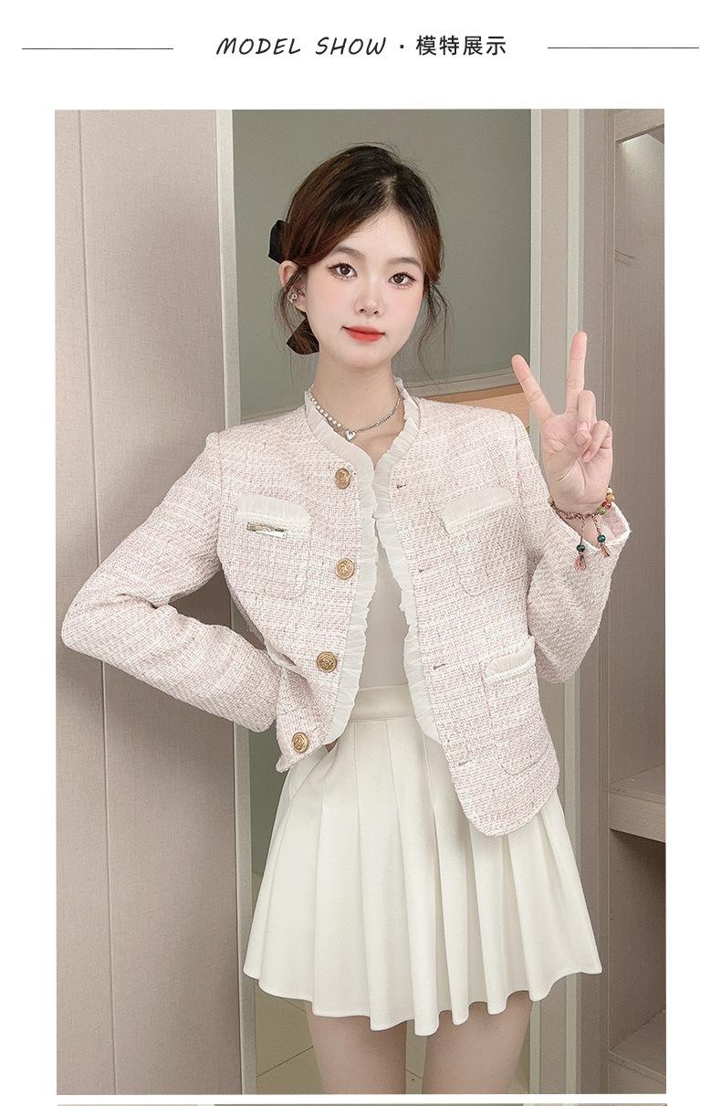 8102 otoño e invierno nuevo estilo celebridad Chanel suelto versátil pequeño tweed francés abrigo corto de lana para mujer