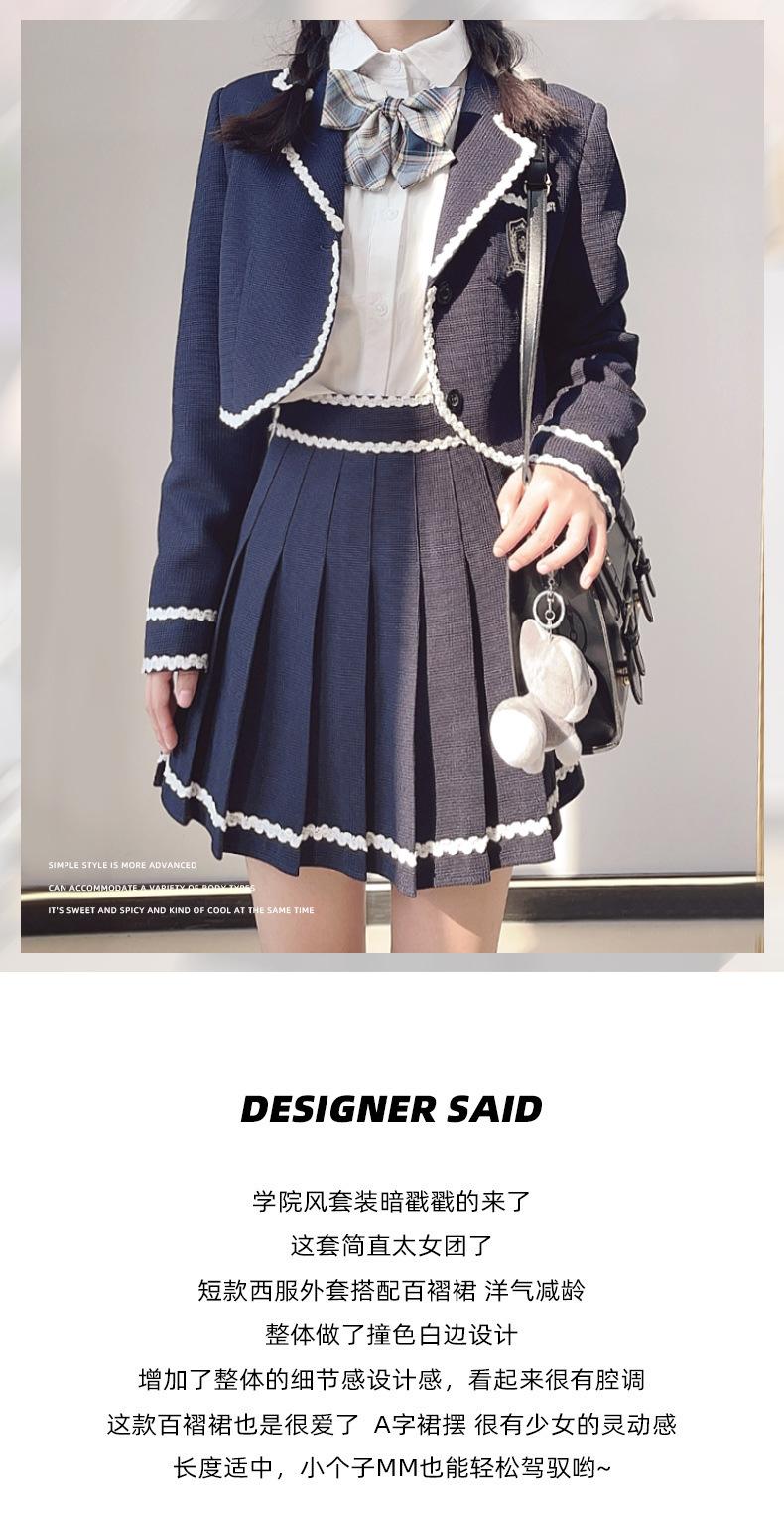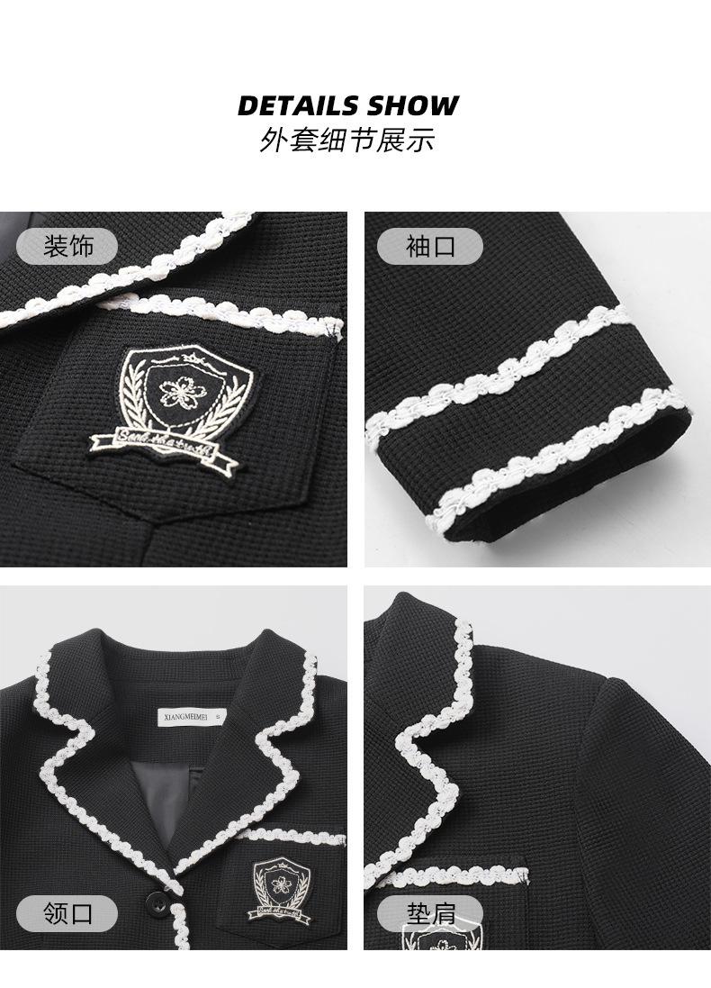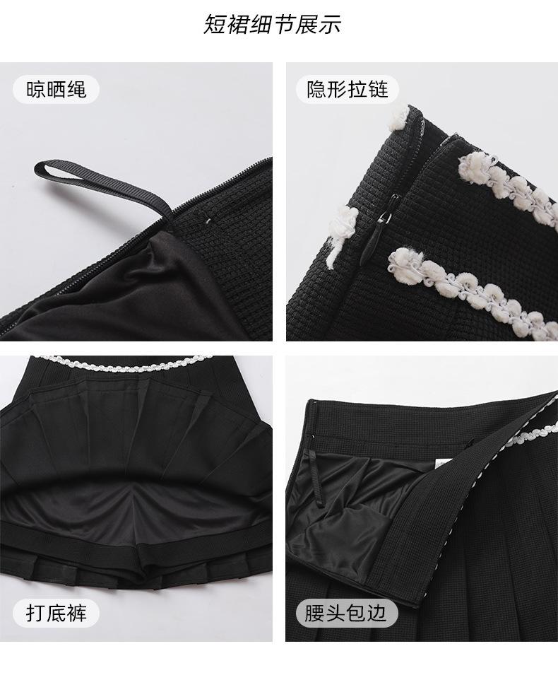 Traje Estilo Chanel para Mujer Otoño Elegante Reductor de Edad Abrigo Corto con Lazo Borde Blanco Falda Conjunto de Dos Piezas