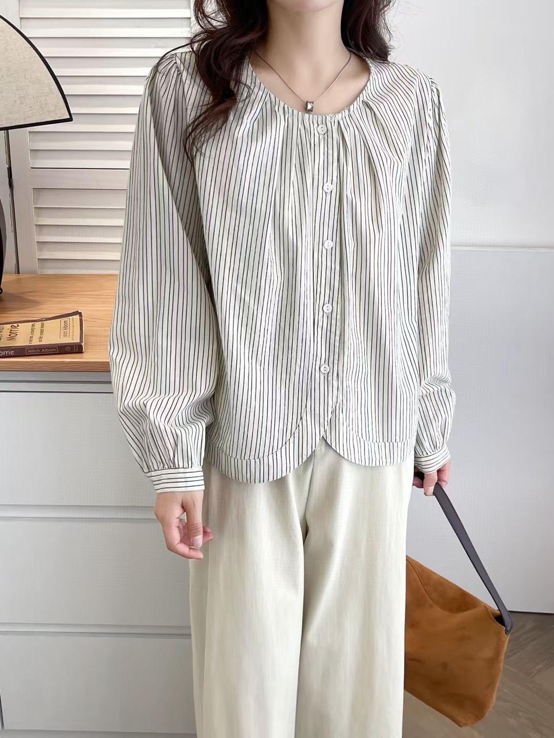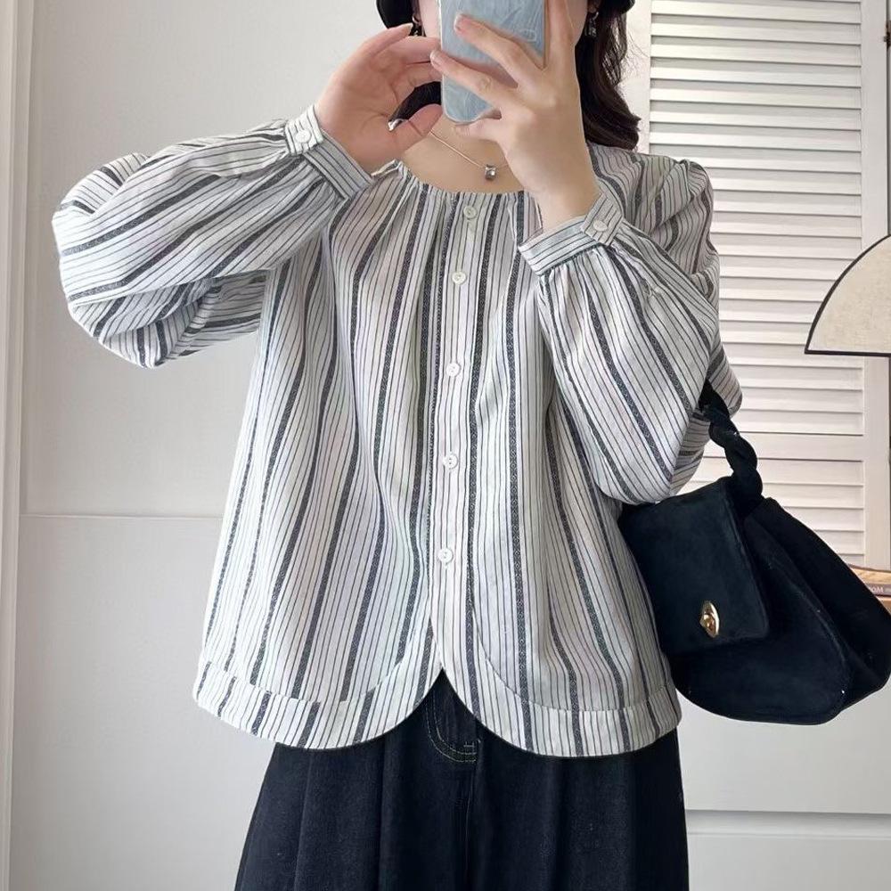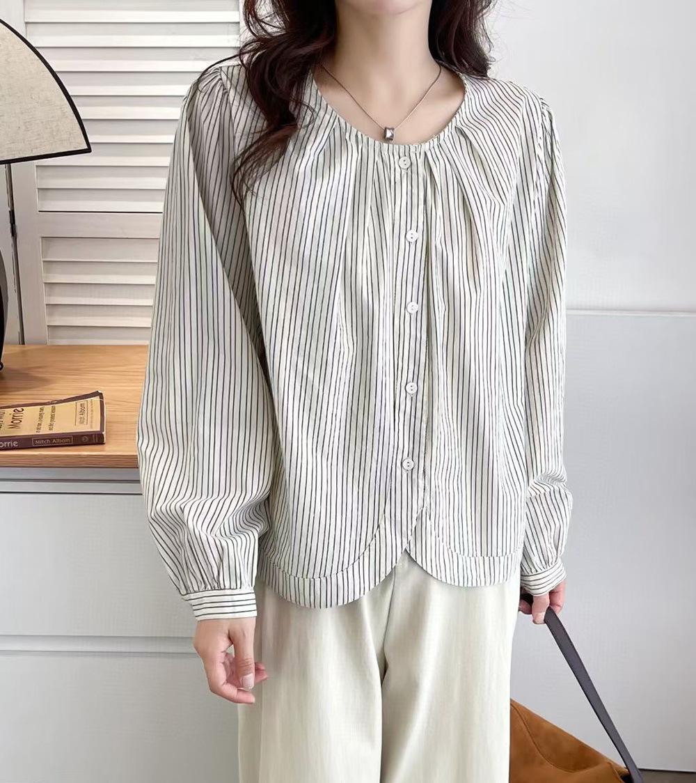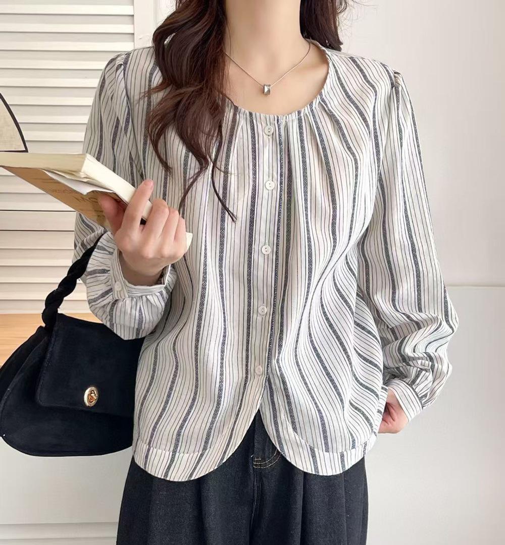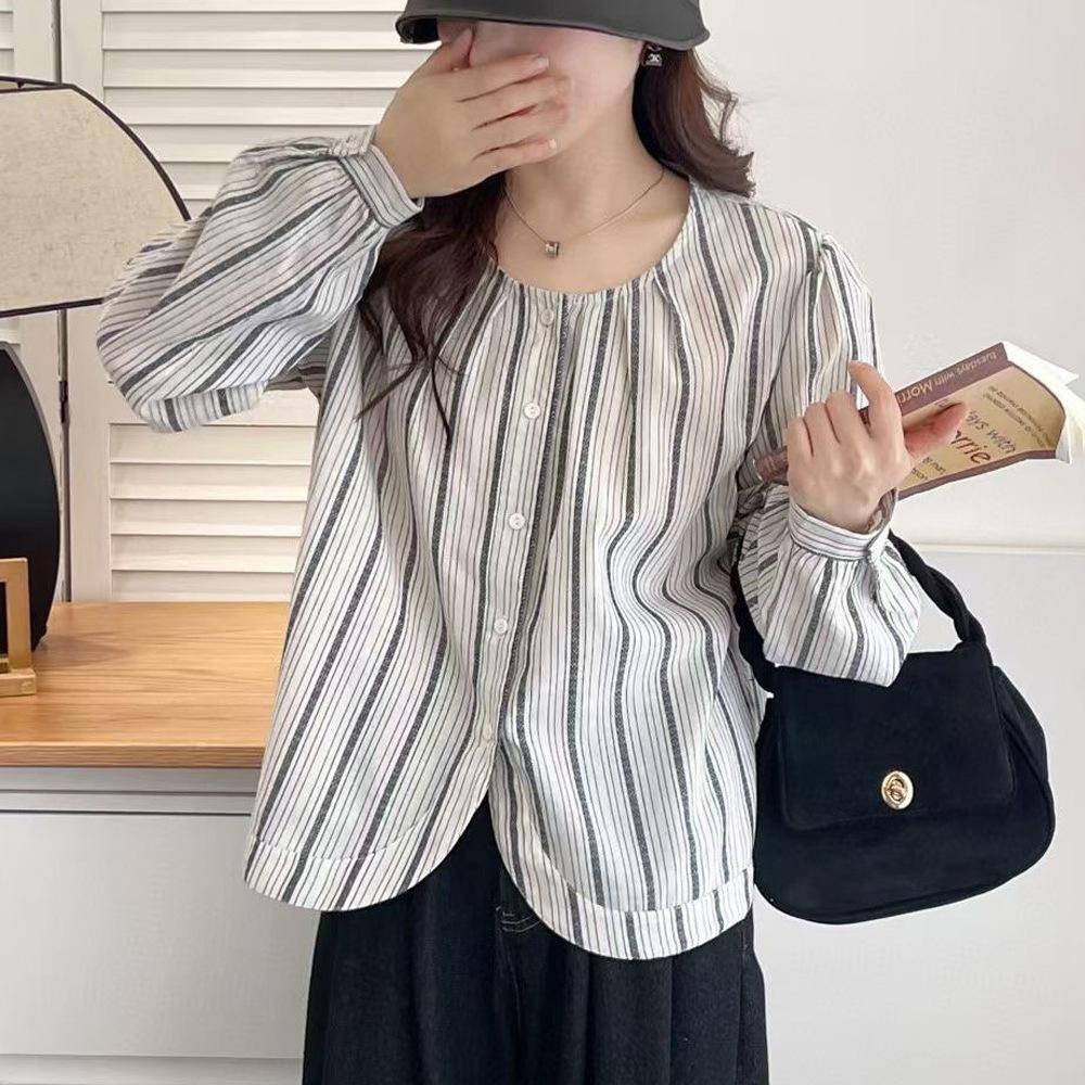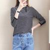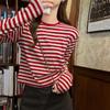 2025 primavera camiseta de rayas de cuello redondo pequeño para mujer holgada delgada coreana manga larga top al por mayor