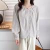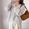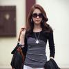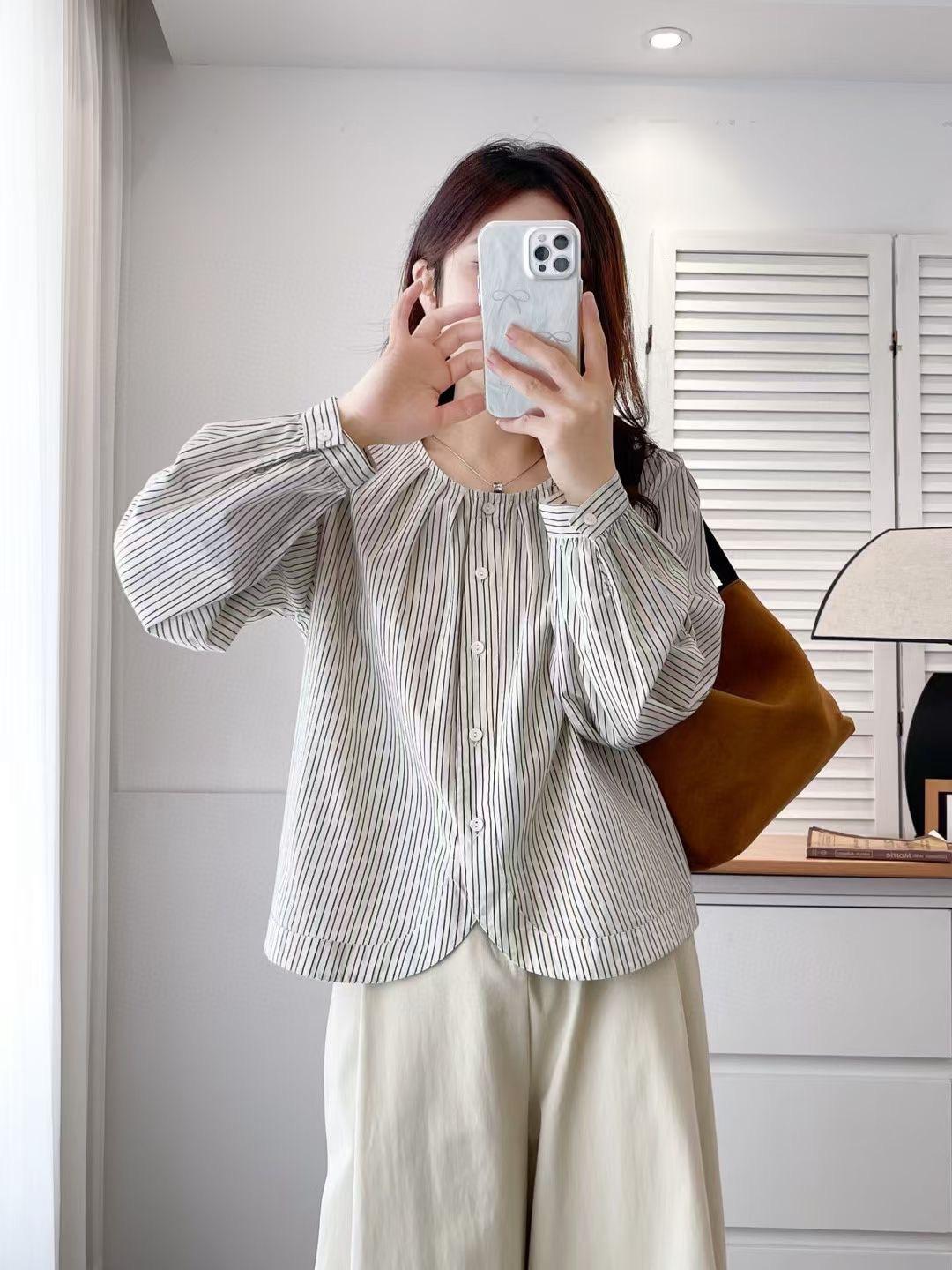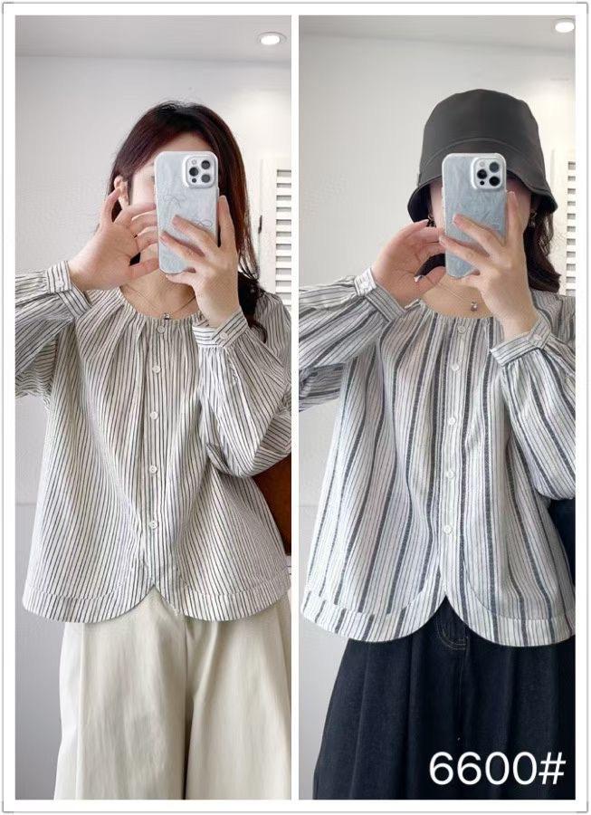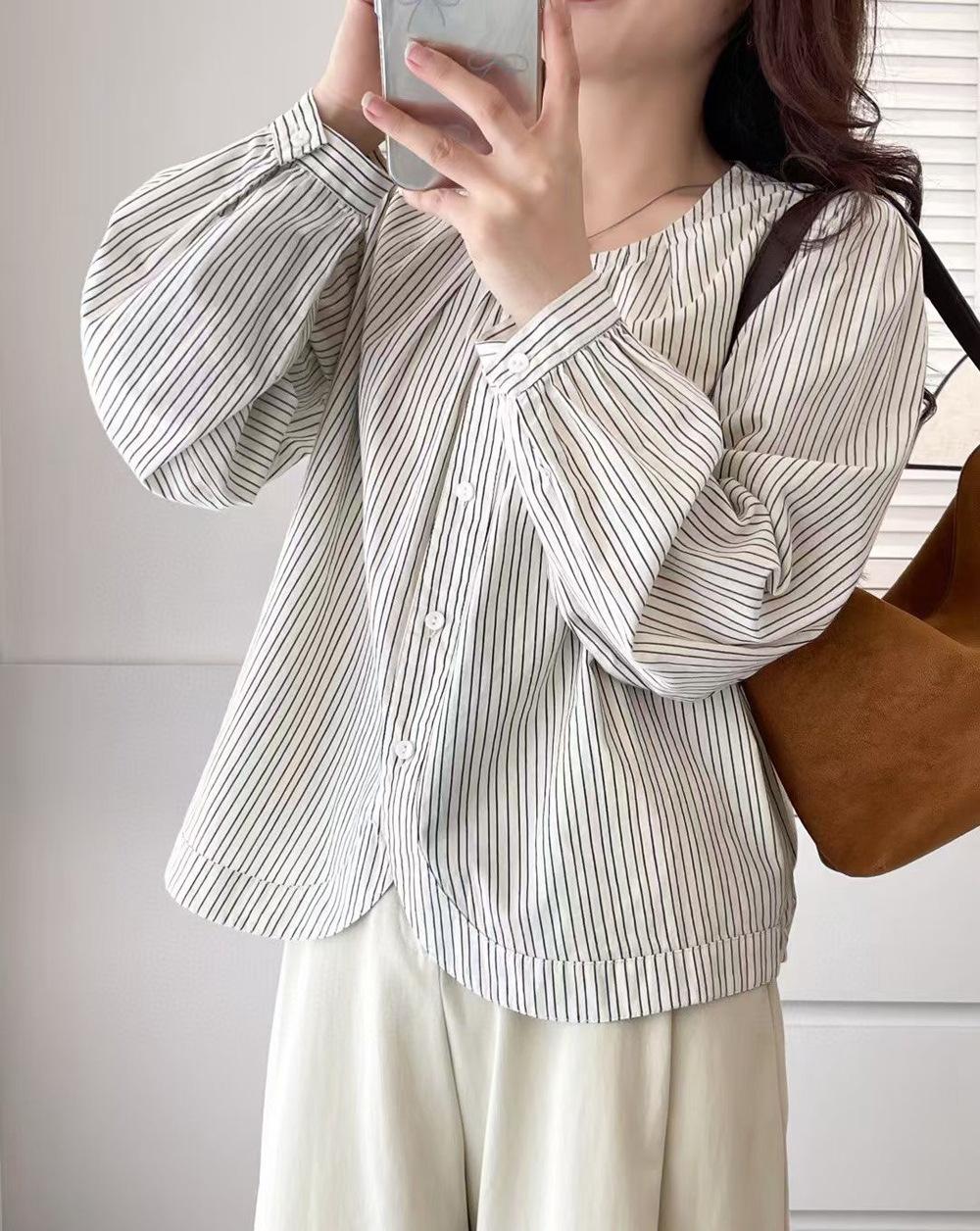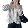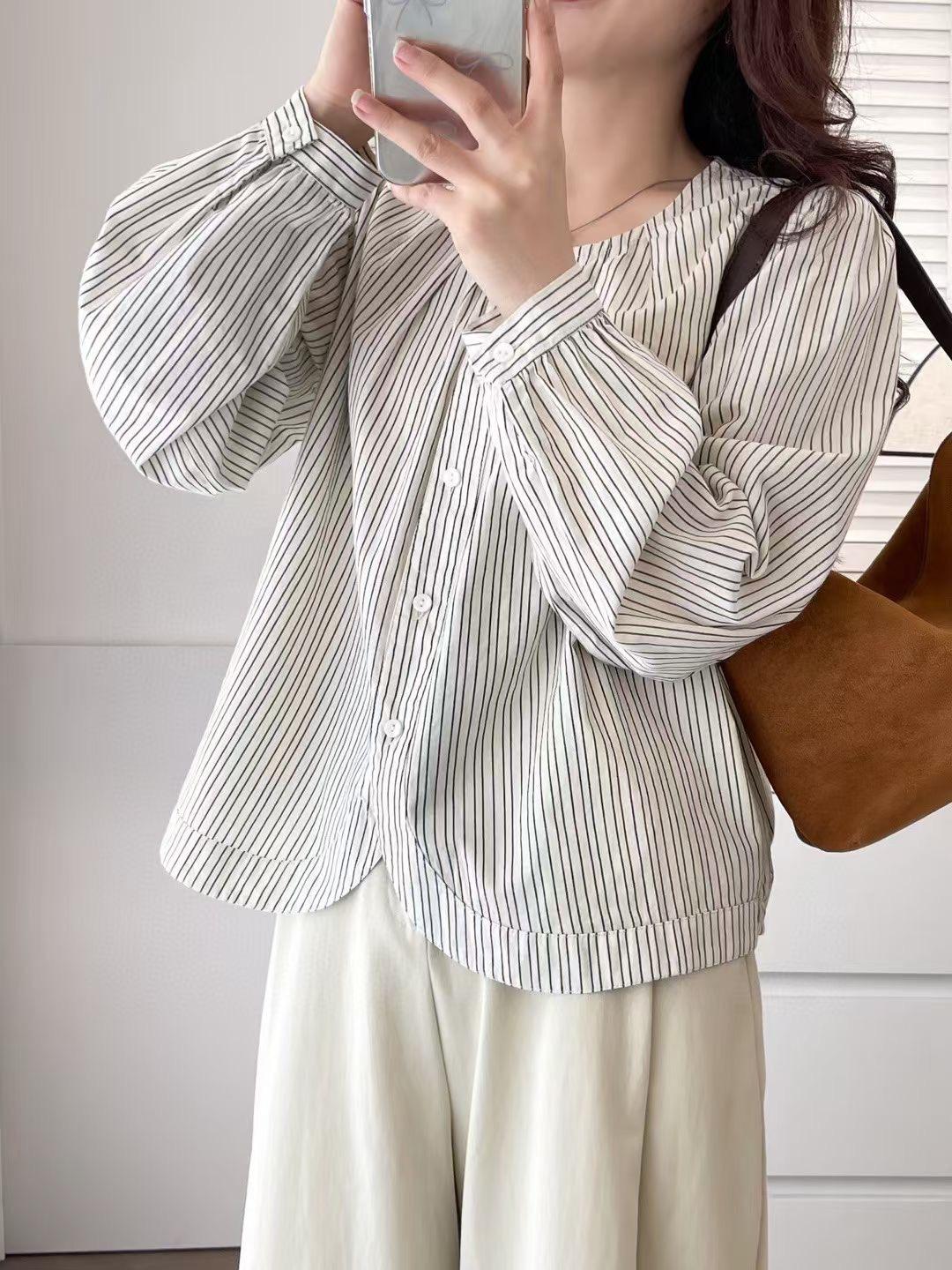 2025 primavera camiseta de rayas de cuello redondo pequeño para mujer holgada delgada coreana manga larga top al por mayor