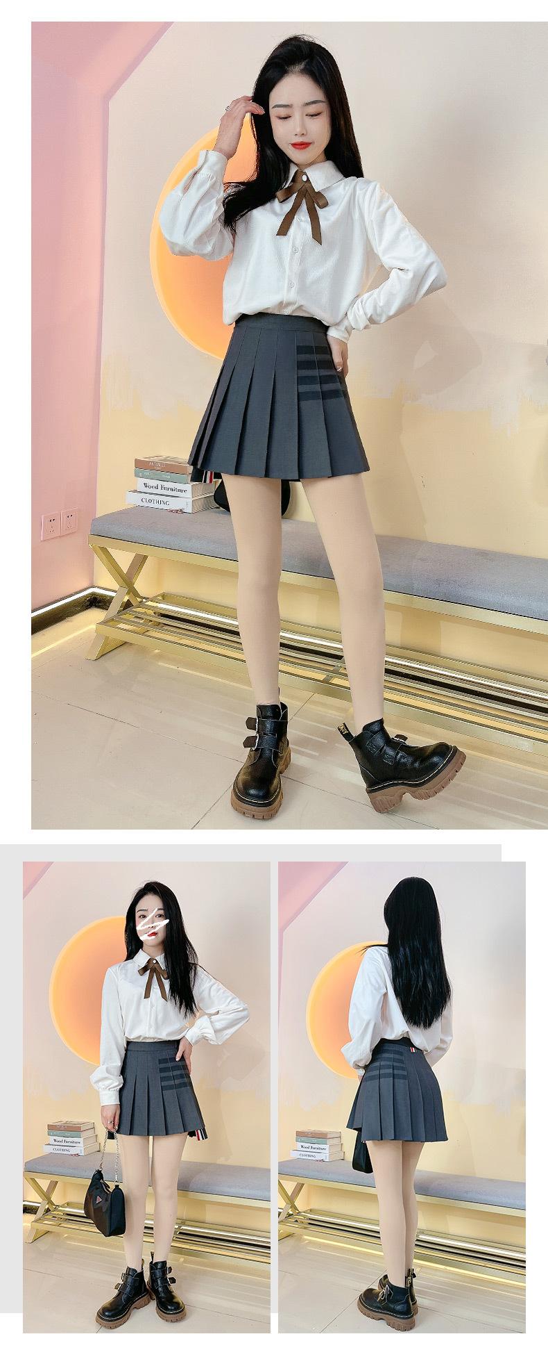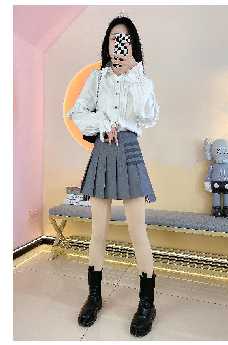 Falda Plisada Falda de Otoño e Invierno para Mujer Irregular Adelgazante Cintura Alta Falda Línea A Gris Estilo Universitario Europeo y Americano