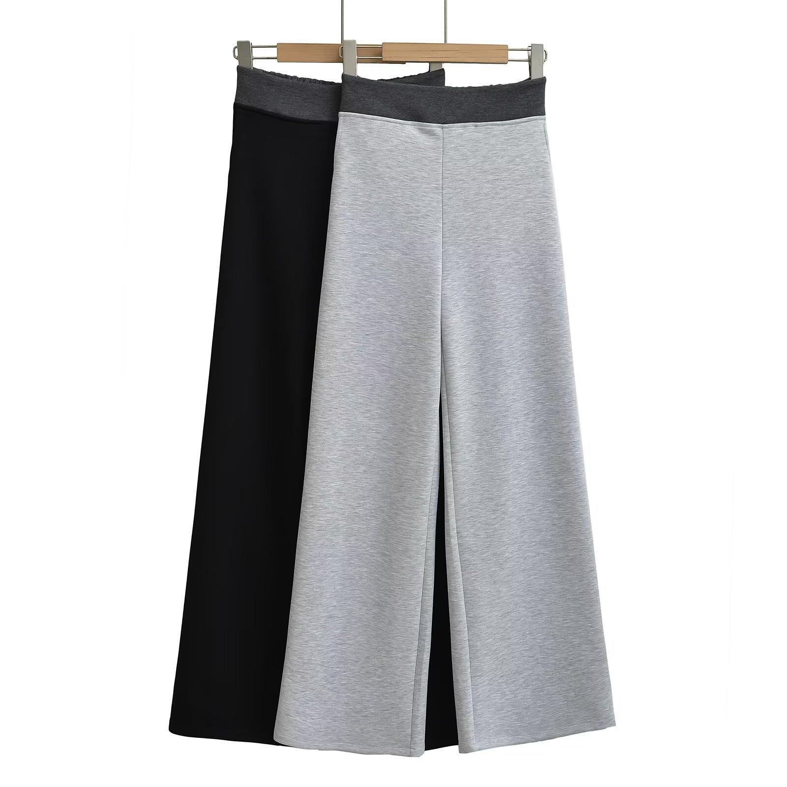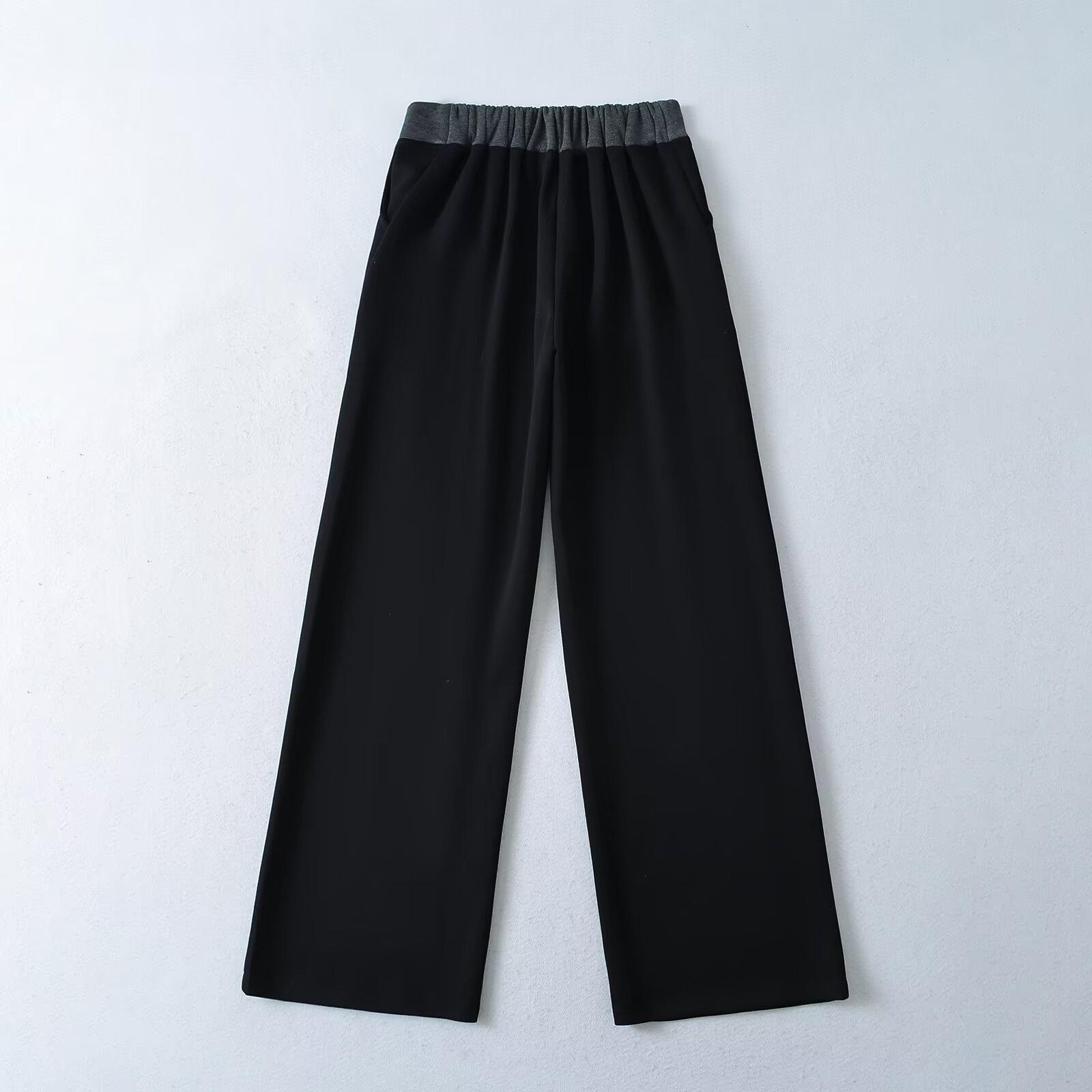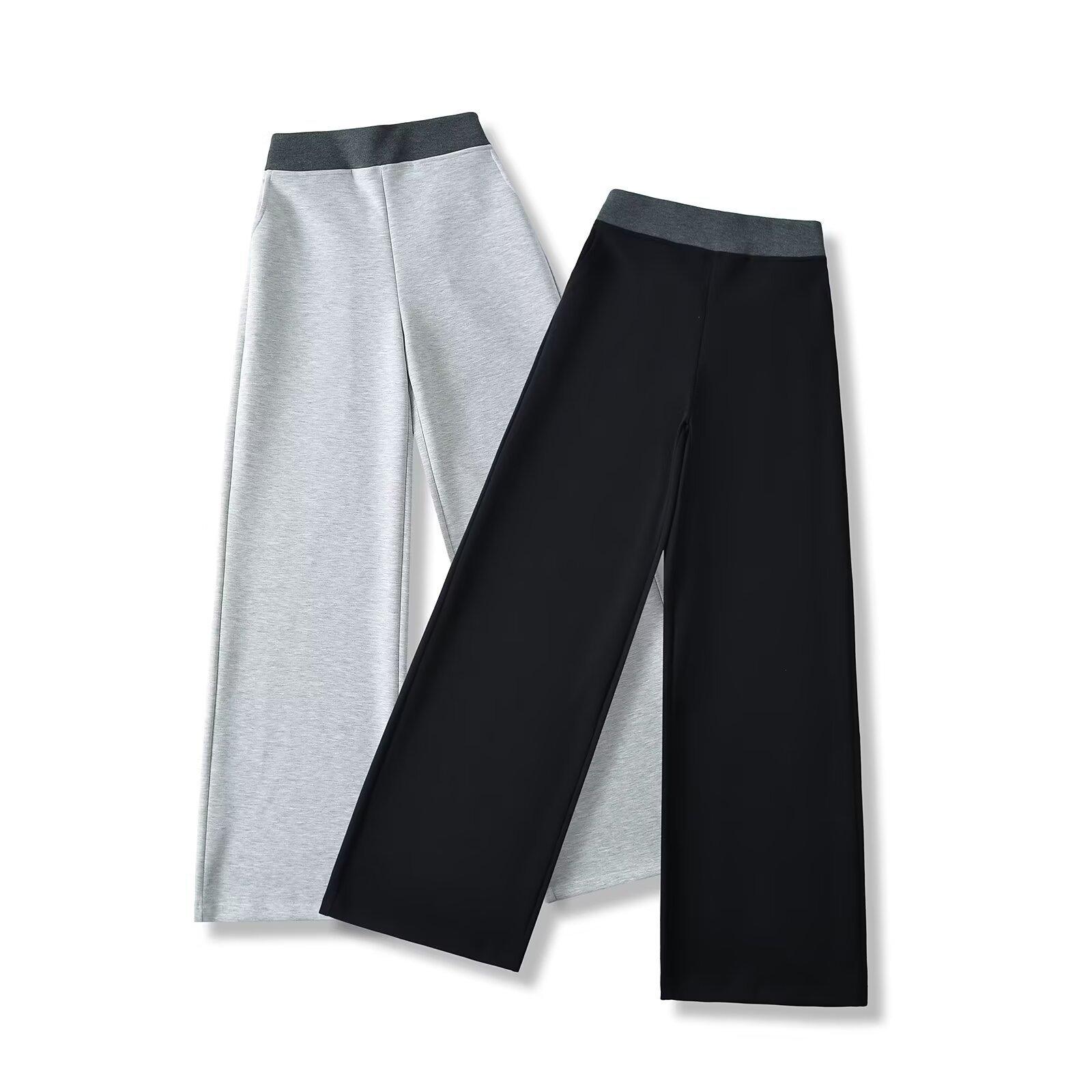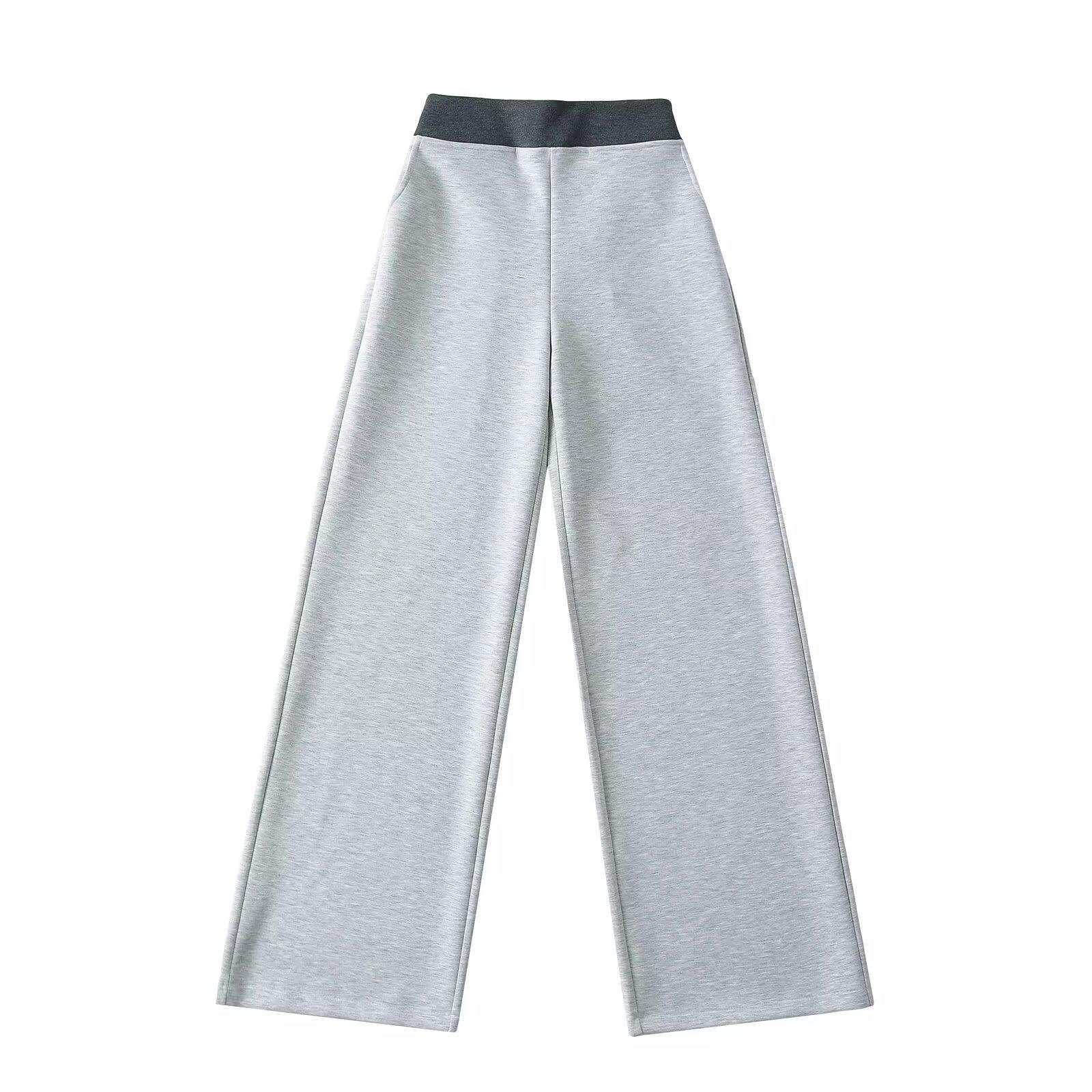 Pantalones Casuales de Cintura y Cabeza a Juego de Colores Europeos y Americanos para Mujer 2024 Nuevo Otoño Sueltos Rectos Caída Pierna Ancha Pantalones Sudaderas de Cintura Alta Modernos