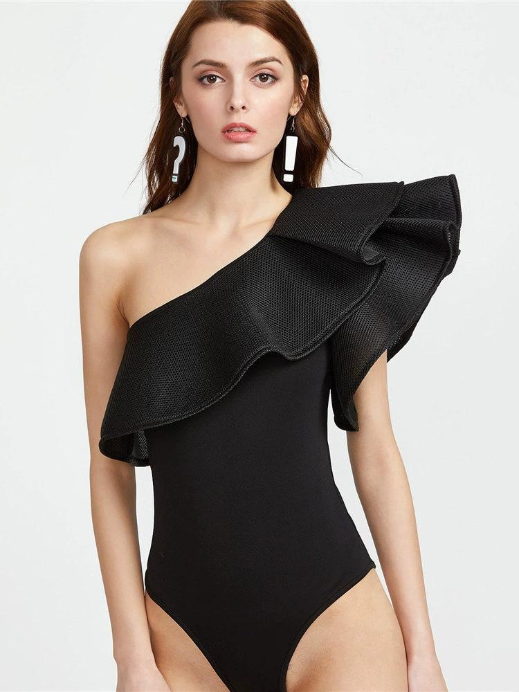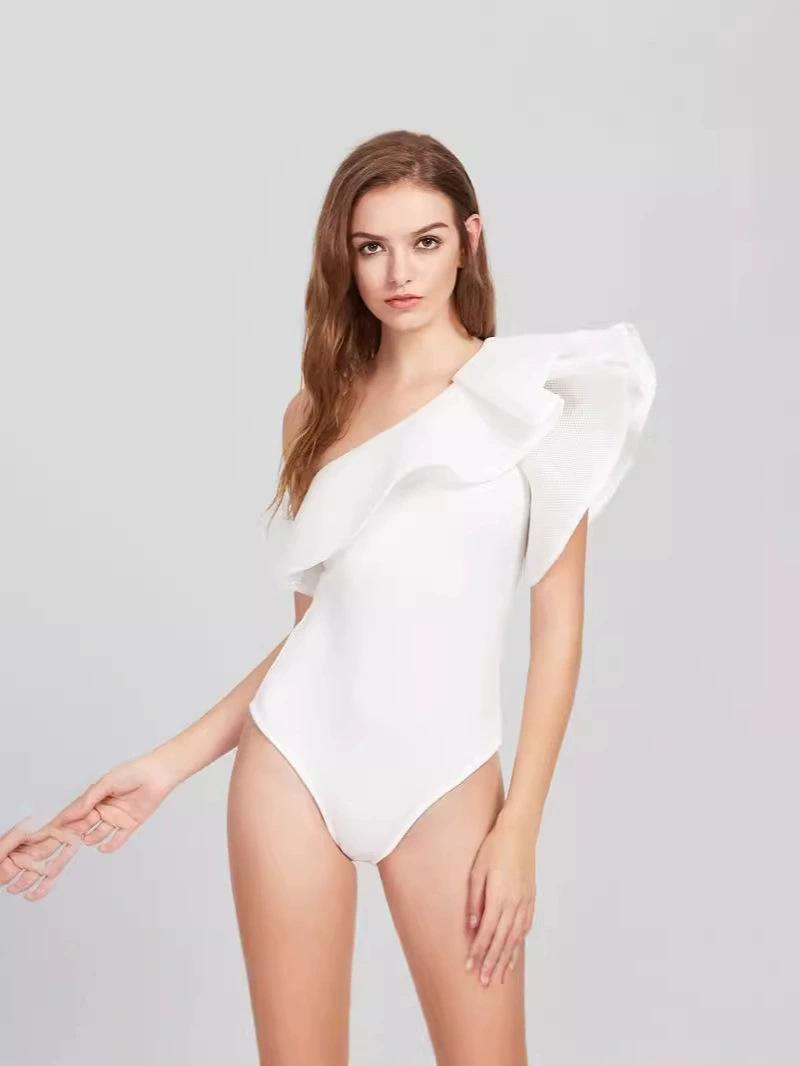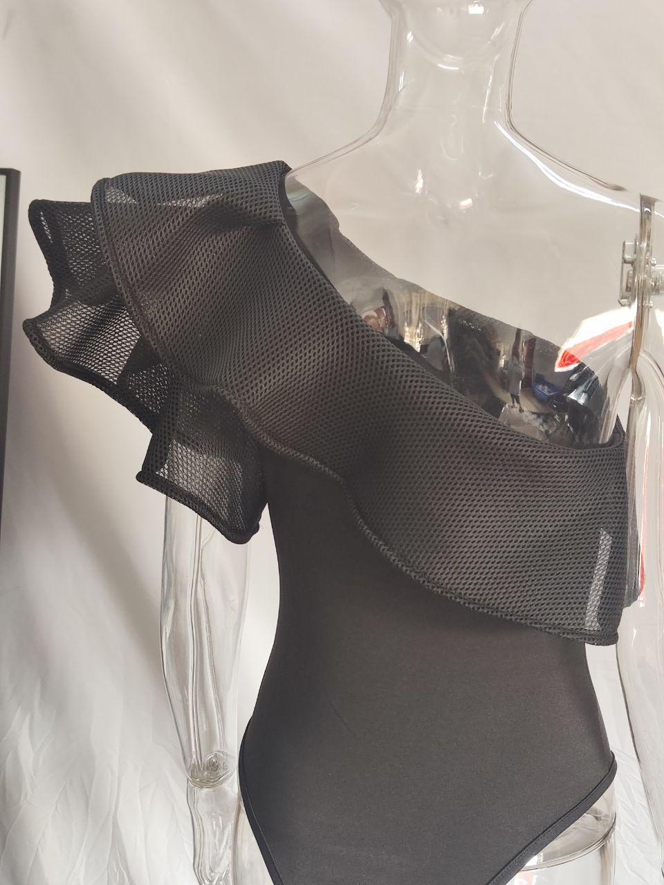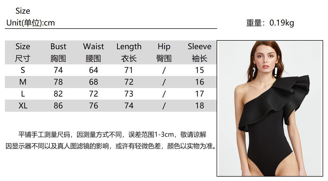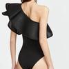 2025 Moda Transfronteriza Europea y Americana Elegante Color Puro con Volantes Cuello Inclinado Sexy Ajustado Mono de un Hombro Ropa de Mujer al Mayoreo