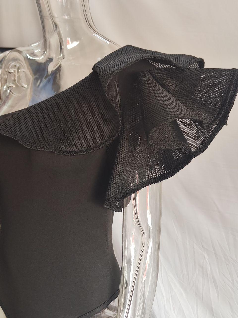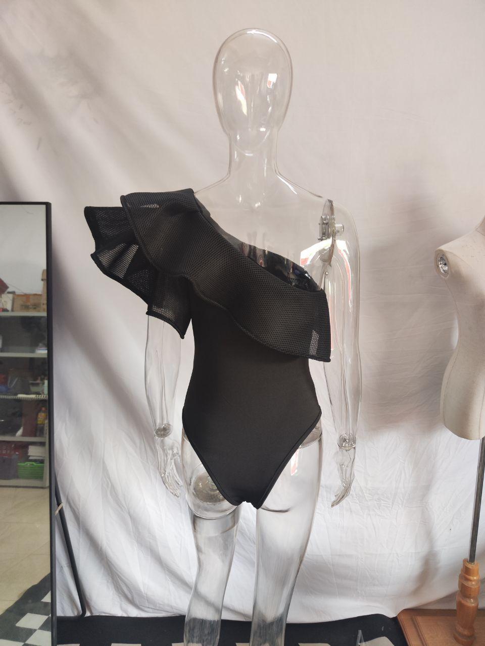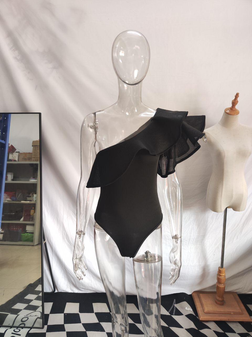 2025 Moda Transfronteriza Europea y Americana Elegante Color Puro con Volantes Cuello Inclinado Sexy Ajustado Mono de un Hombro Ropa de Mujer al Mayoreo