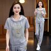 Traje deportivo para mujer Verano 2025 Nuevo Suelto Estilo occidental Maternidad con capucha Manga corta Casual Traje para correr Conjunto de dos piezas