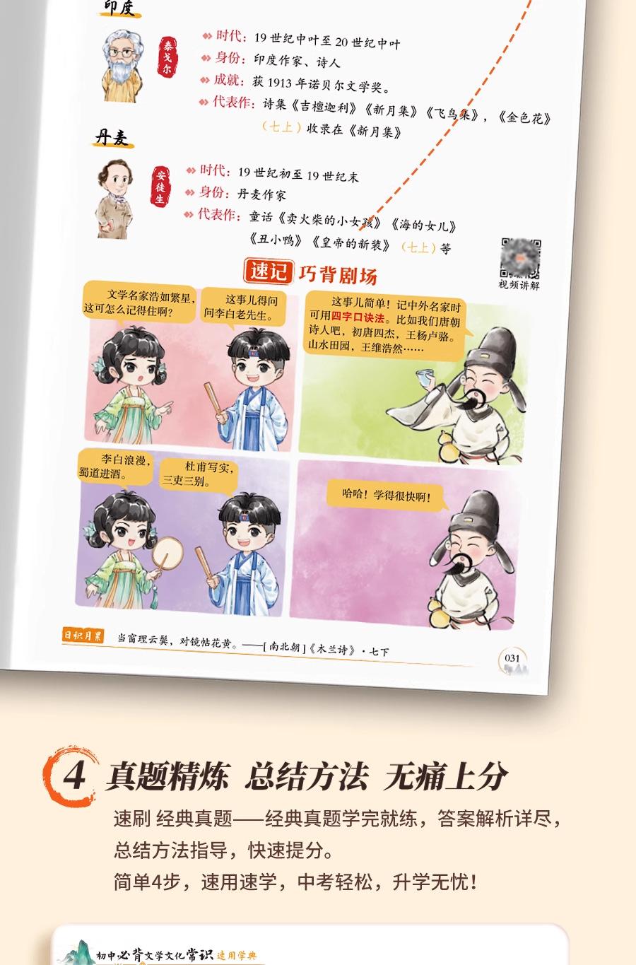 25 Nuevos Conocimientos Generales de Literatura y Cultura que los Estudiantes de Secundaria deben Memorizar Versión Cómic Libro de Texto Sincronizado para Grados 7, 8 y 9 Poesía Antigua y Chino Clásico