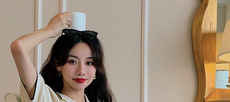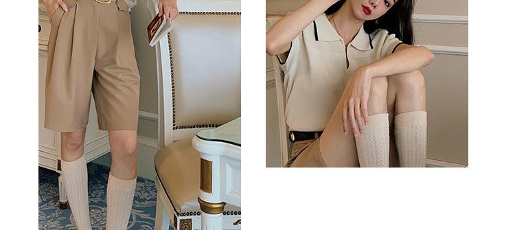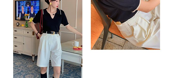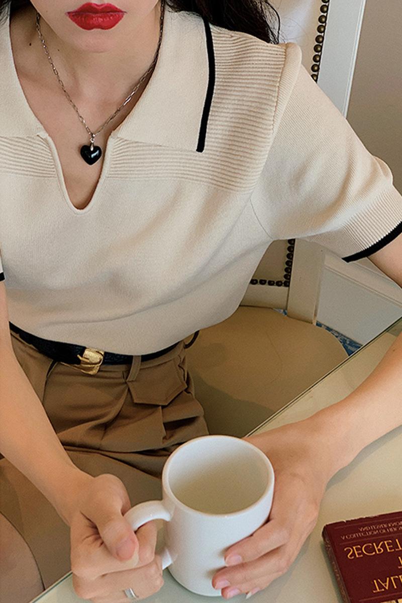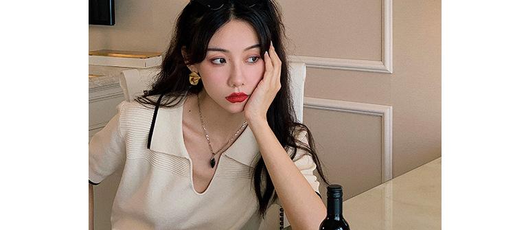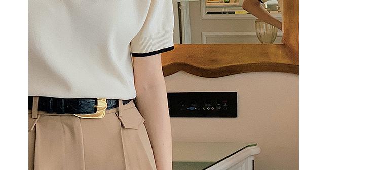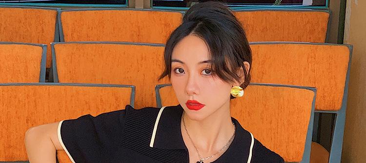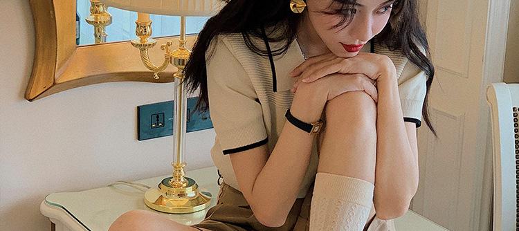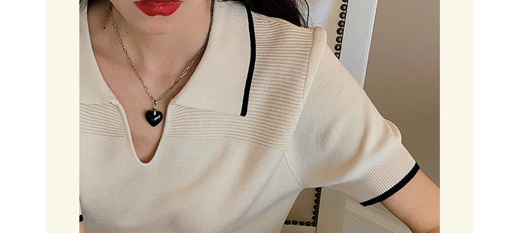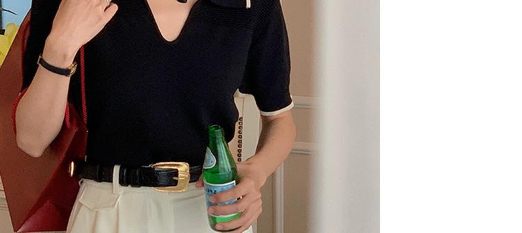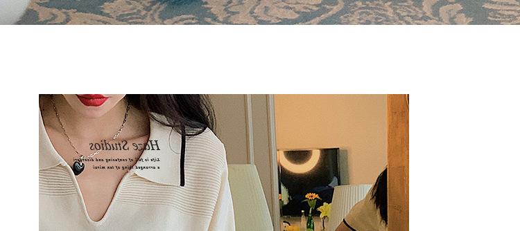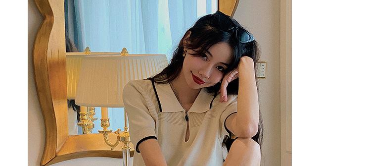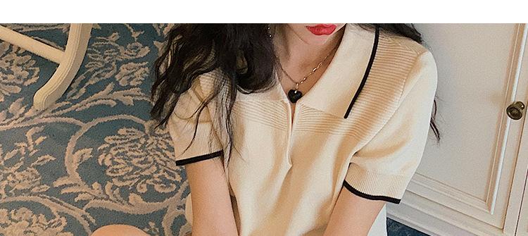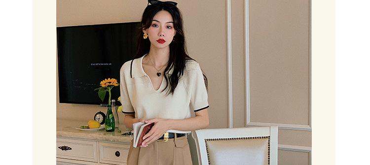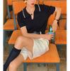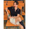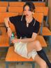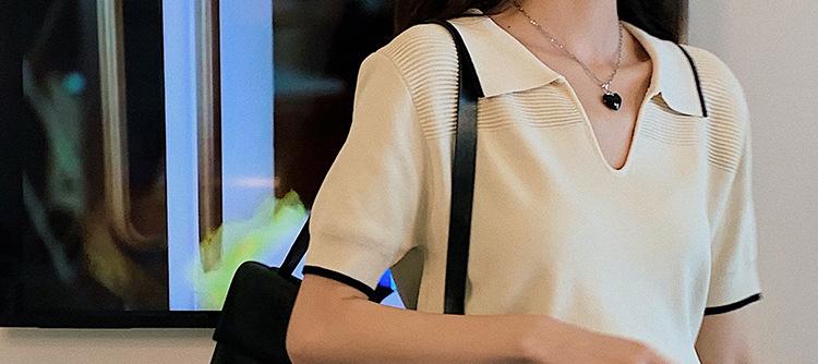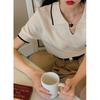 Top Americano de Cuello Polo, Hombro Derecho, Corto, Estilo Preppy, Camiseta de Punto de Seda de Hielo de Manga Corta, Verano para Mujer, Fino, Estilo Holgado