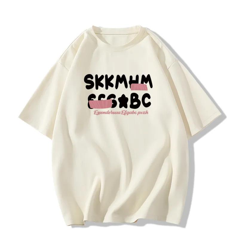 Camiseta de Diseño Americano de Algodón Puro con Letras Estampadas de Manga Corta para Mujer Verano 2025 Nuevo Top Holgado de Media Manga Tendencia Ins