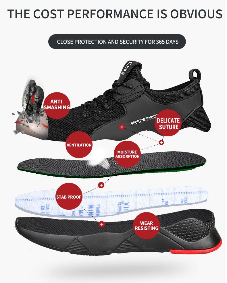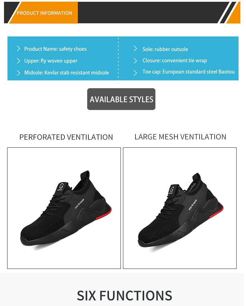 Zapatos de Protección Laboral Exclusivos Transfronterizos Zapatos de Trabajo Transpirables de Verano Zapatos de Seguridad Anti-aplastamiento y Anti-perforación Sitio de Construcción Zapatos de Protección Laboral de Verano