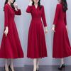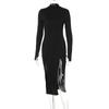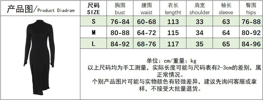 Vestido Nuevo Otoño 2025 Cuello Alto Manga Larga Abertura Alta Asimétrico Slim Largo Medio Color Puro