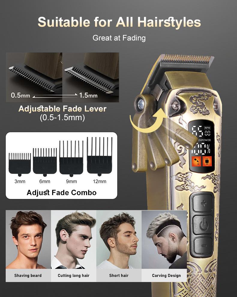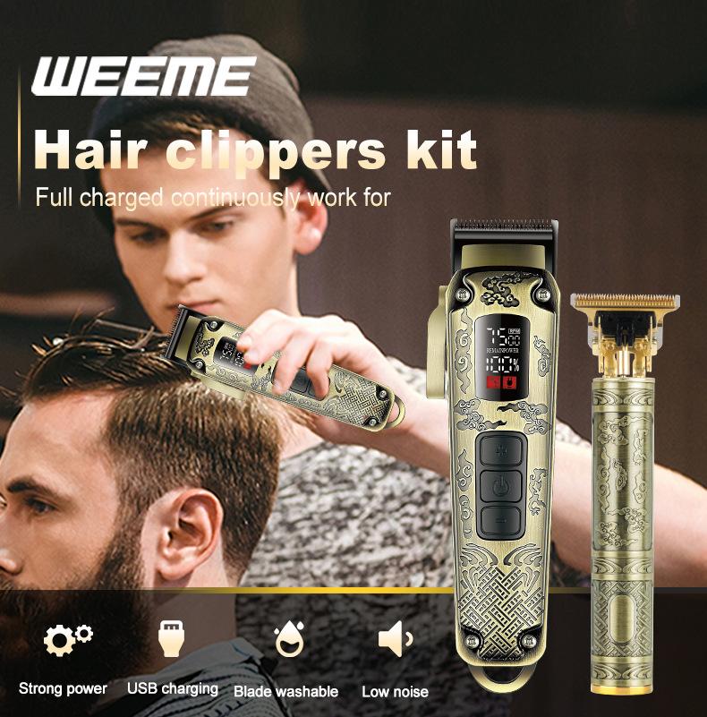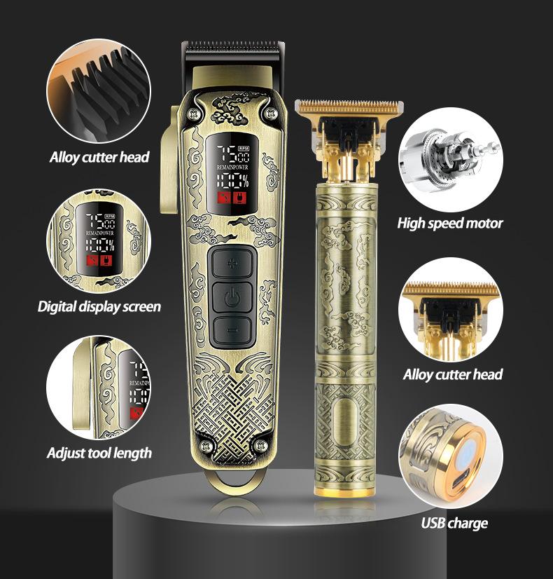 Cortadora de Cabello Metálica Retro Transfronteriza Profesional para Hombres Cortadora de Cabeza al Aceite Set de Cortadora de Cabello Eléctrica Venta al por Mayor