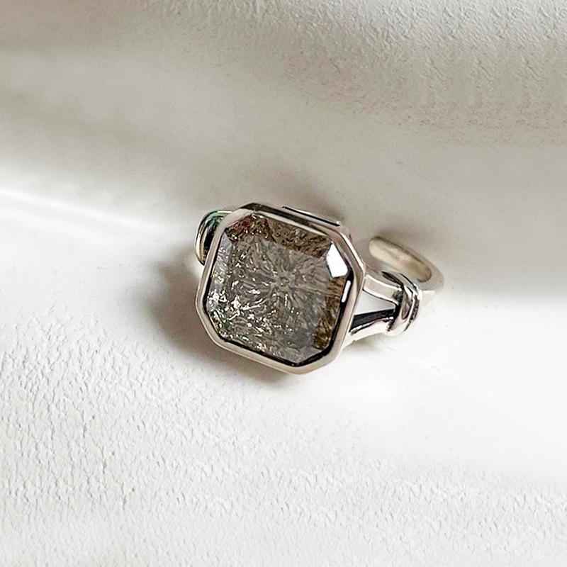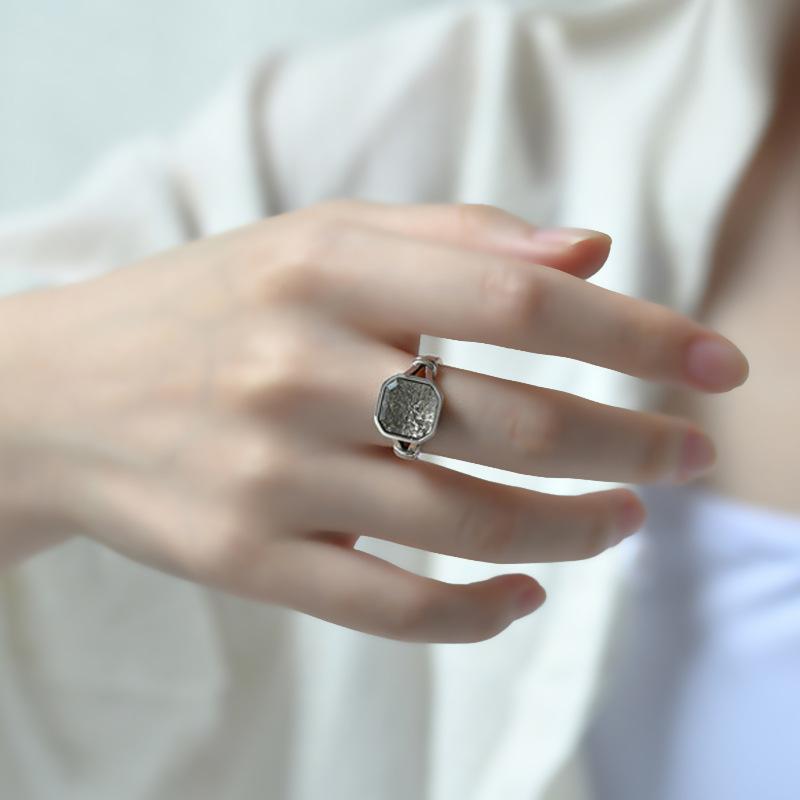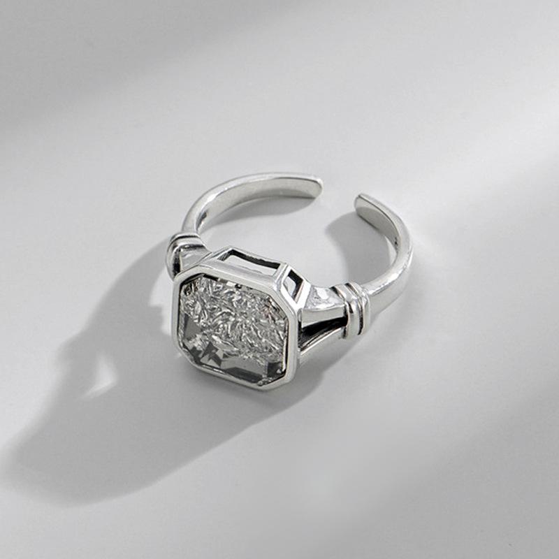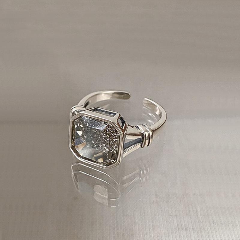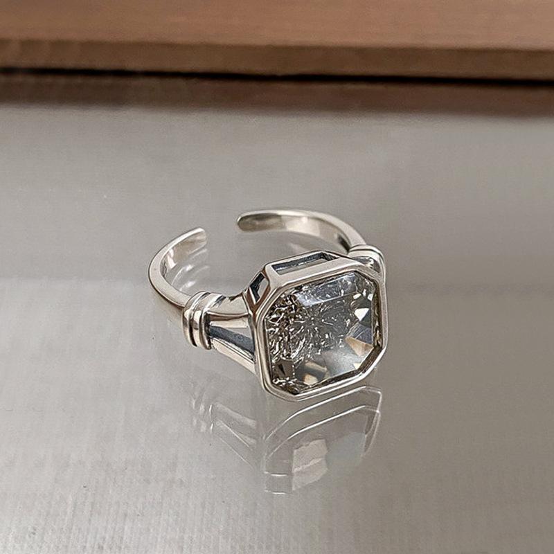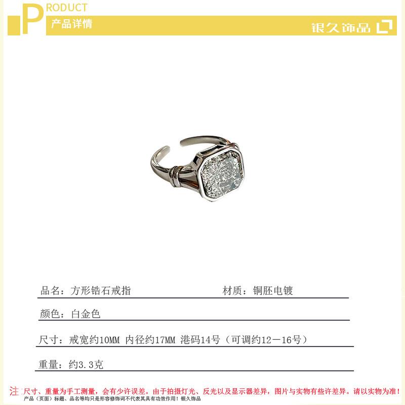 Anillo de Zirconia Cuadrada de Alta Gama Moda para Hombre y Mujer Diseño Nicho de Moda Zirconia Estilo Lujo Ligero Anillo Abierto