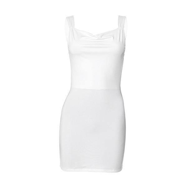 Moda Transfronteriza Europea y Americana para Mujer Casual Sencillo Plisado Sexy Ajustado Cadera Falda Vestido Corto sin Mangas con Tirantes y Espalda Descubierta
